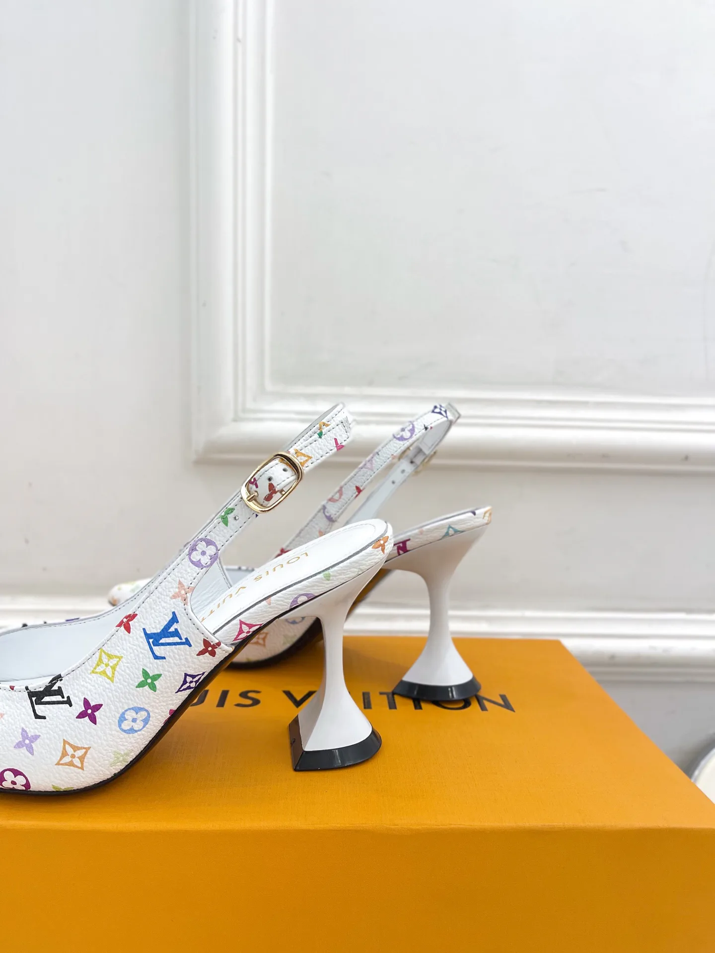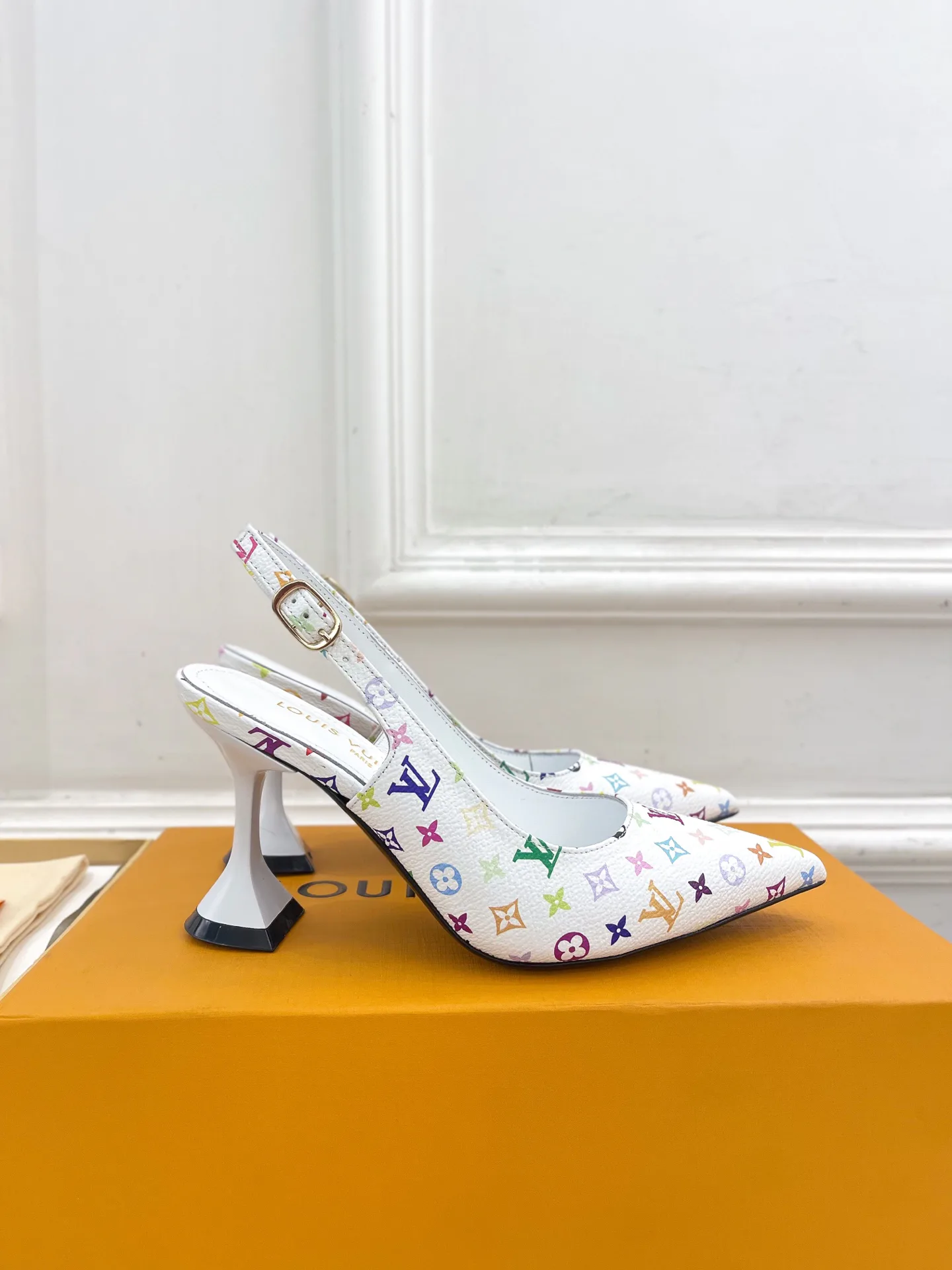 Эти туфли на высоком каблуке имеют остроконечный носок и изящный дизайн, что делает их подходящими для разных мероприятий. Каблук оформлен как вытянутая чаша, что добавляет изысканности, а открытая пятка обеспечивает свежесть и удобство в носке.