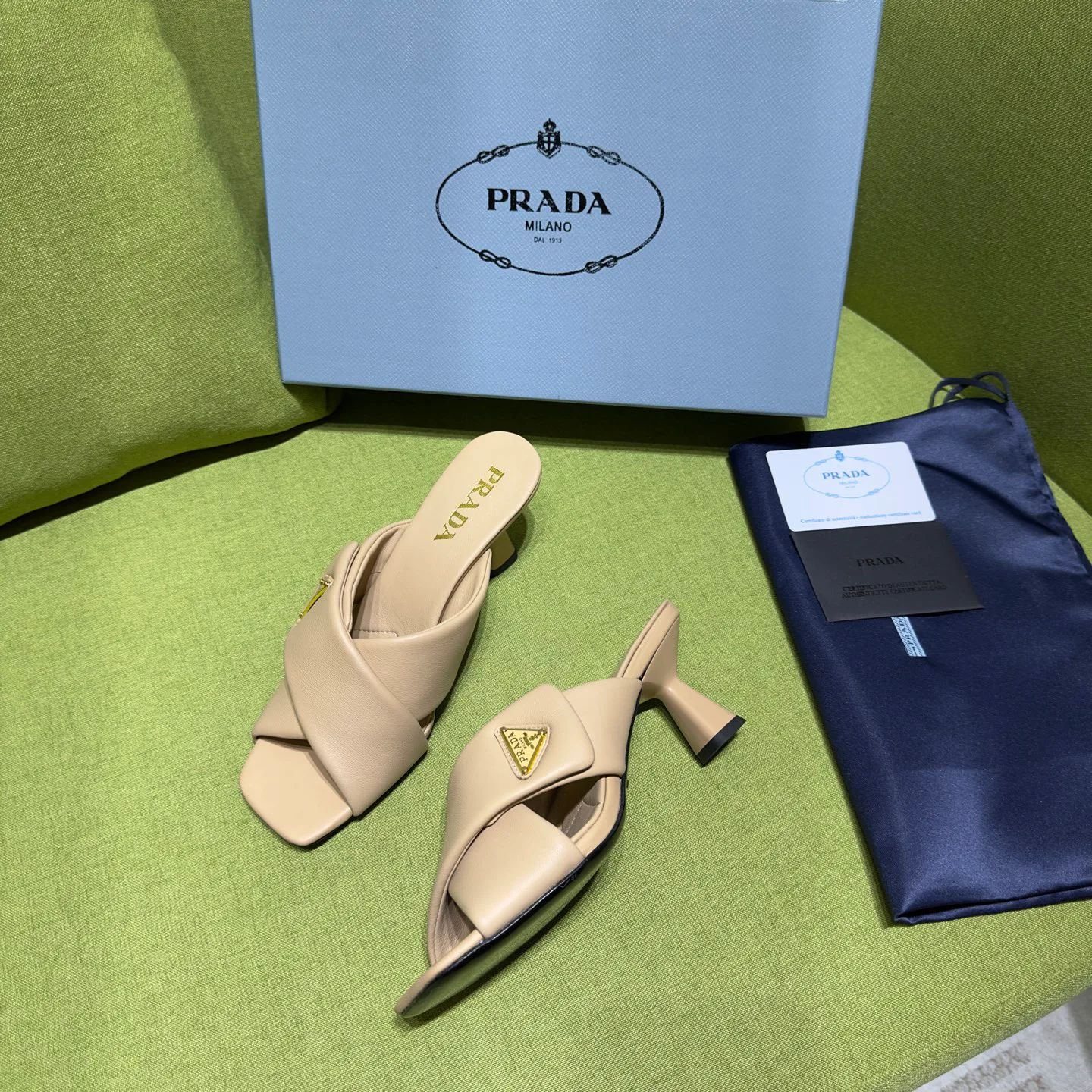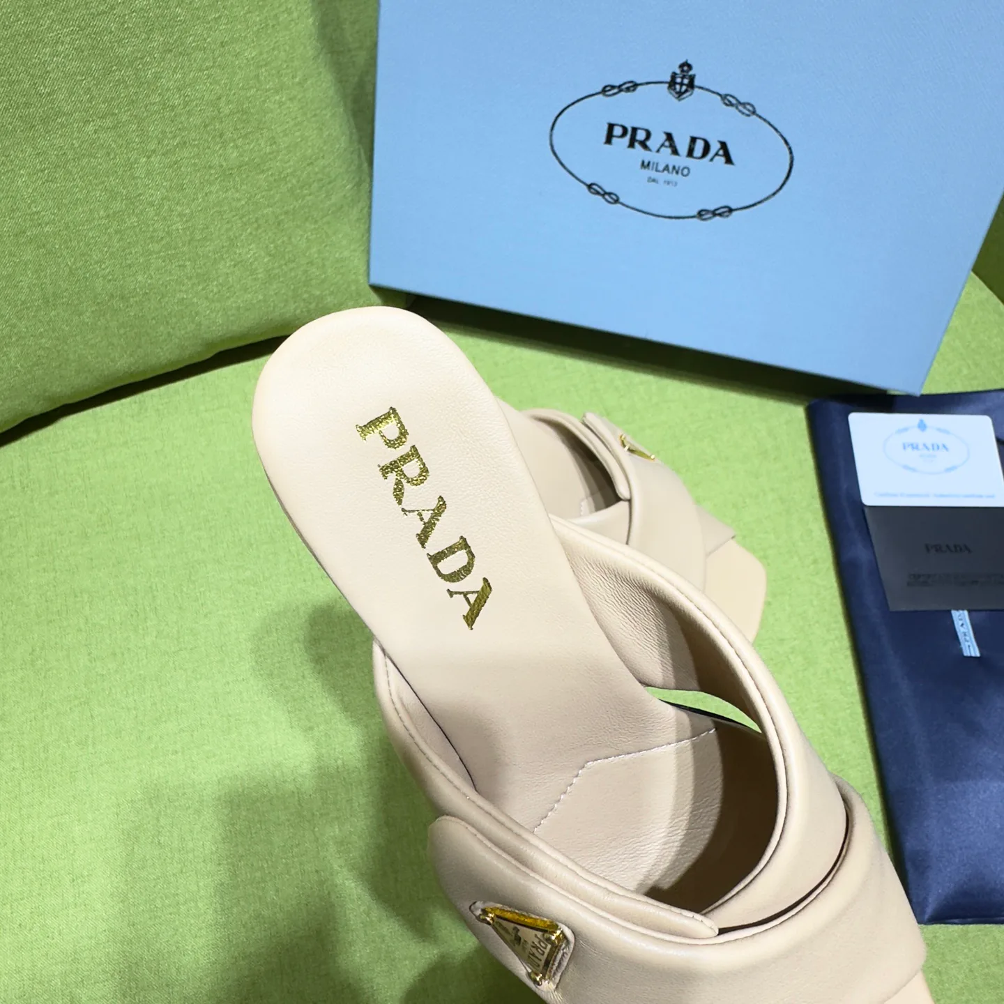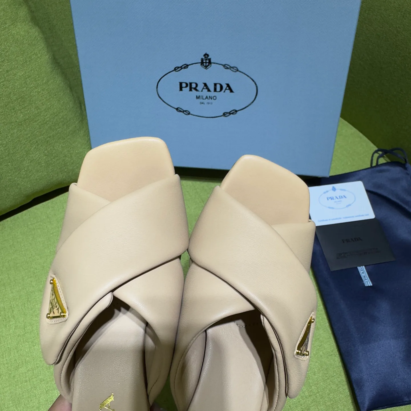 Сандалии выполнены из кожи Nappa, она приятна на ощупь и комфортно обнимает стопу. В дизайне аккуратные линии красиво обрамляют ноги. На обуви красочный эмалированный металлический треугольный логотип служит декором и знаком бренда.