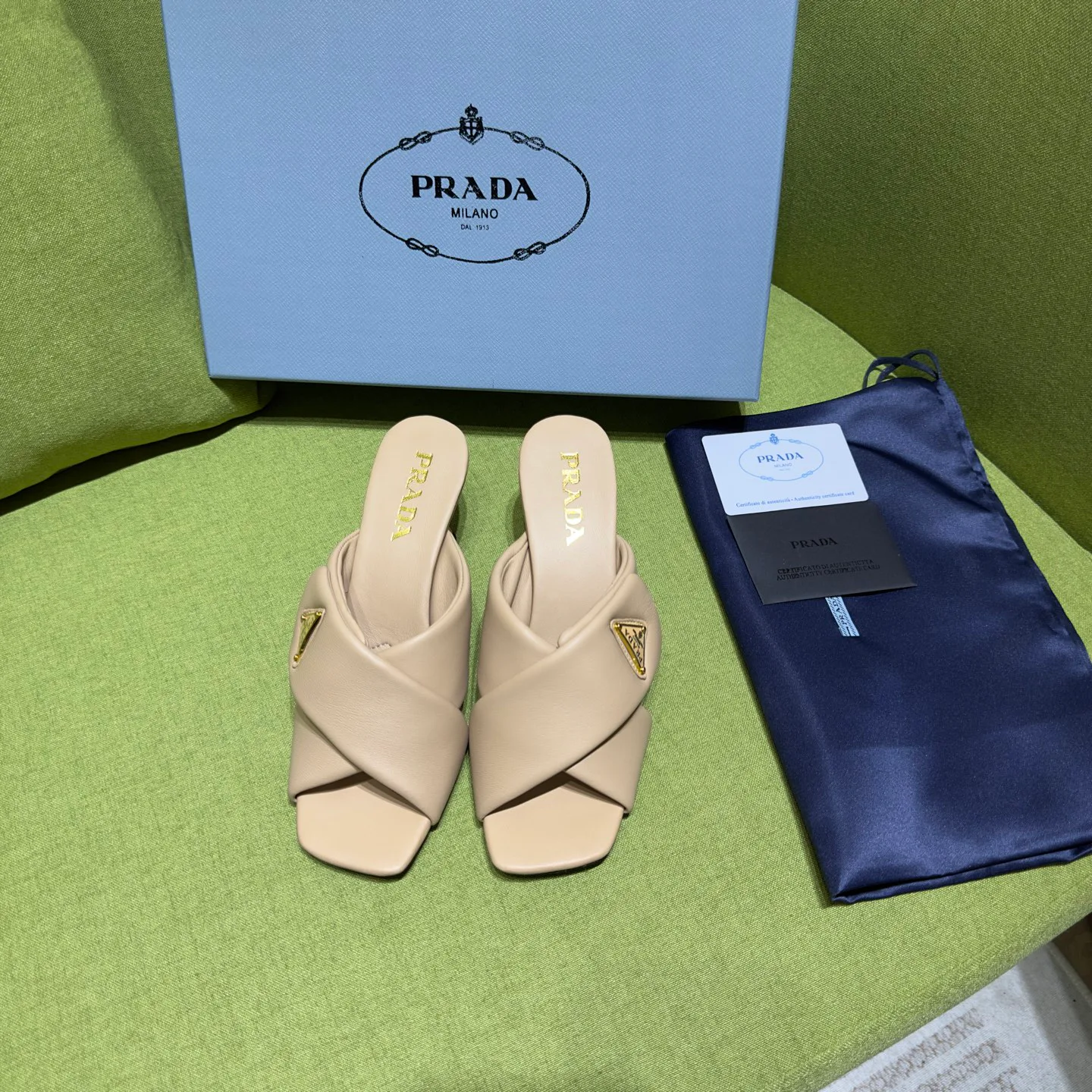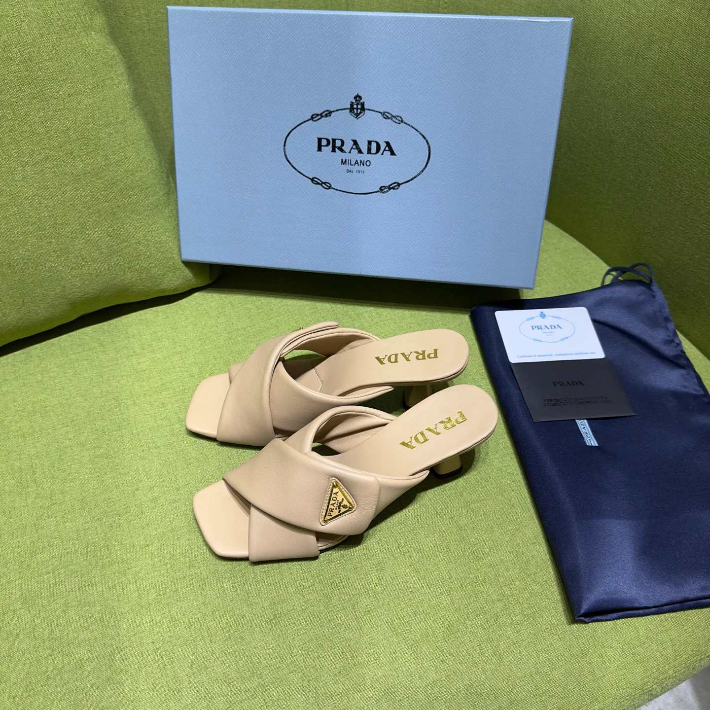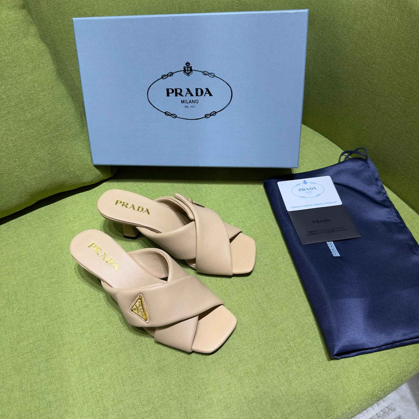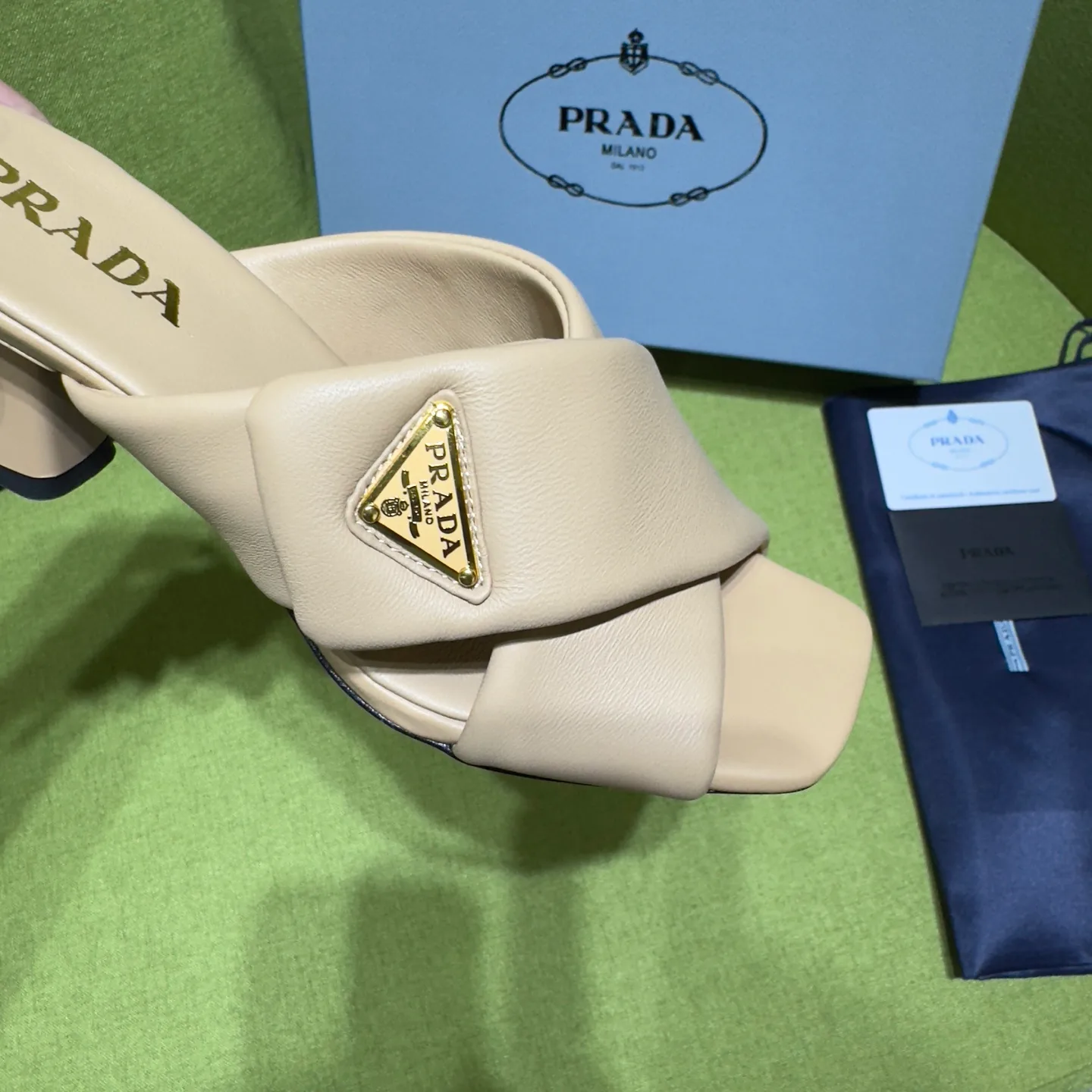 Сандалии выполнены из кожи Nappa, она приятна на ощупь и комфортно обнимает стопу. В дизайне аккуратные линии красиво обрамляют ноги. На обуви красочный эмалированный металлический треугольный логотип служит декором и знаком бренда.