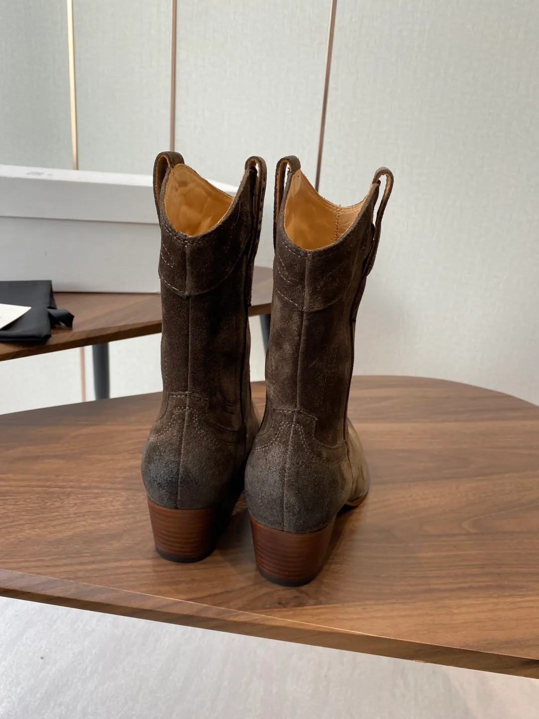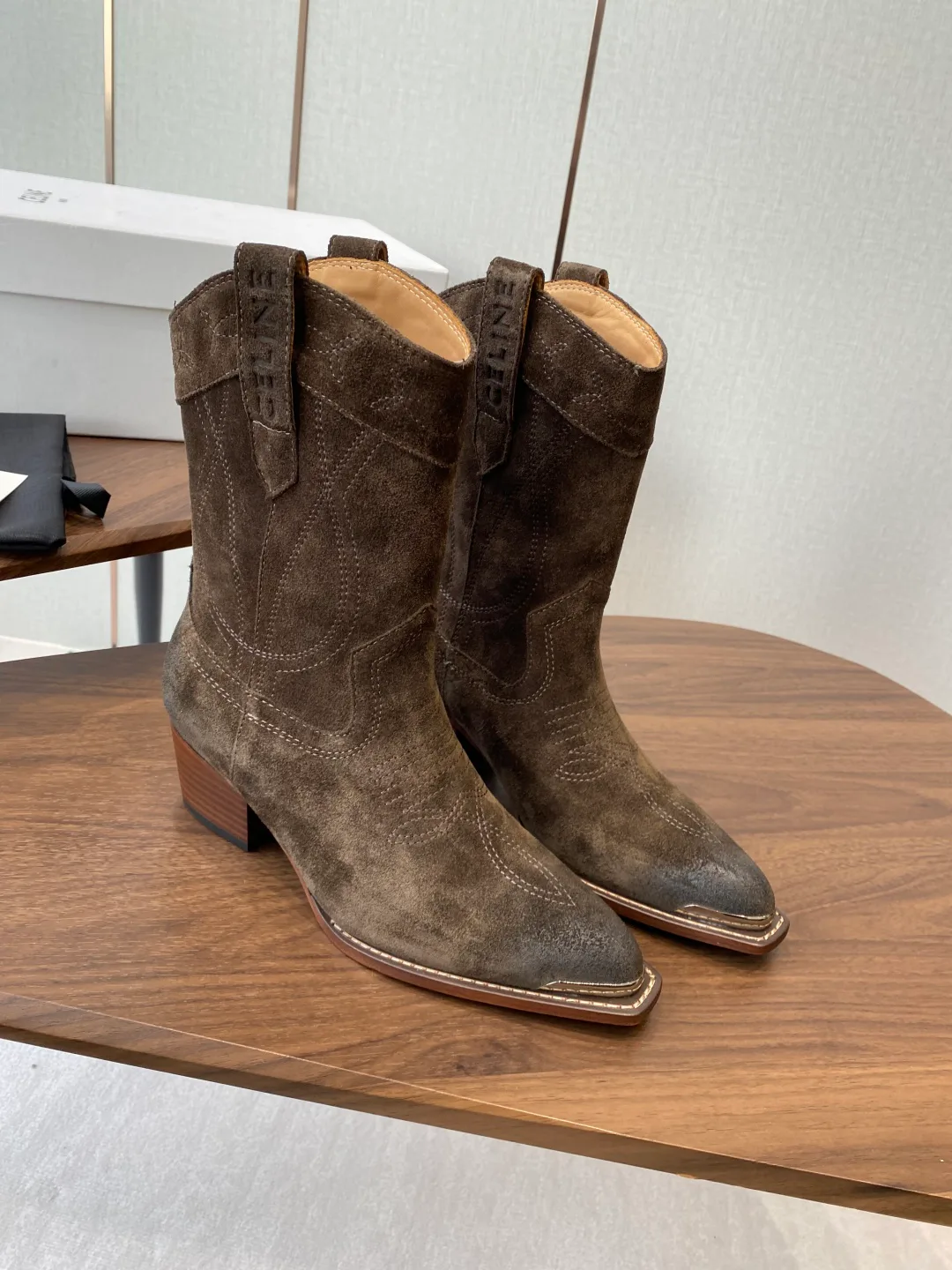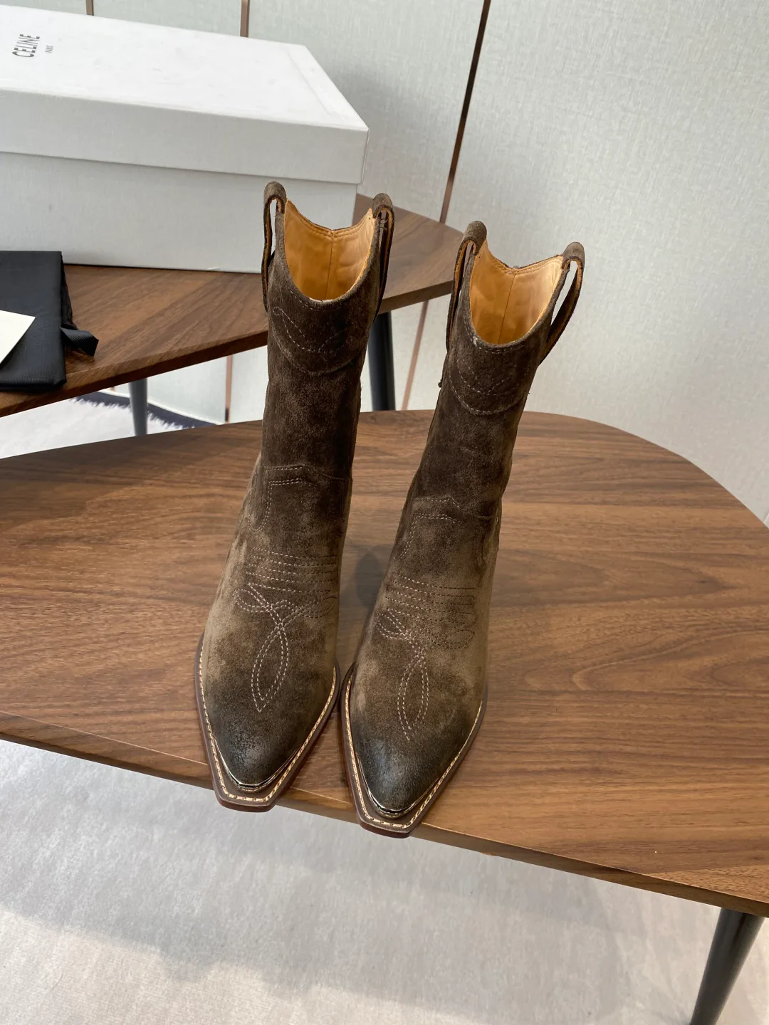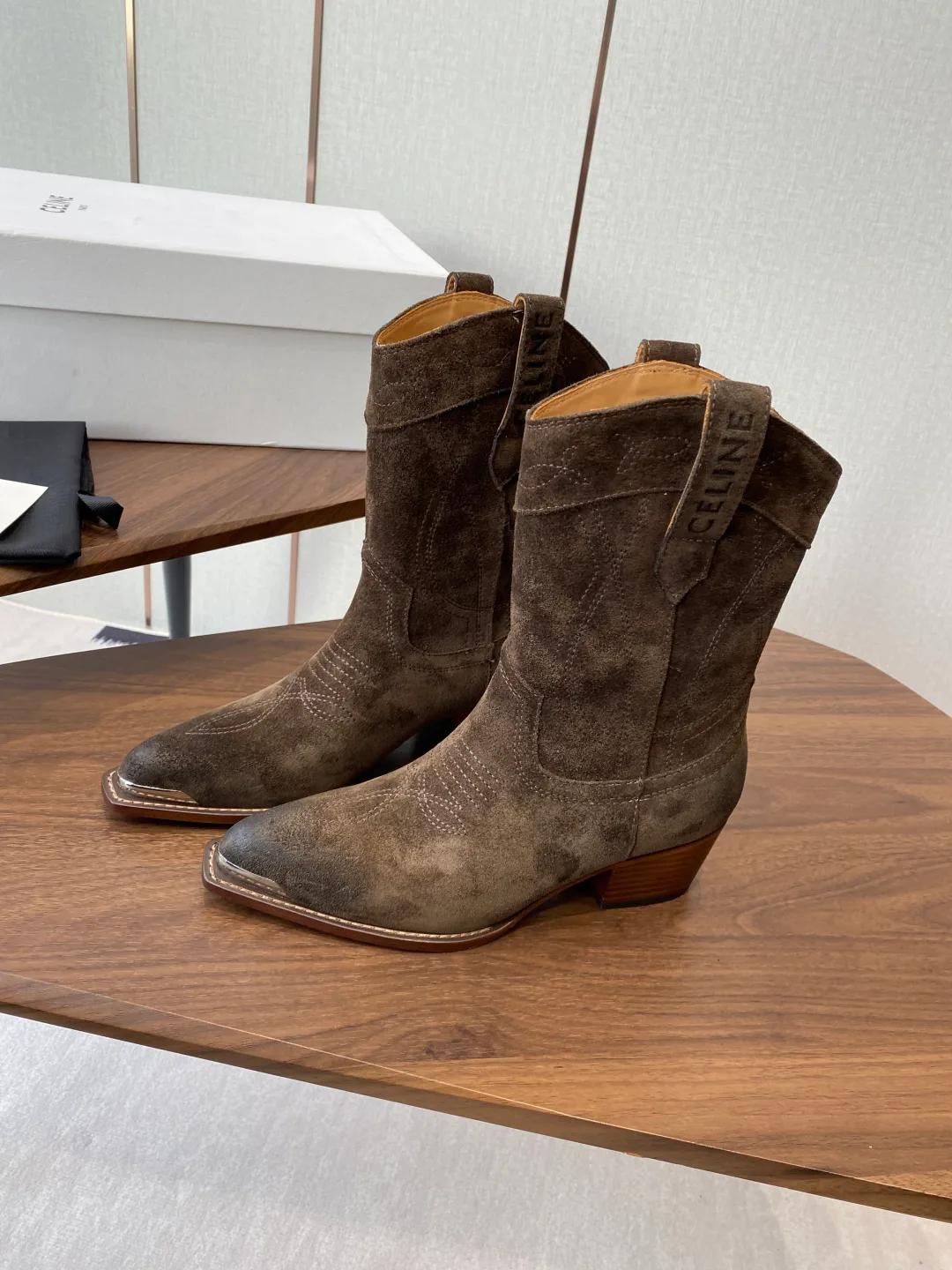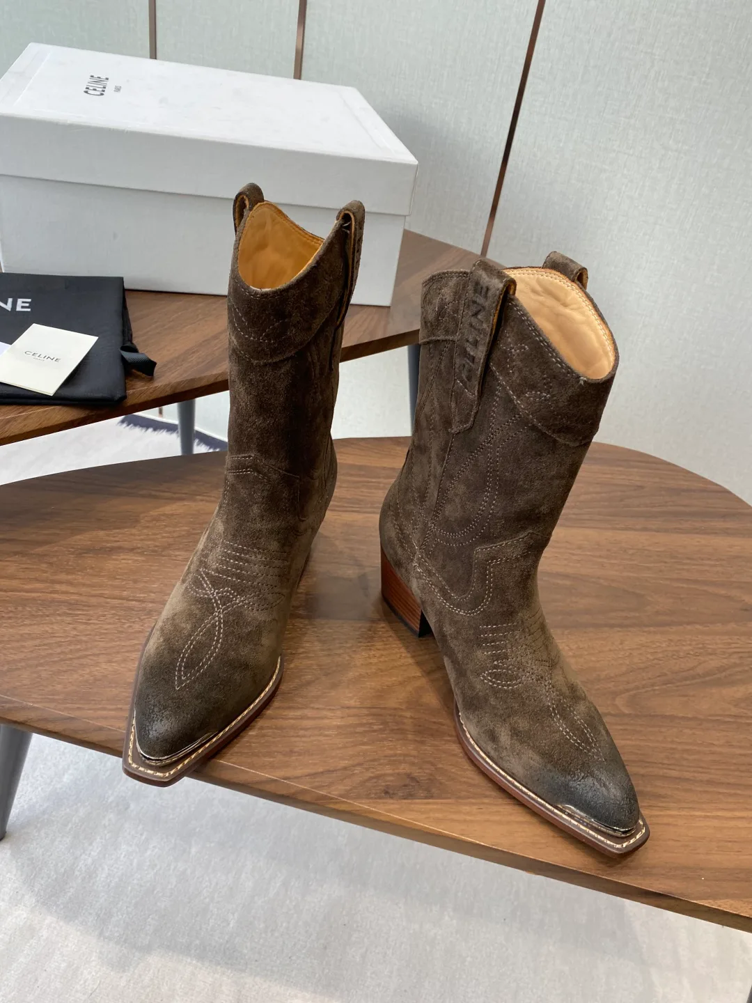 Обувь представлена в размерах 35–40. Размер 40 изготавливается по индивидуальному заказу. Для ухода рекомендуется чистка сухой щеткой и использование специальных средств для защиты кожи от влаги. Хранить обувь следует в сухом месте, используя защитные спреи для замши.