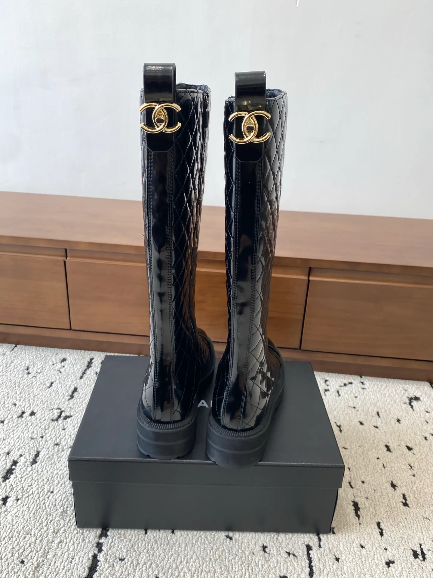 Толстая подошва из TPU обеспечивает комфорт и амортизацию. Внешний каблук усиливает силуэт, что делает их идеальными для повседневной носки. Размерная сетка варьируется от 35 до 40, причем размер 40 выполняется под заказ и возвраты по нему не предусмотрены. Ботинки подчеркивают фирменный стиль CHANEL, сочетая классические элементы с современными акцентами.