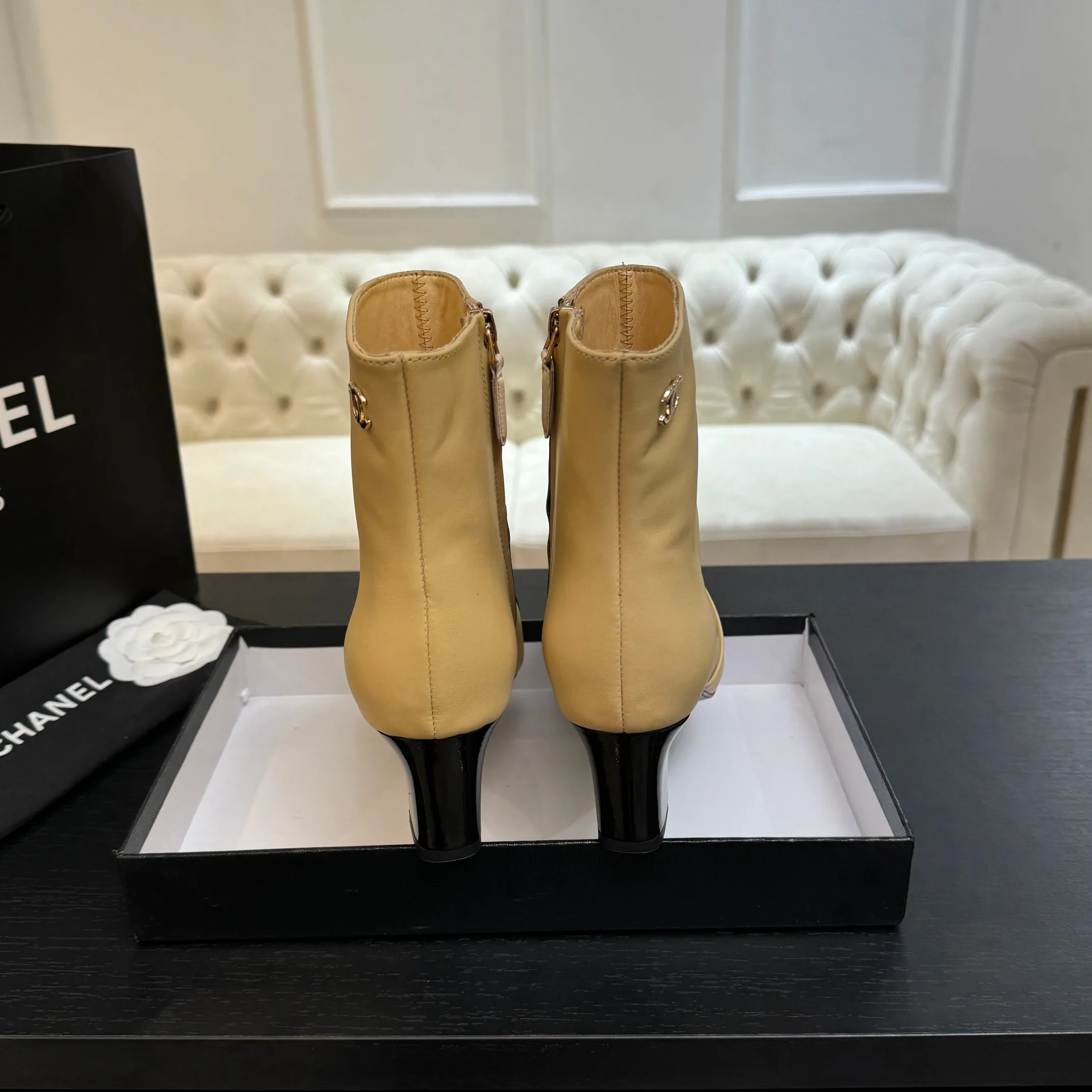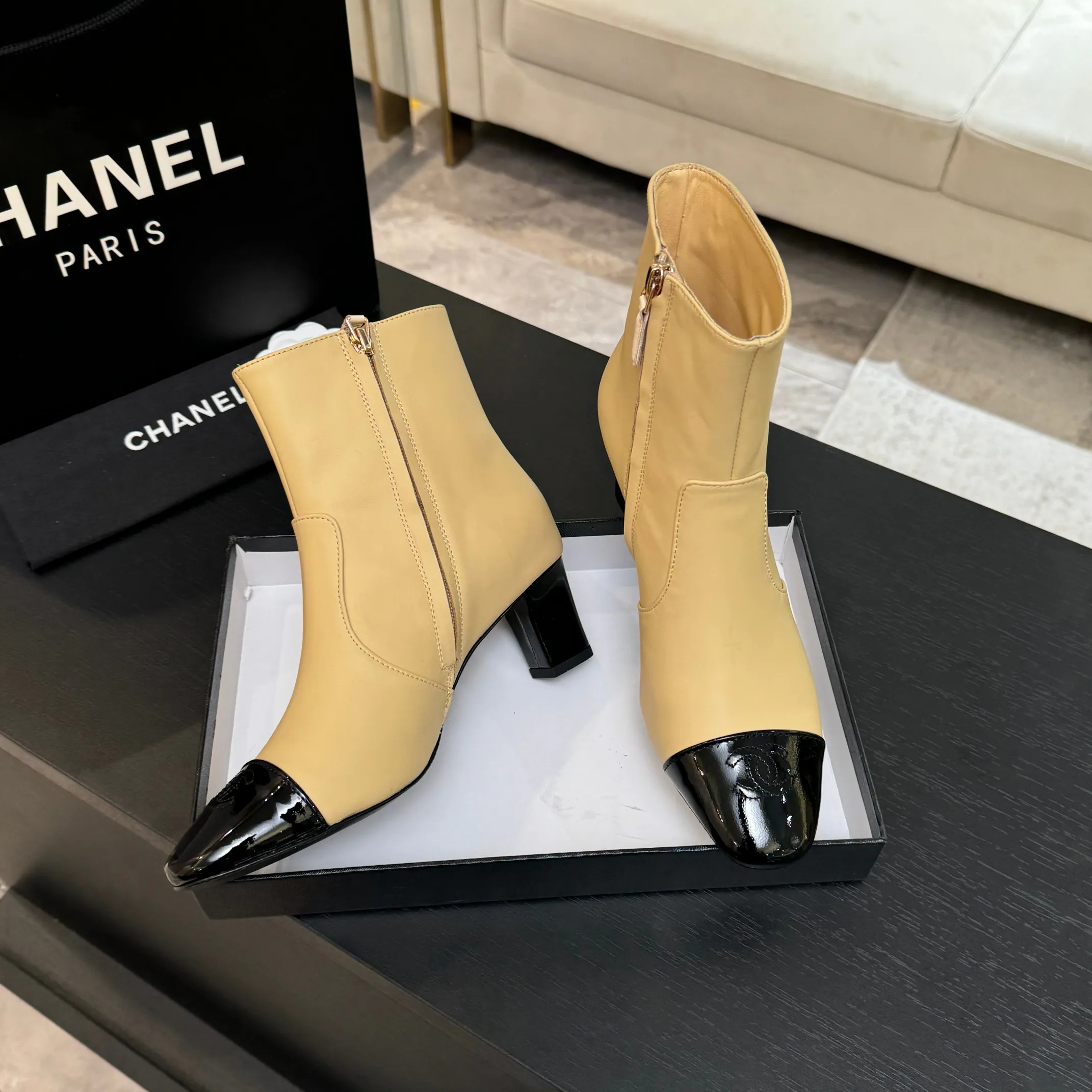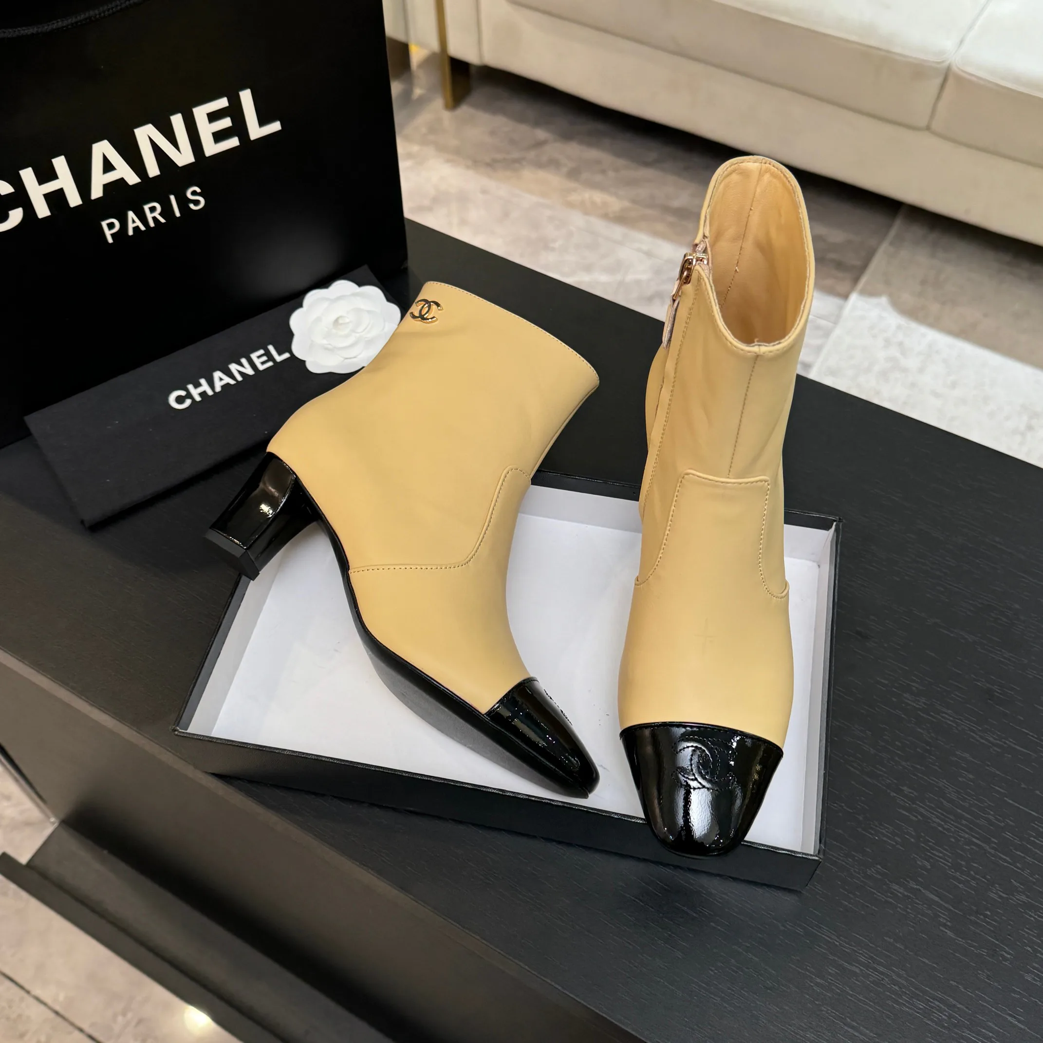 Верх и отделка выполнены из кожи по оригинальной концепции. На голенище декоративный элемент — двойная буква C. Каблук — широкий и устойчивый, обеспечивает комфорт и солидность. Материалы: верх — кожа по оригинальной концепции; подкладка и стелька — овечья кожа; подошва — кожаная, импортированная из Италии, обеспечивает хорошую амортизацию и долговечность. Размеры: 35–39; по запросу возможна настройка на 40–41. Как носить: с минималистичным платьем или костюмом прямого кроя; с джинсами и кожаными аксессуарами для стильного повседневного образа. Преимущества: фирменный дизайн с акцентом на двойную C; комфортная посадка на устойчивом каблуке и качественные материалы, которые выглядят роскошно и держат форму. Уход: держать в чистоте, защищать от влаги; использовать средства по уходу за кожей и хранить в коробке для сохранения формы.
