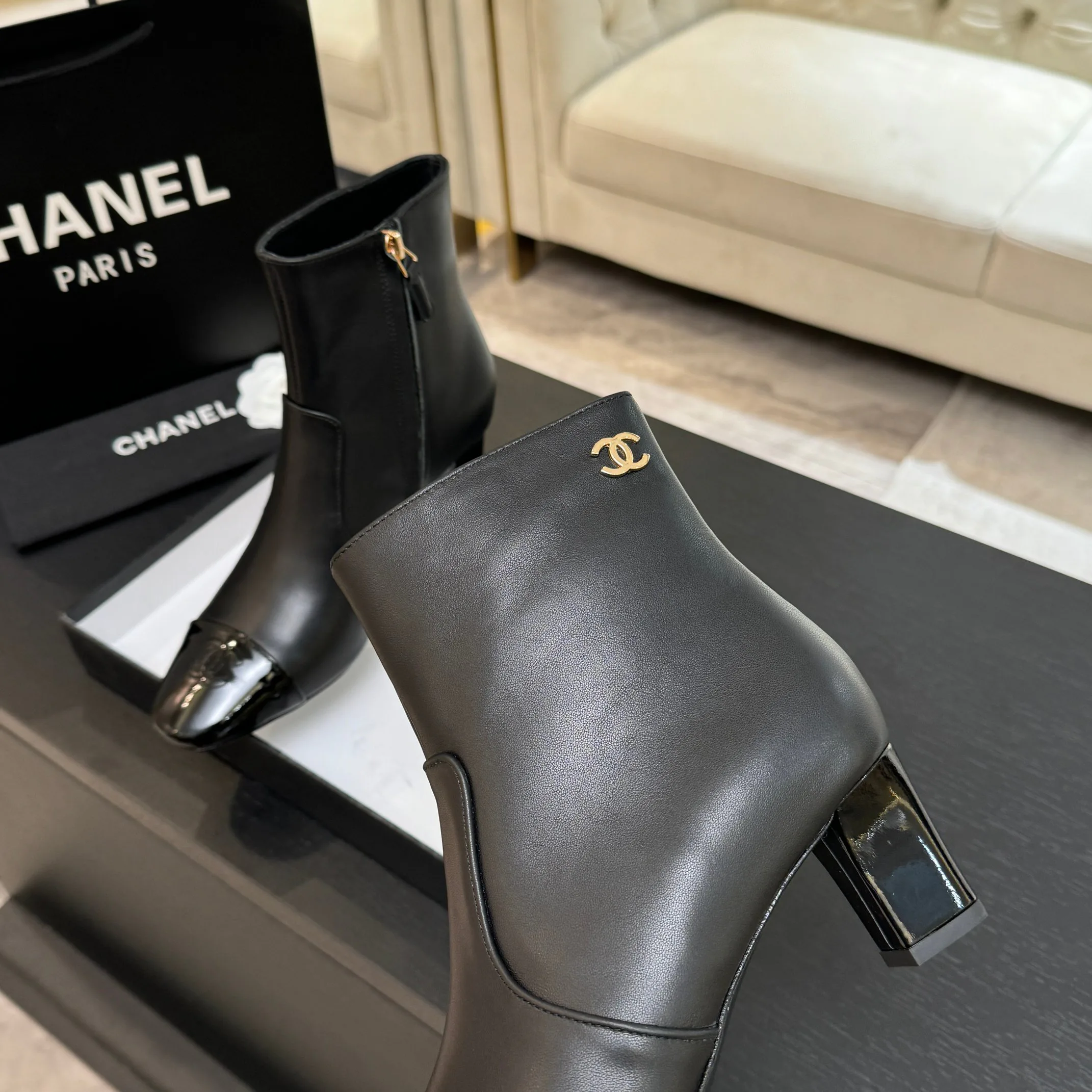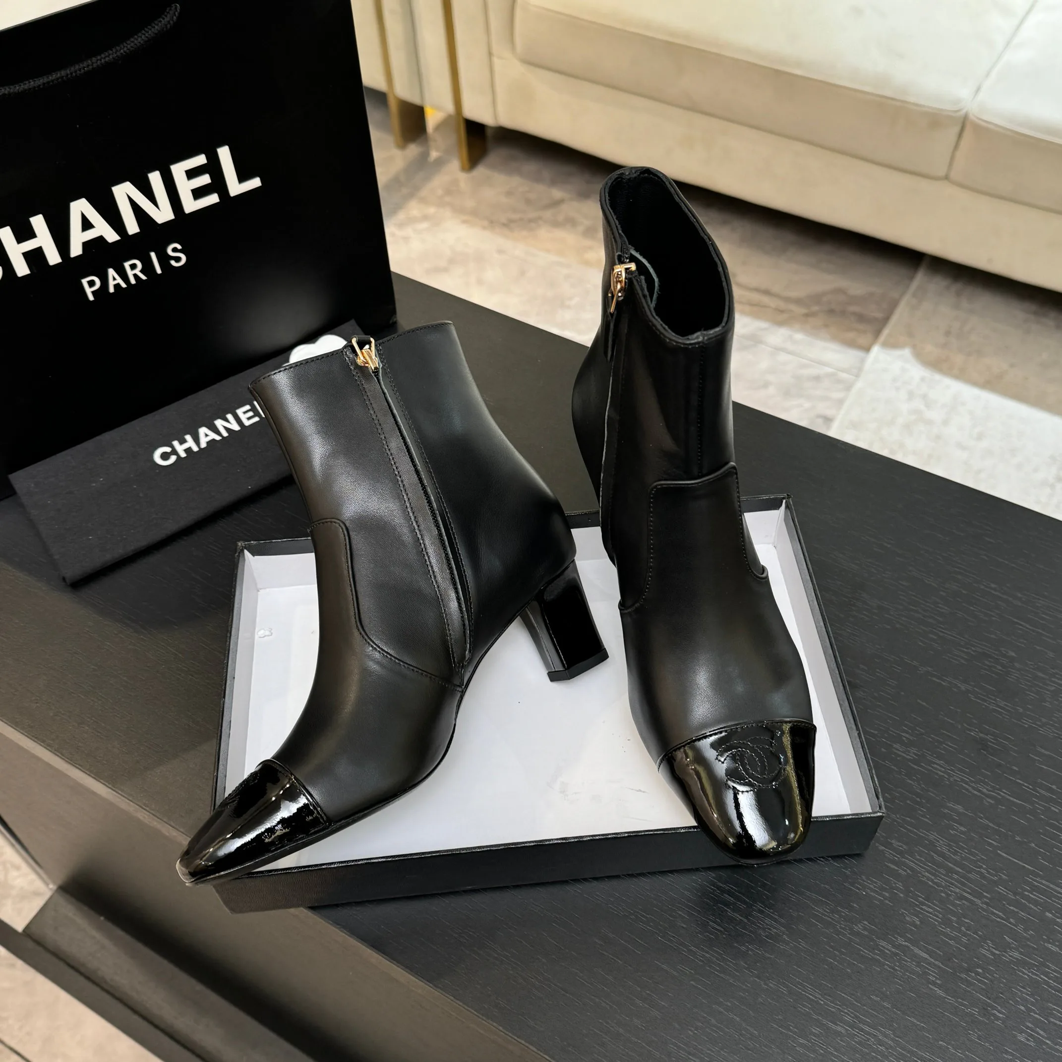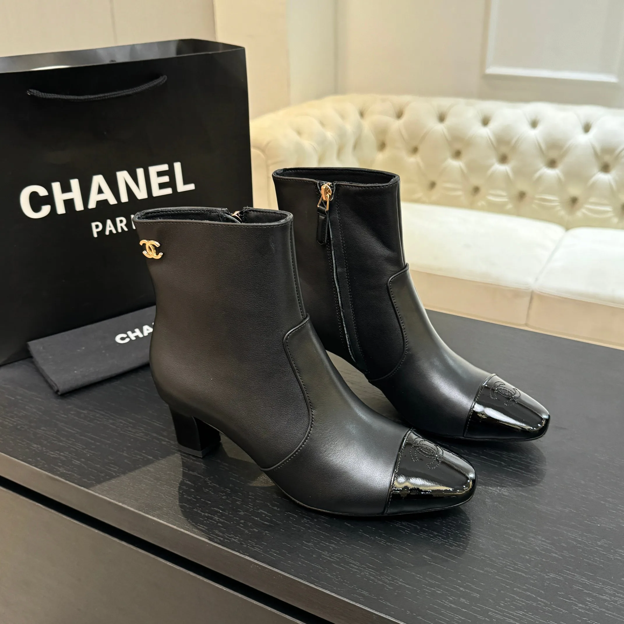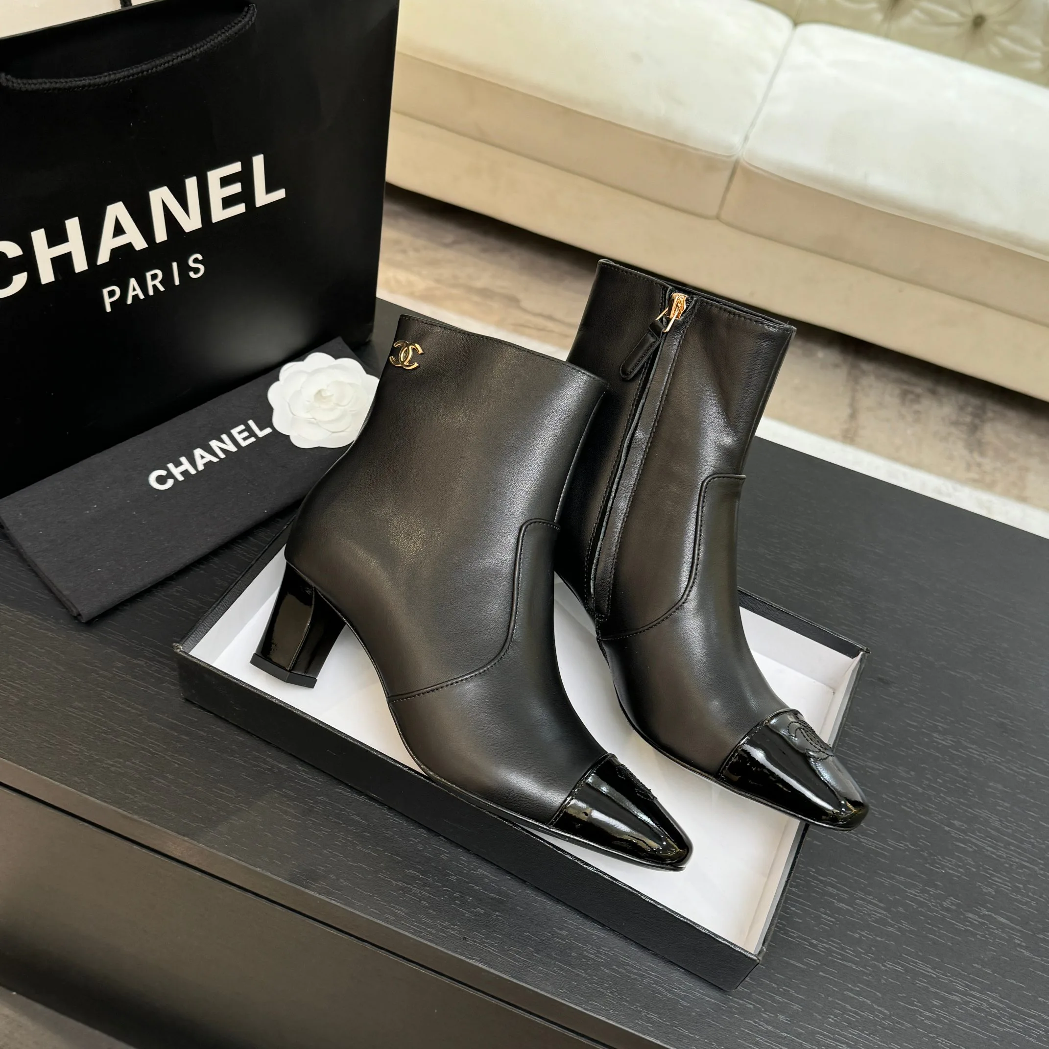 Дизайн и детали: верх — оригинальная кожа по заказу; подкладка и стелька — овечья кожа; подошва — натуральная кожа из Италии. На цилиндрической shaft размещён декоративный элемент двойной C, подчёркивающий статус. Массивный каблук добавляет уверенности при ходьбе.