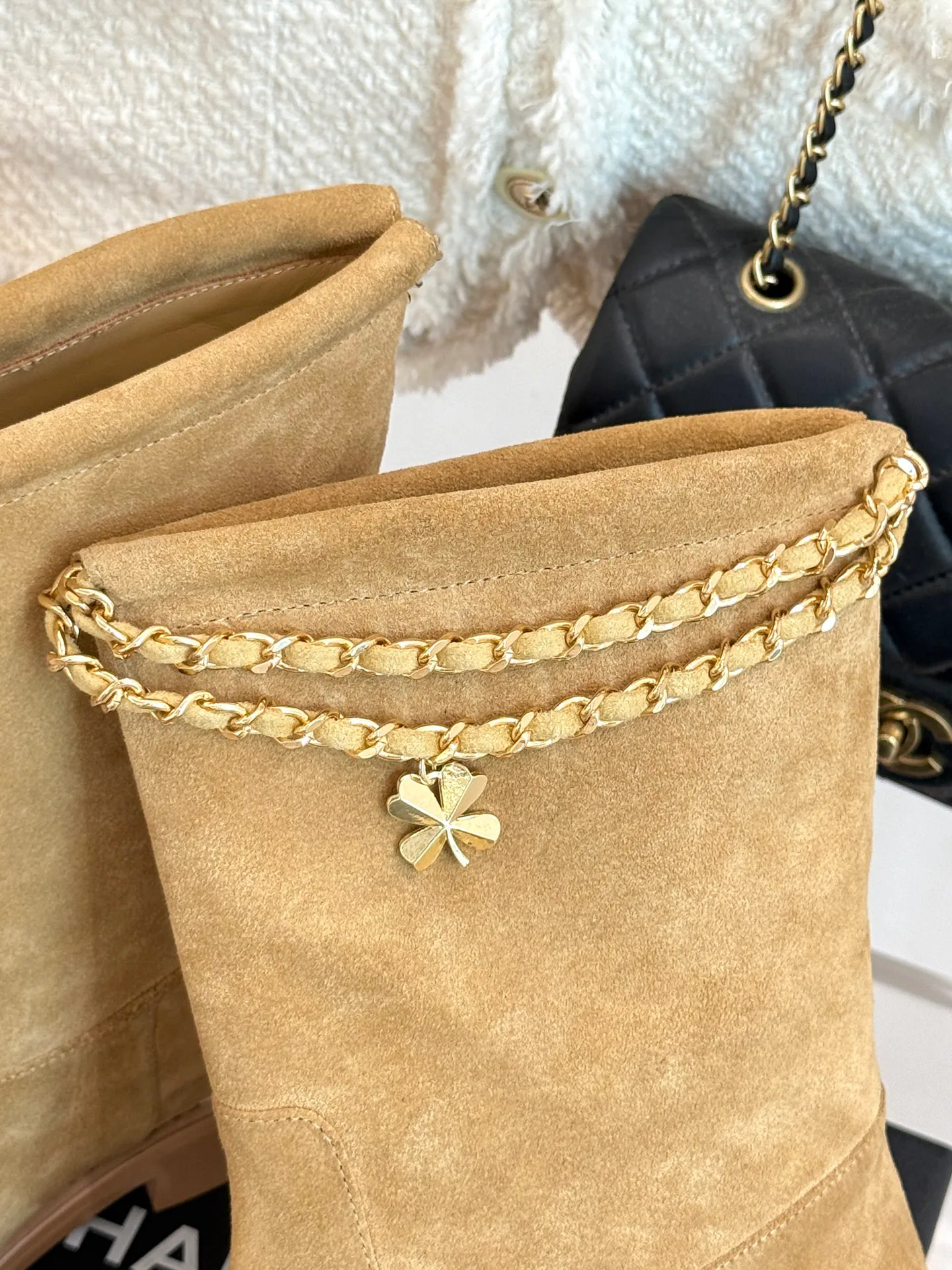 Короткие ботинки обеспечивают оптимальную высоту голенища, а цепочный декор придает обуви дерзкий характер. Универсальная модель подходит как для повседневного стиля с джинсами, так и для нарядного платья на важное мероприятие. Стандартная размерная сетка включает размеры от 35 до 39, по индивидуальному заказу доступны размеры 40 и 41.