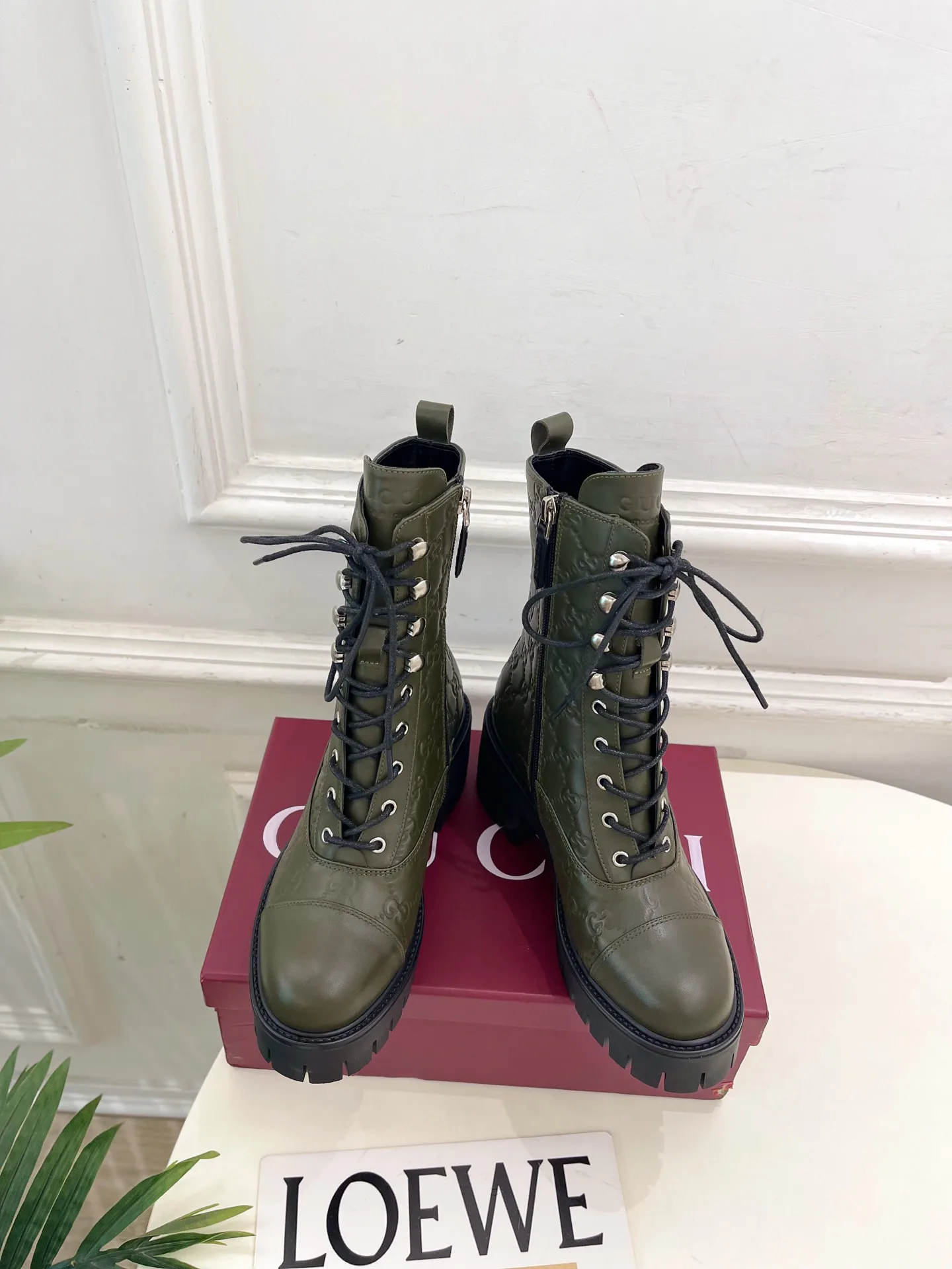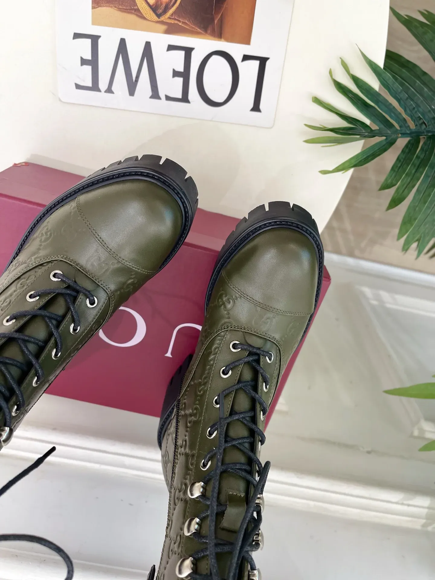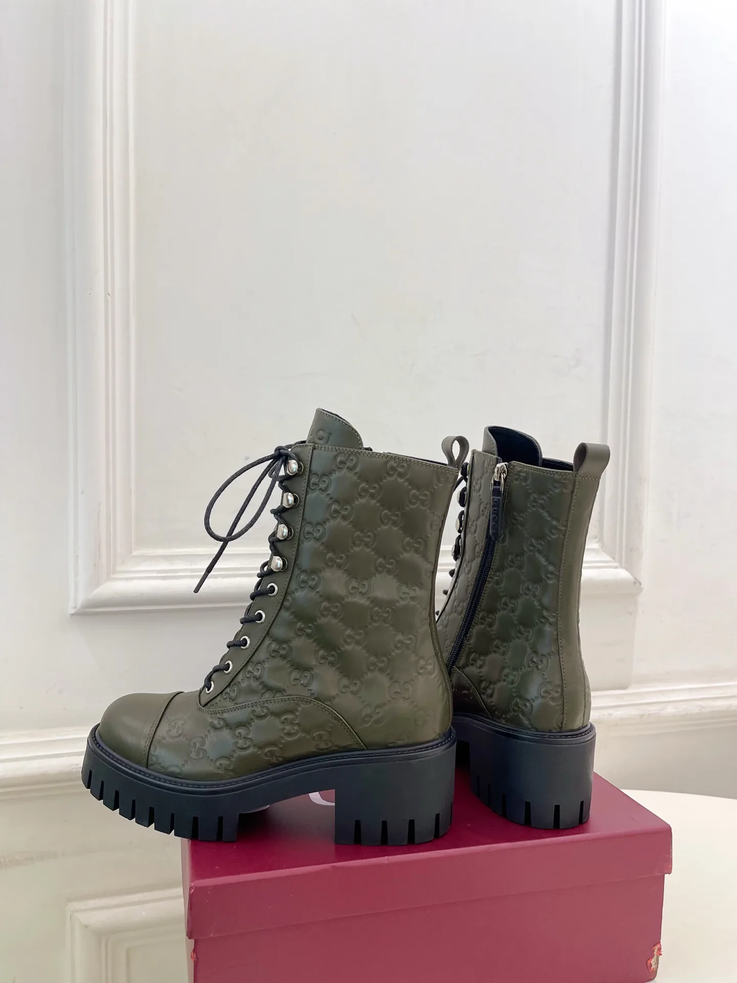 Шнуровка на голенище с детализацией GG.
