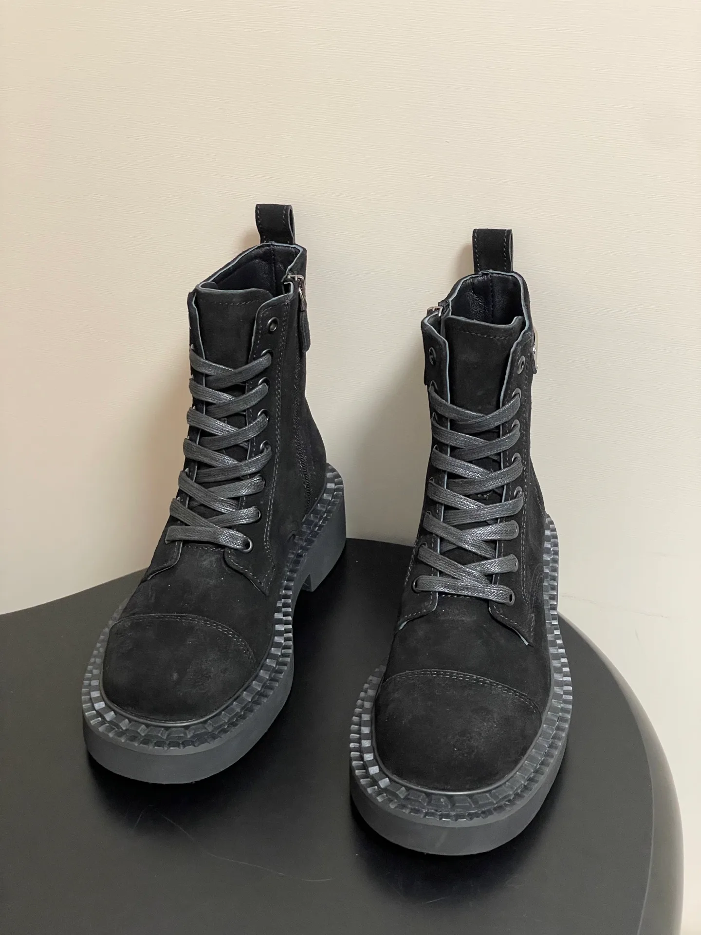 Ботильоны имеют двойной кант, боковую молнию и шнуровку для удобного надевания и комфортной фиксации. Внутри находится подкладка из овчины, обеспечивающая тепло в холодную погоду. Размерный ряд включает стандартные размеры 35–39, в то время как размеры 40–41 изготавливаются под заказ. Уход требует избегания агрессивных чистящих средств и сохранения обуви в сухом помещении.