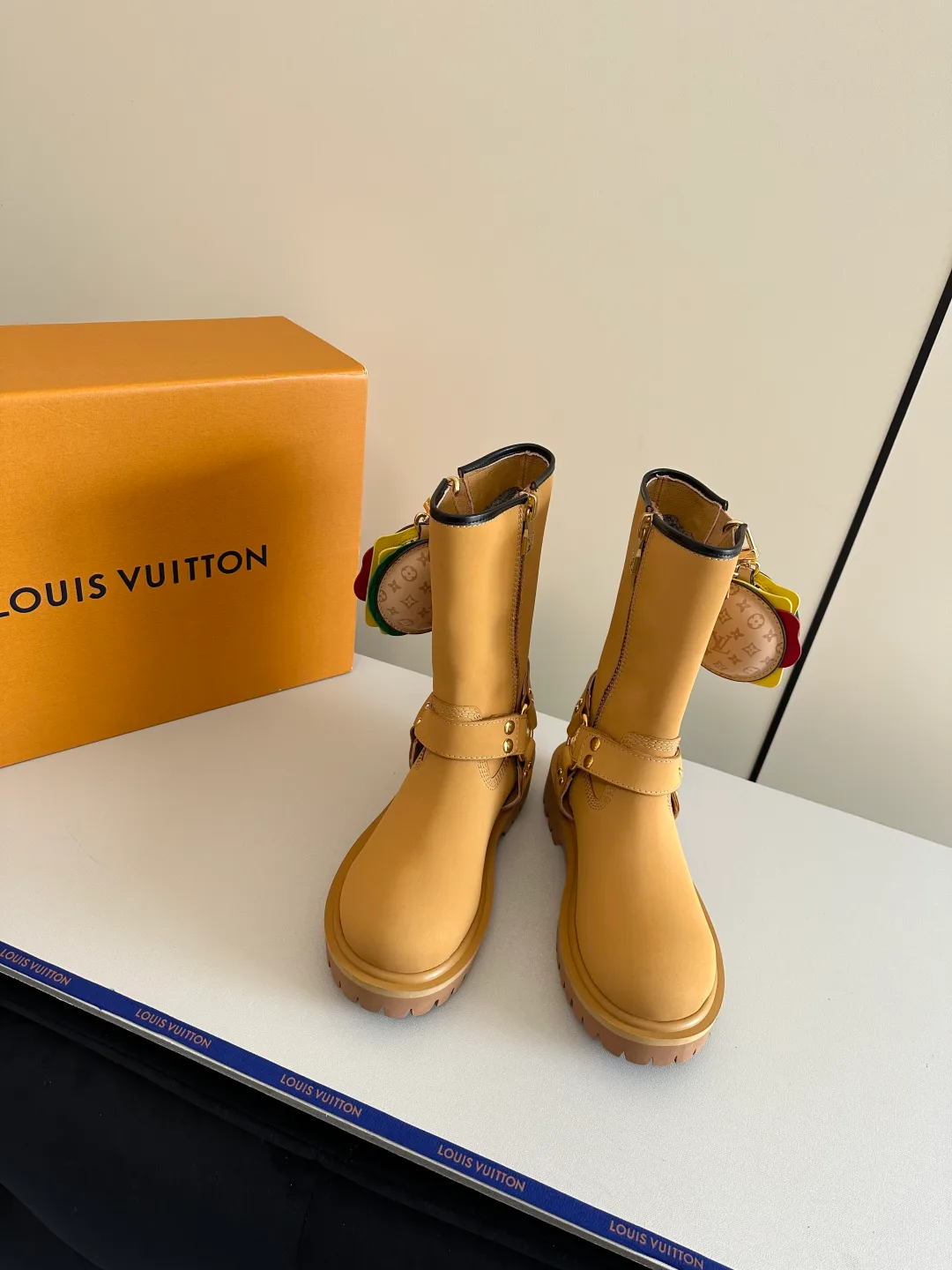 Универсальная пара для мужчин и женщин: дизайн одинаков для обоих полов. Верх обуви: глянцевая окантовка по краю и матовая поверхность в двух оттенках — черный и Desert Yellow. Подкладка: натуральная овечья кожа. Фурнитура: металлические элементы Timberland, пряжки и крепления. Декоративный элемент: подвеска в виде гамбургера, снимаемая и служит держателем для ключей и наушников.