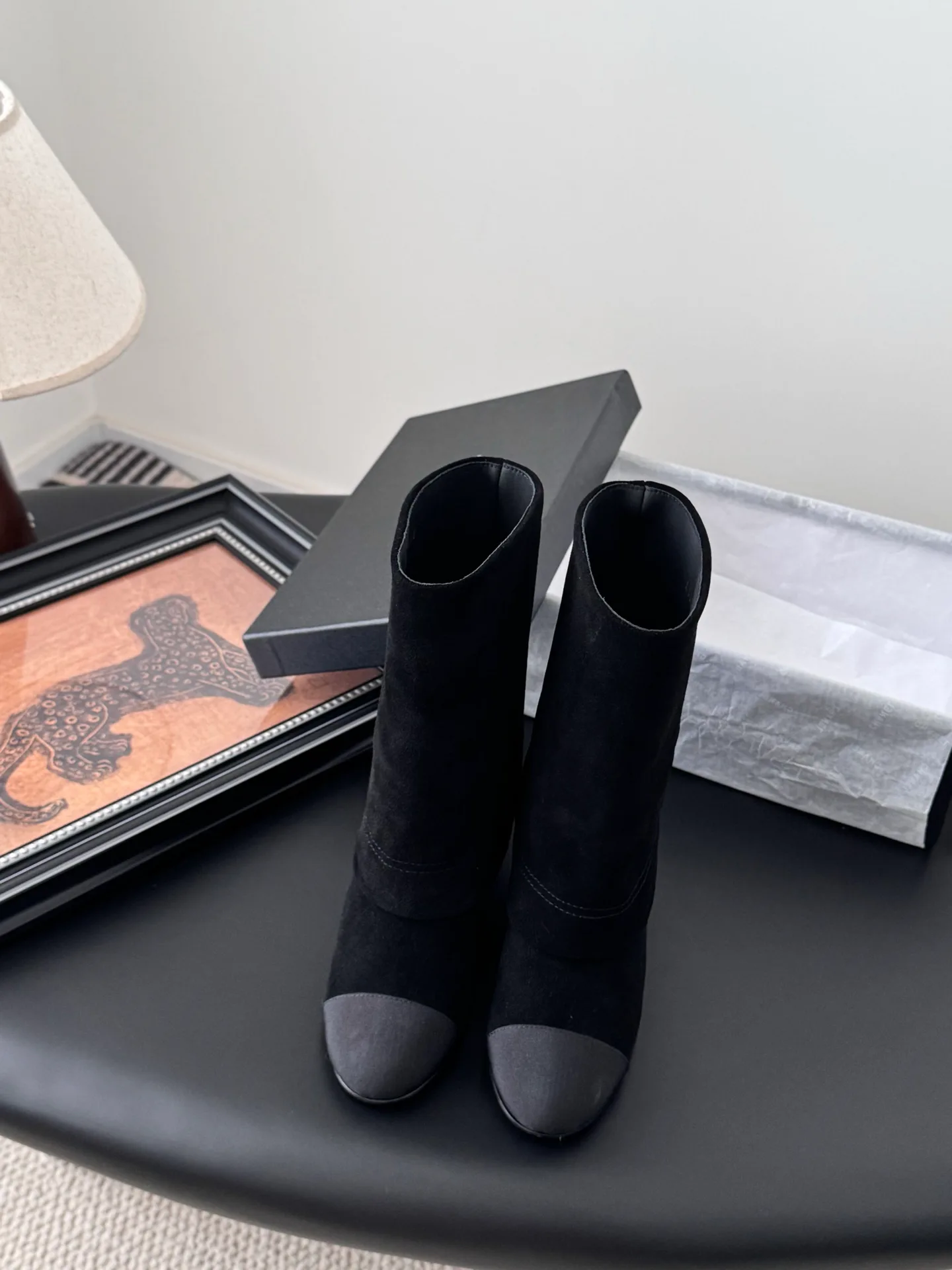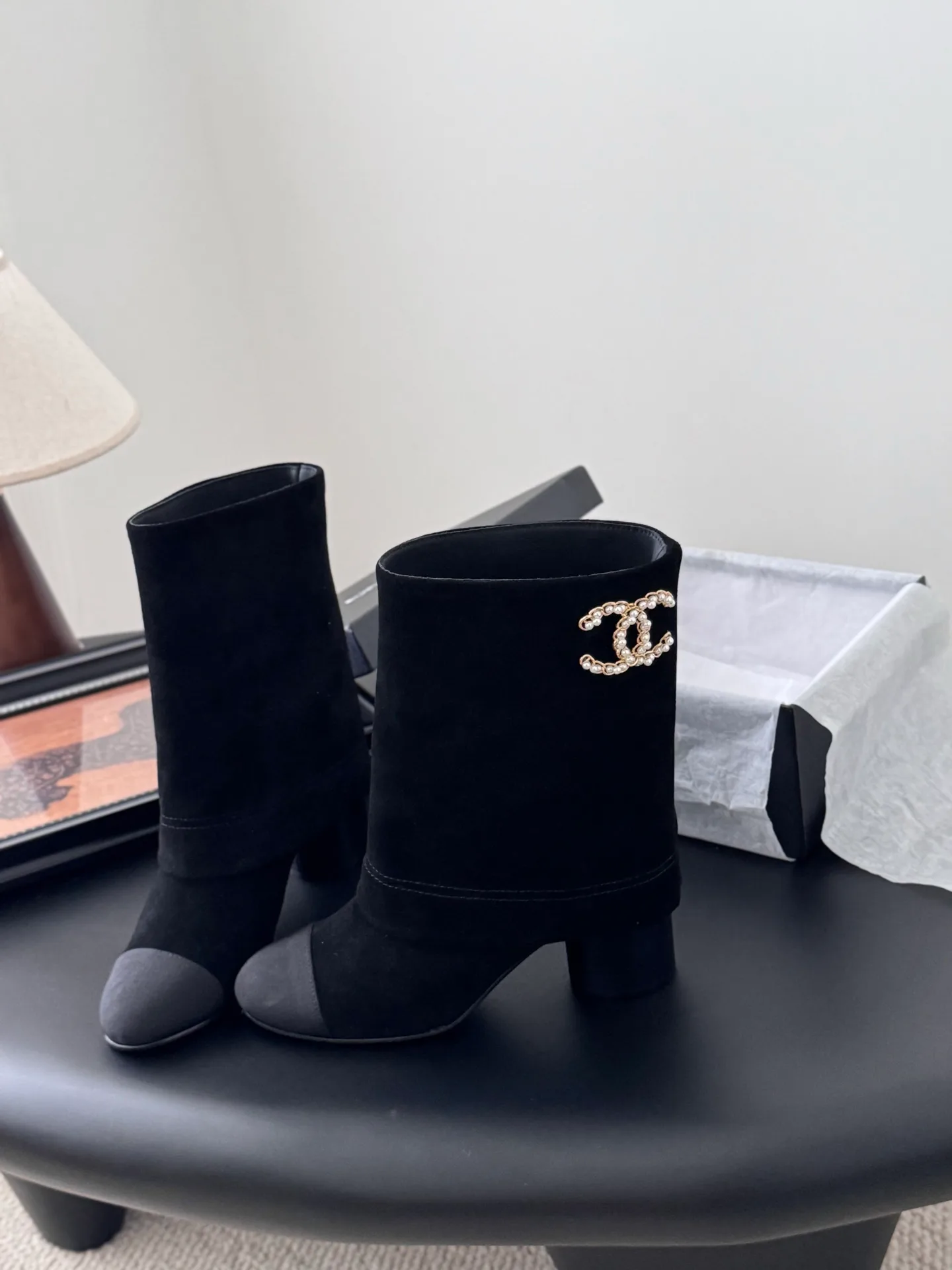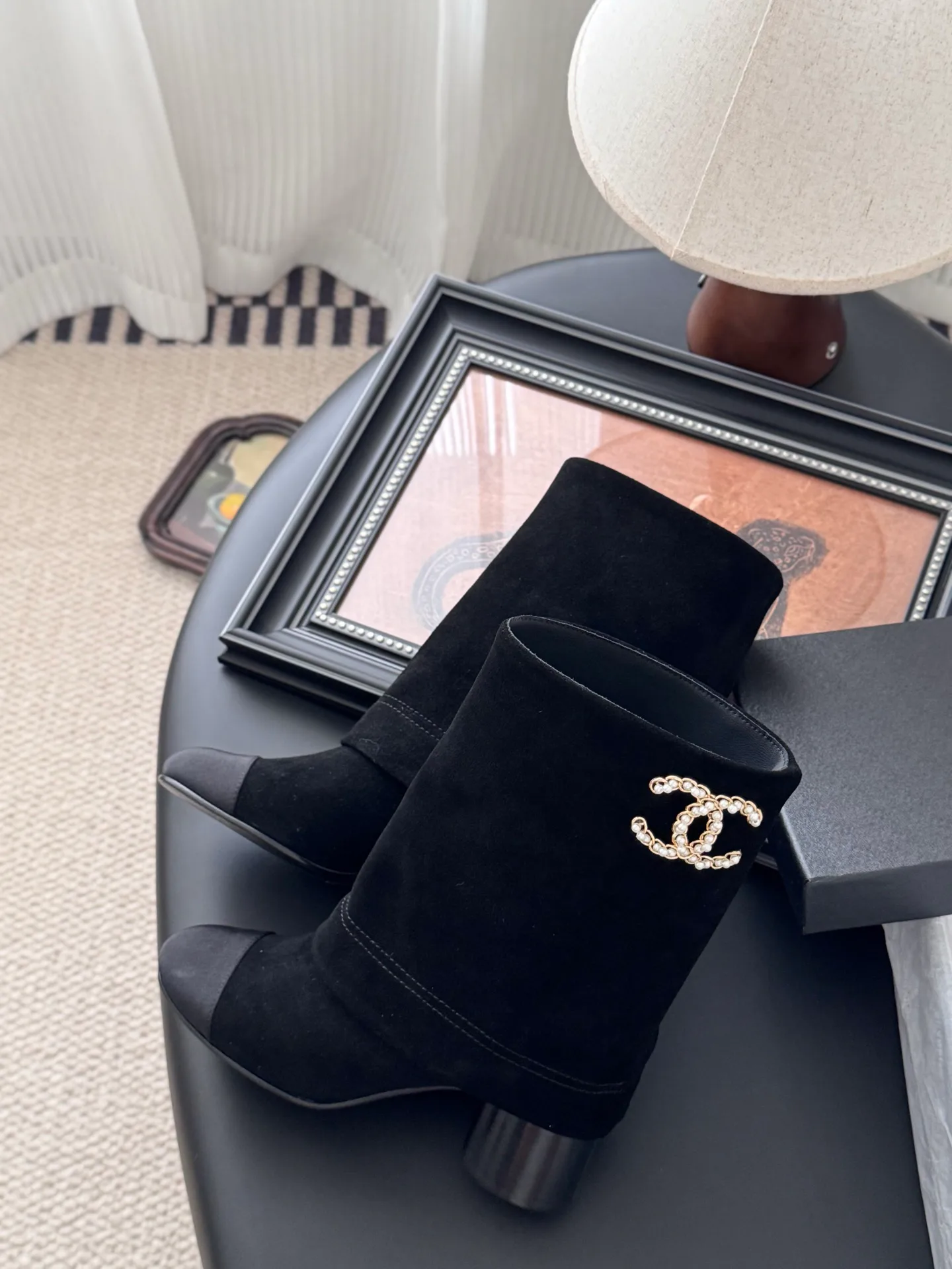 Дизайн и стиль. Маленький круглый нос и плавные грани создают гармоничный, не резкий силуэт. Не заострённый дизайн делает сапоги мягкими и изящными, добавляя изысканности без жесткости. Деталь в виде цепи добавляет характерный акцент в духе Chanel и превращает обувь в стильный элемент образа.