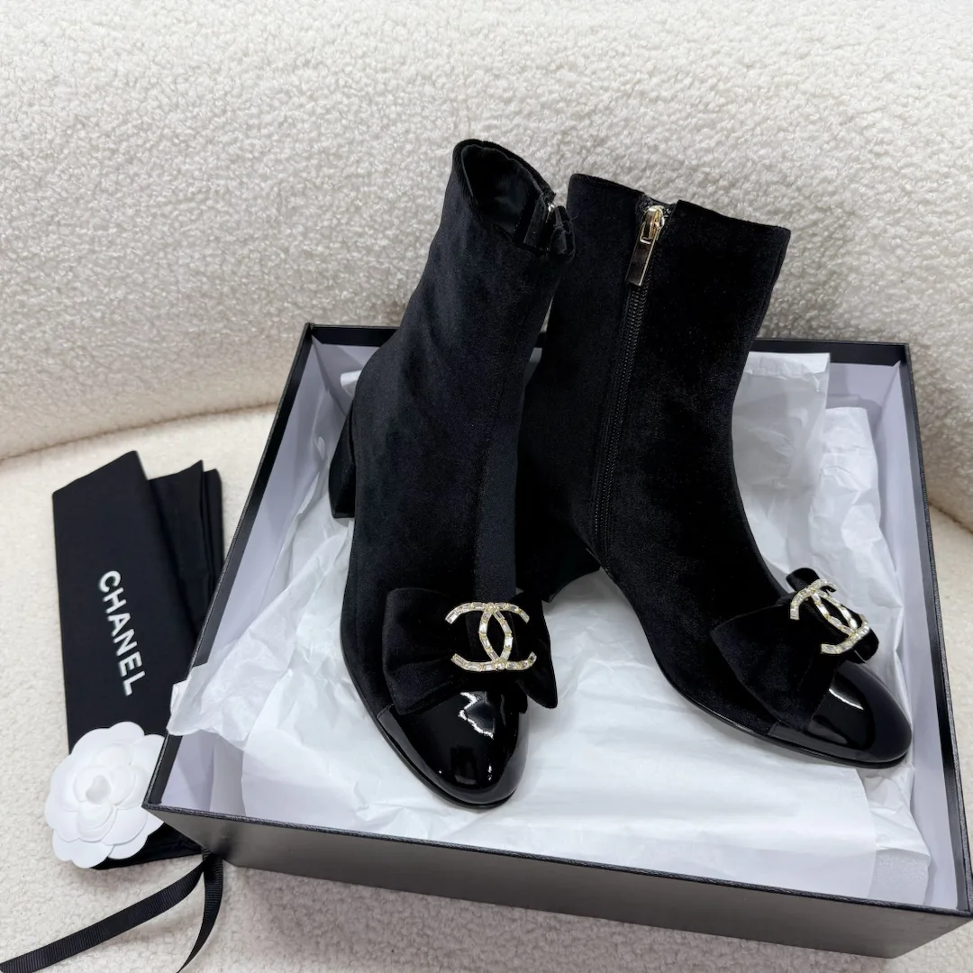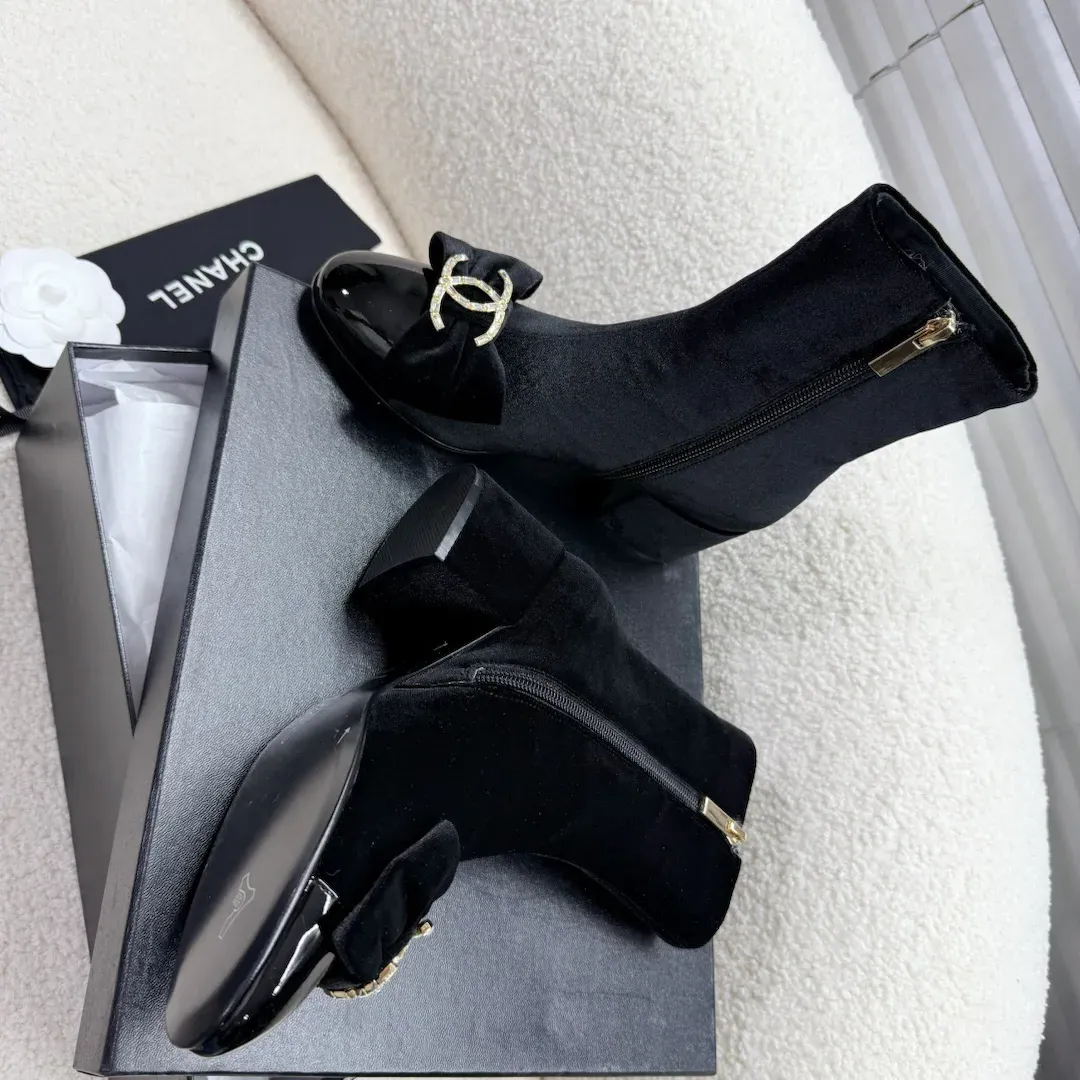 Уникальная деталь – изысканный водный стразы в форме бабочки, придающая обуви шикарный и утончённый вид. Ботинки оснащены боковой молнией, что облегчает процесс надевания и снятия. На задней части обуви располагается эмблема C, что подчеркивает статус и оригинальность бренда.
