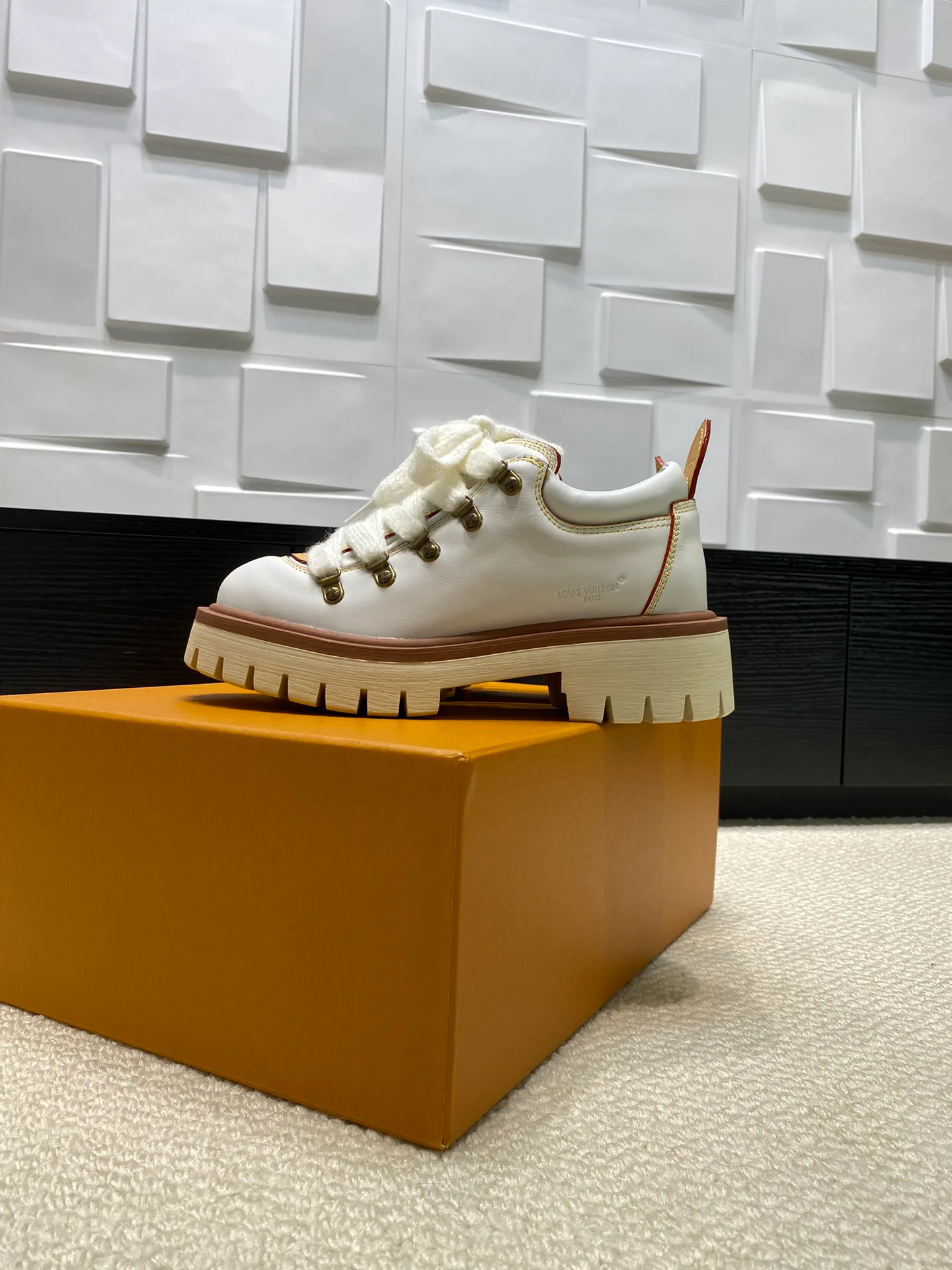 Дизайн сочетает дух классических горных ботинок с современными пропорциями. Утолщённые шнурки подчеркивают спортивный стиль, а кожаный задник с контрастной прострокой облегчает процесс обувания. Ботинки подходят для городской носки и стиля athleisure. Размеры варьируются от 35 до 45, что позволяет выбрать подходящий вариант.