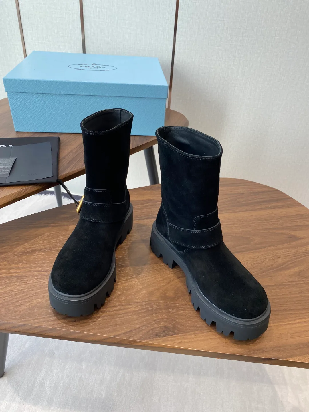 Сапоги имеют фирменную треугольную эмблему PRADA, что придает образу статуса. Формат слепонов обеспечивает удобство без лишних застежек. Доступные размеры варьируются от 35 до 41, при этом размеры 40–41 доступны под заказ. Рекомендуется регулярно очищать обувь от пыли и защищать кожу специальными средствами для ухода. Храните сапоги в сухом прохладном месте и используйте обувные колодки для поддержания формы.