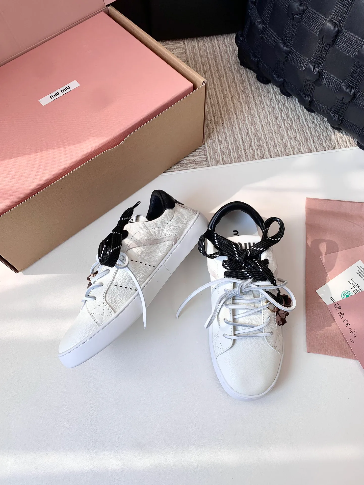 Кеды женские MIU MIU — с двойной шнуровкой на канвасовом верху.
