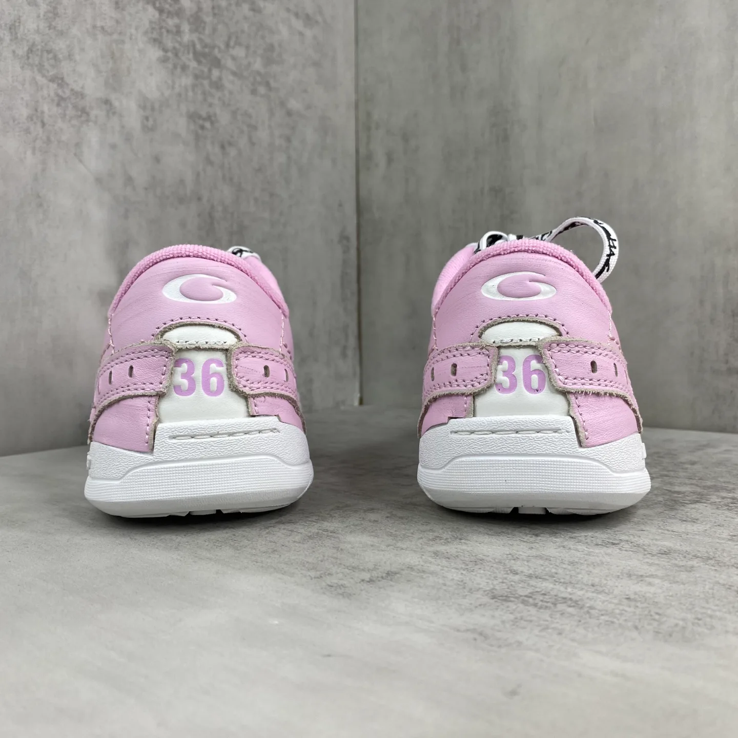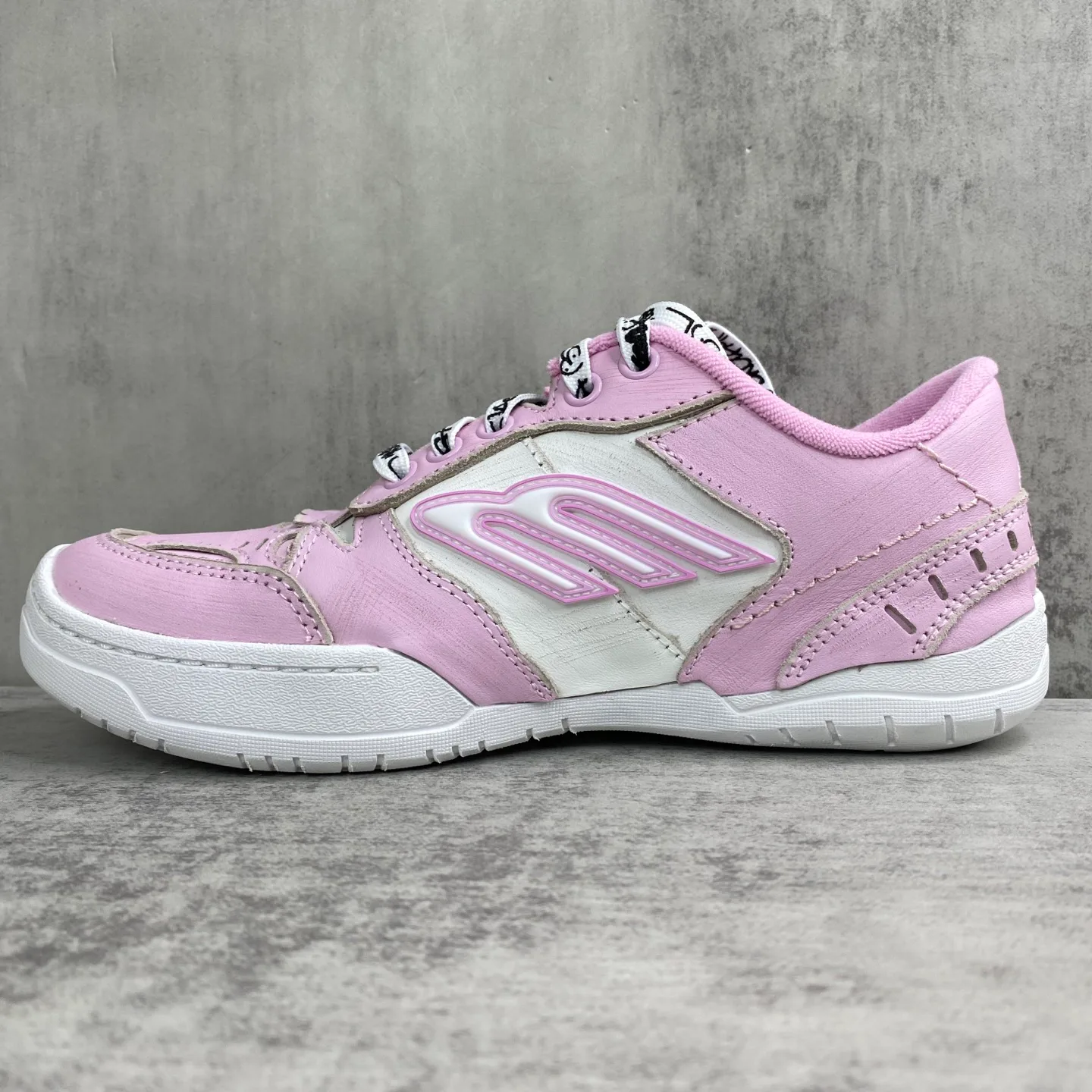 Модель имеет асимметричный крой и плавные линии силуэта, подчеркивающие уникальный дизайн. Декоративные элементы в духе Spores и характерные эффекты состаривания создают винтажный ретро‑стиль. Носок имеет закругленную форму, а шнуровка оформлена с фирменным элементом, что отражает индивидуальность и креативную свободу.