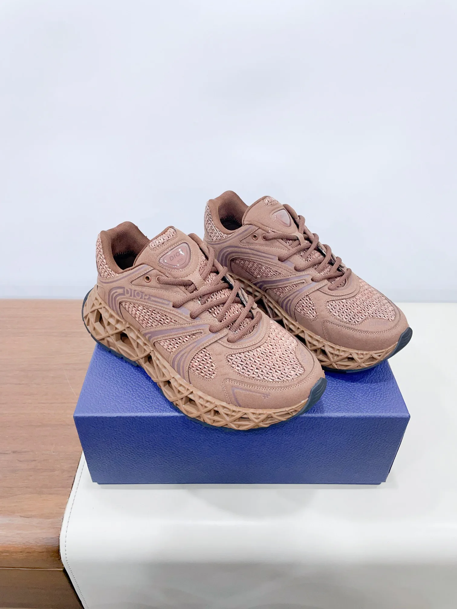 Дизайн вдохновлён высокими стандартами Dior, с использованием кожи высшего качества и дышащей сетчатой вставки. Такая комбинация материалов обеспечивает стильный внешний вид и отличную вентиляцию, что делает обувь удобной в разных климатических условиях и при активной жизни круглый год.