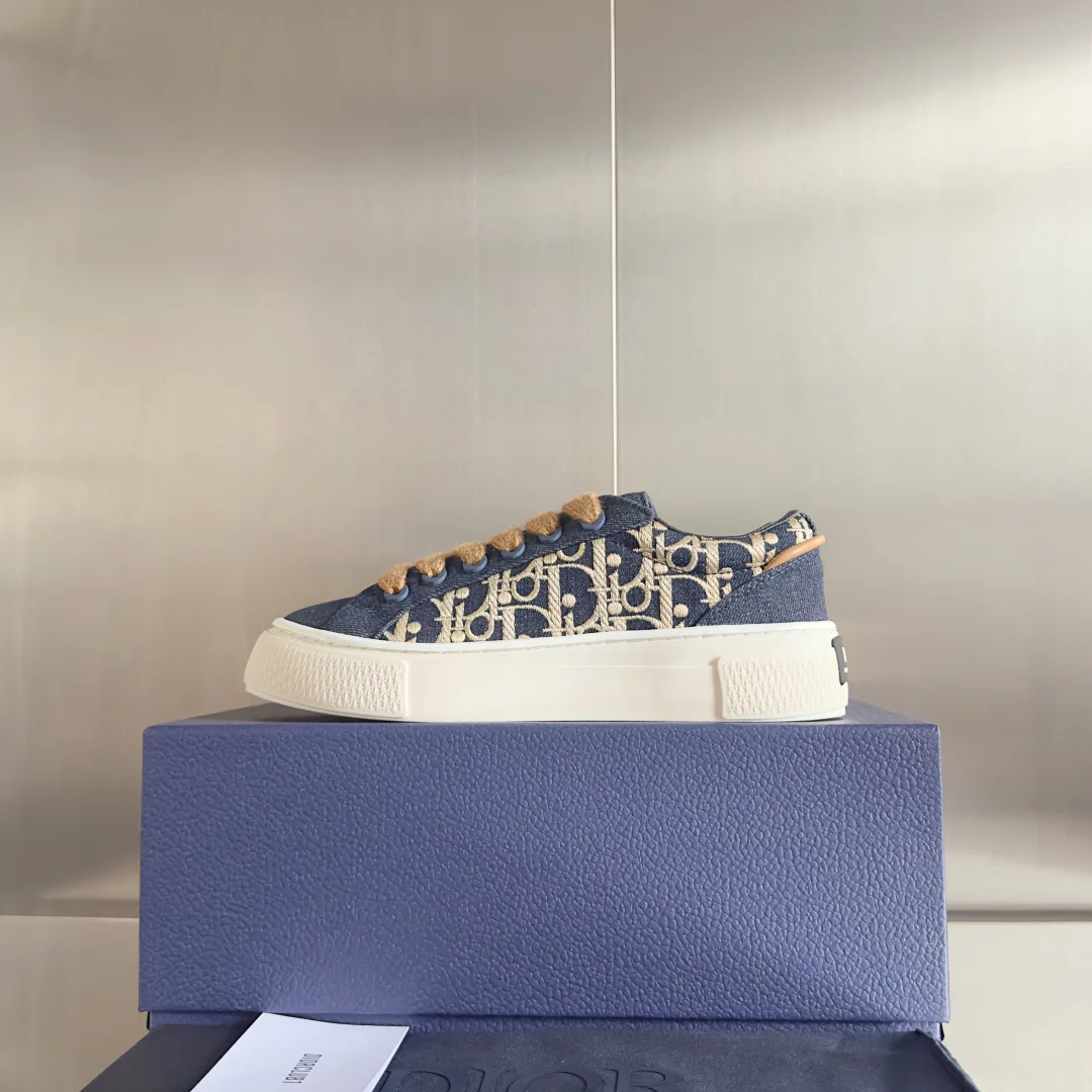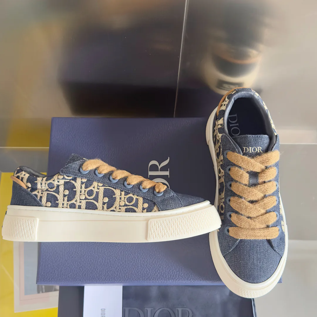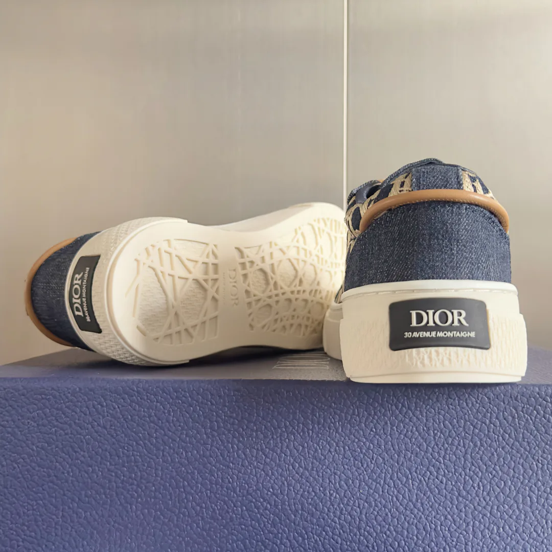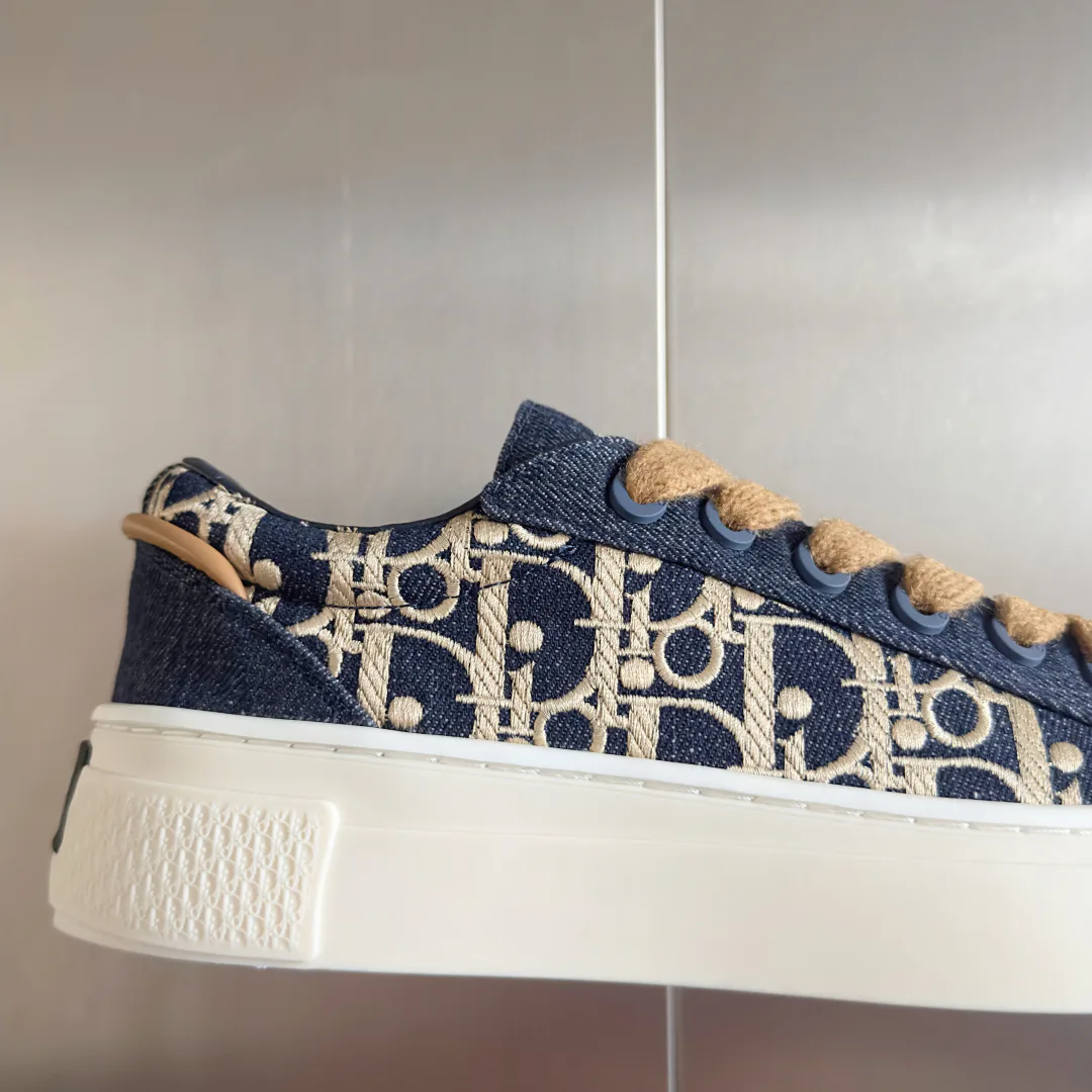 Dior B33 Spin представляет стильную интерпретацию классических теннисных обувок в формате для пары. Верх синий деним, декоративная вставка из ткани Oblique монограмма и деним-пэчворк, повторяющие фирменный рисунок Dior. Силуэт подчёркнут массивной резиновой подошвой, которая придаёт обуви современный характер и комфорт на каждый день. В комплект входит пара для мужчин и женщин, чтобы образ пары был гармоничным.