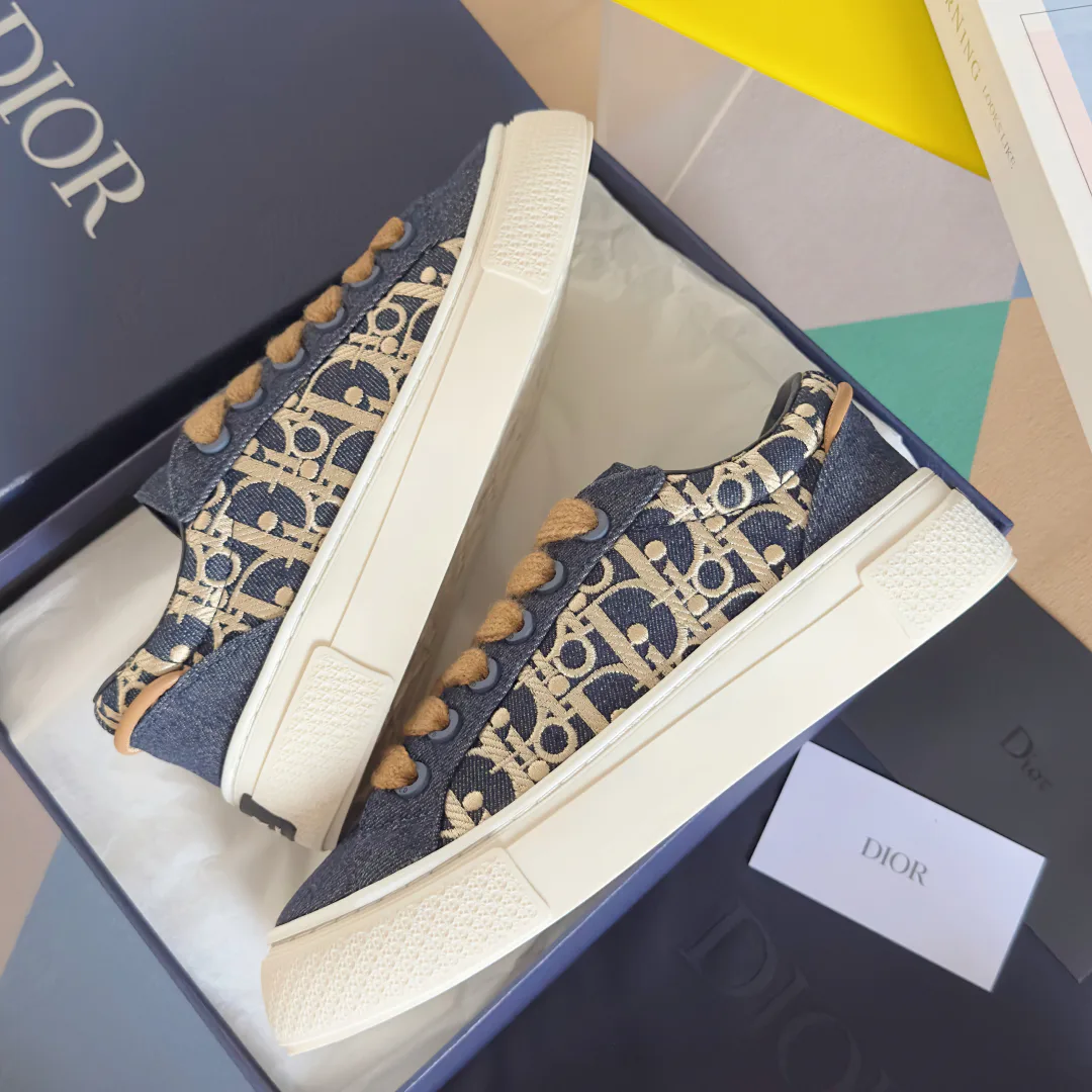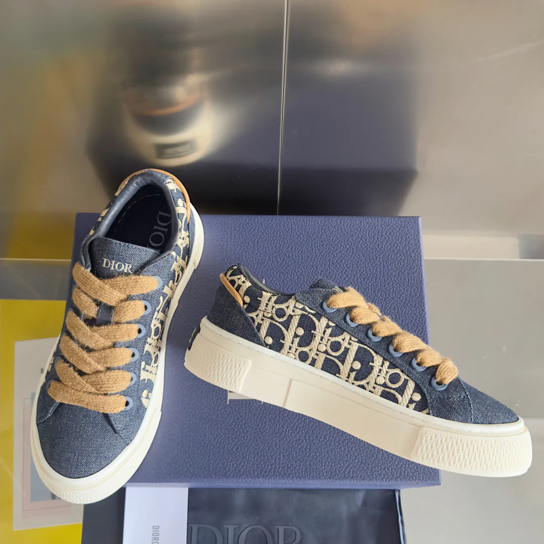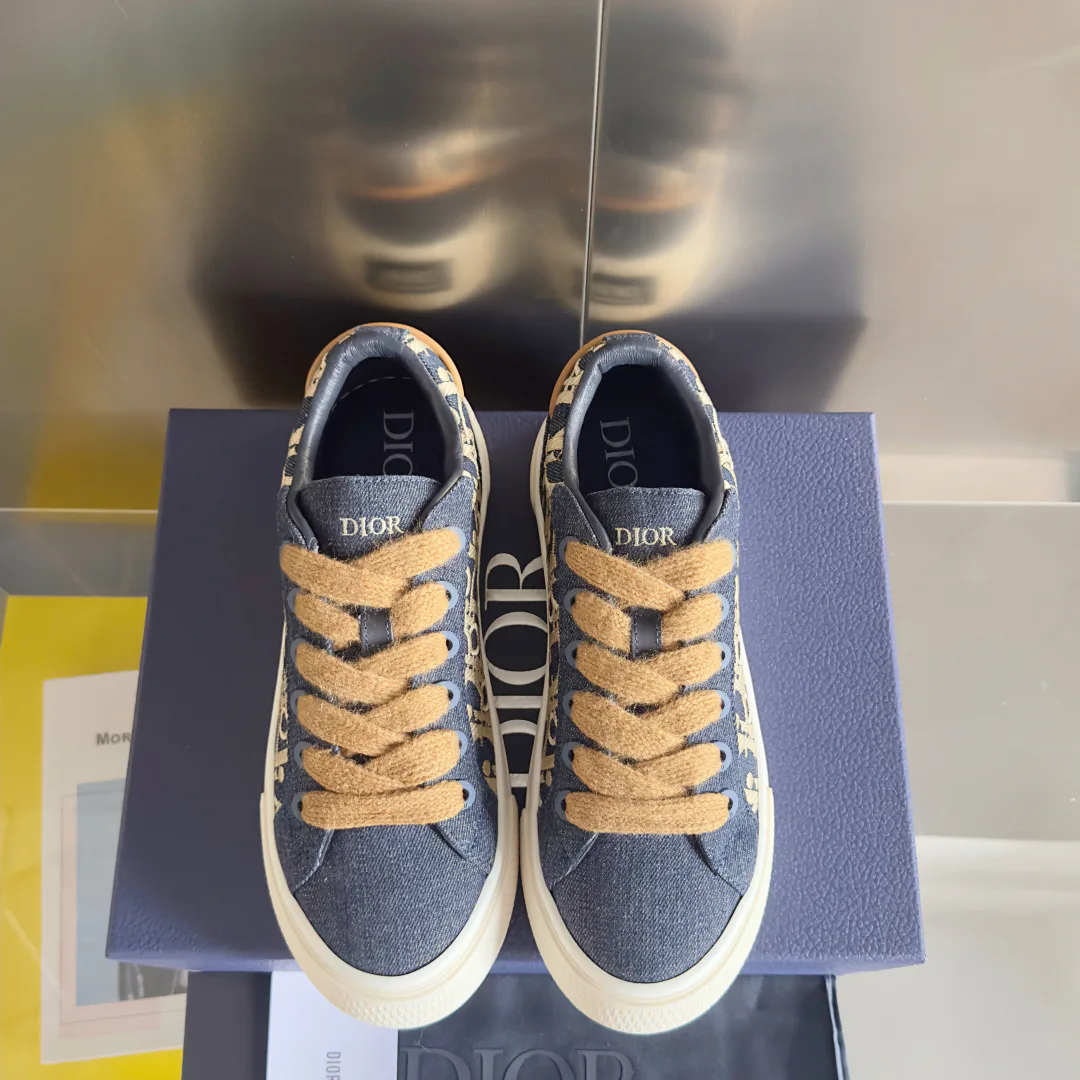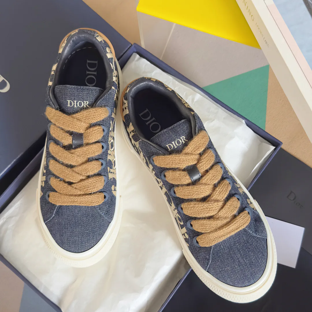 Dior B33 Spin представляет стильную интерпретацию классических теннисных обувок в формате для пары. Верх синий деним, декоративная вставка из ткани Oblique монограмма и деним-пэчворк, повторяющие фирменный рисунок Dior. Силуэт подчёркнут массивной резиновой подошвой, которая придаёт обуви современный характер и комфорт на каждый день. В комплект входит пара для мужчин и женщин, чтобы образ пары был гармоничным.