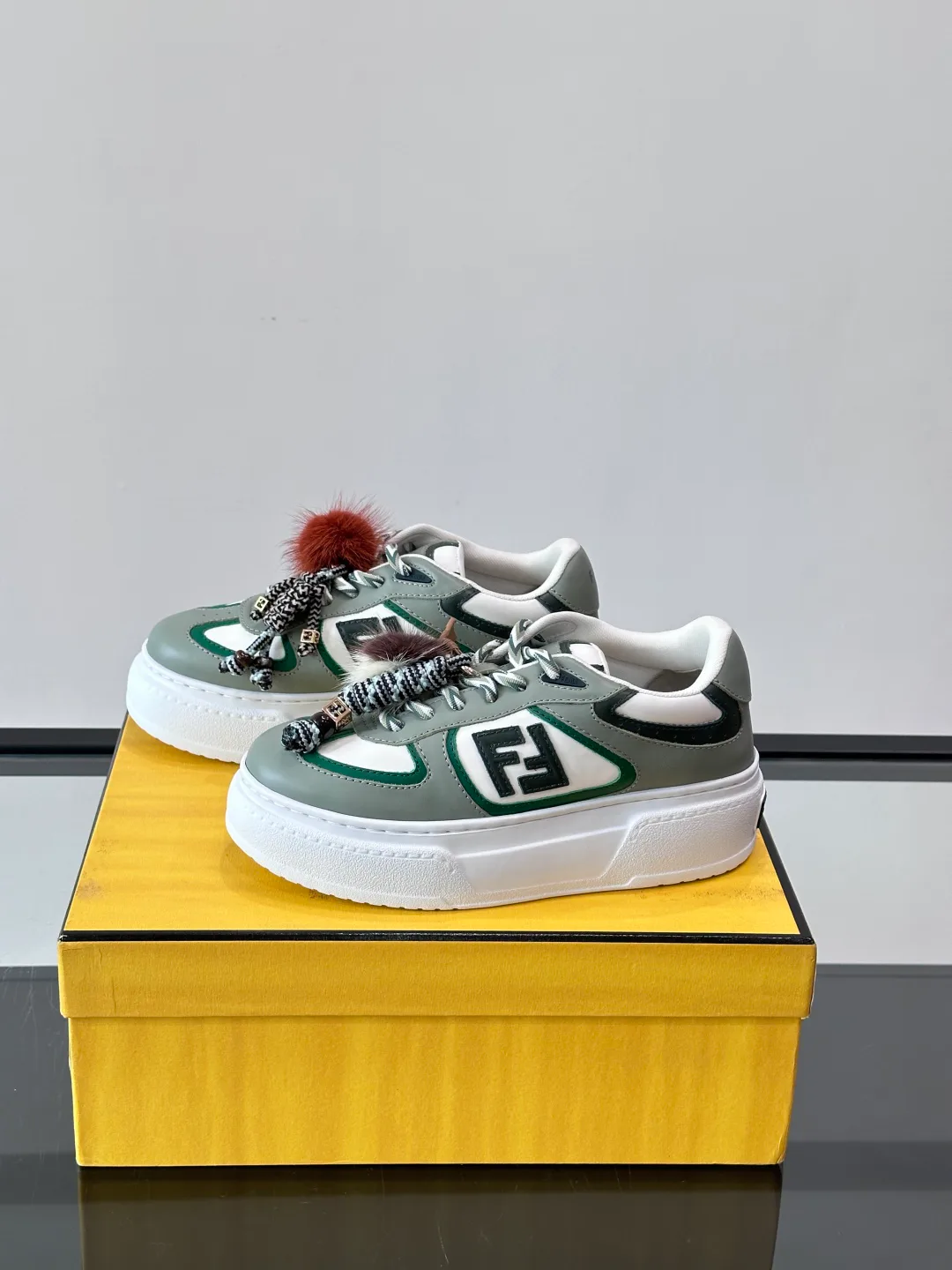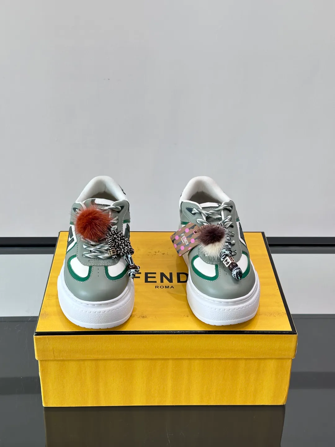 Кроссовки имеют съемные подвески из меха норки, которые можно использовать как брелок или украшение для сумки. Декоративные шнурки с пушистыми помпонами и цветными аксессуарами добавляют кроссовкам индивидуальности. Изготовлены из качественных материалов, обеспечивающих комфорт в повседневных прогулках.