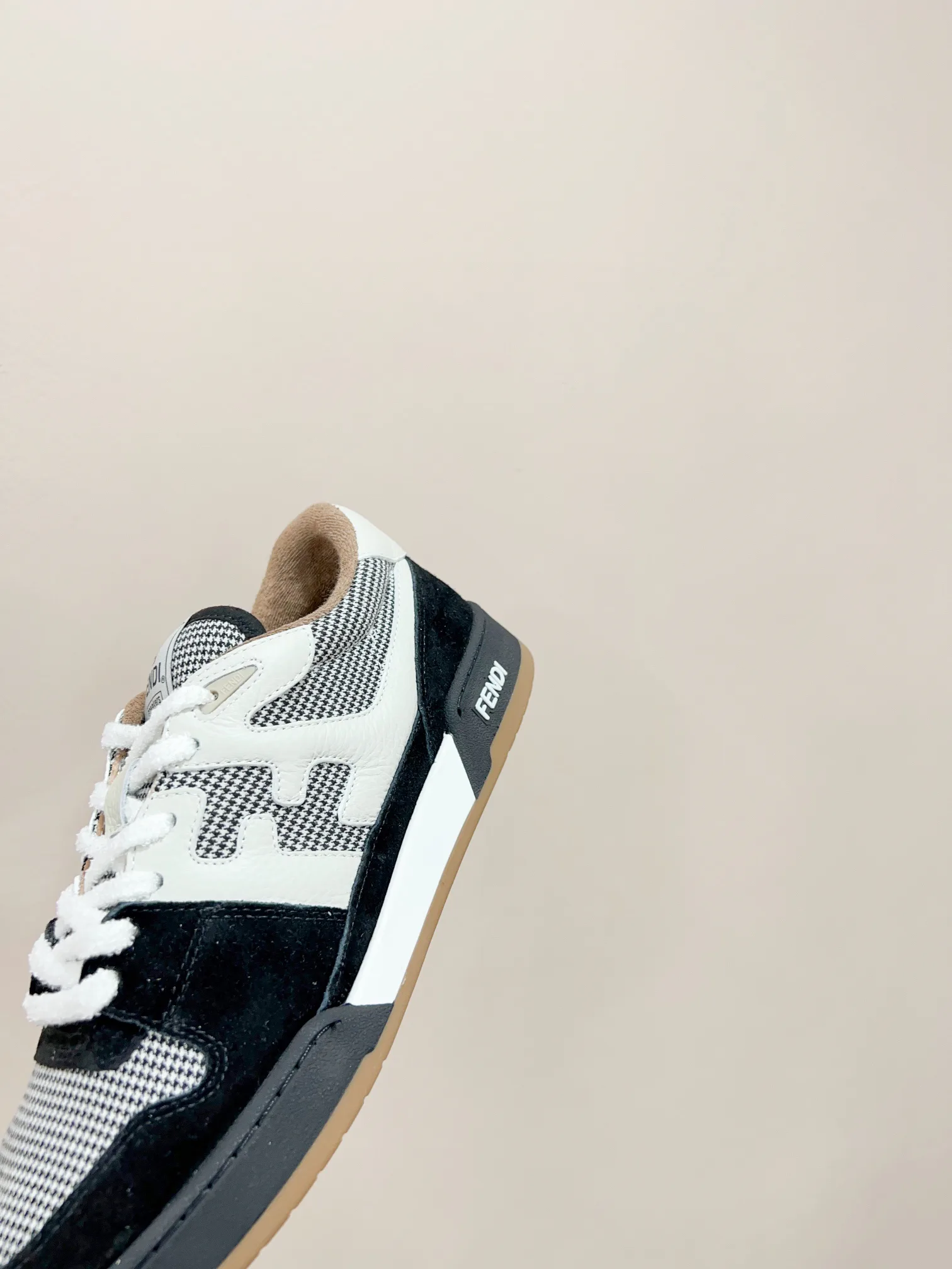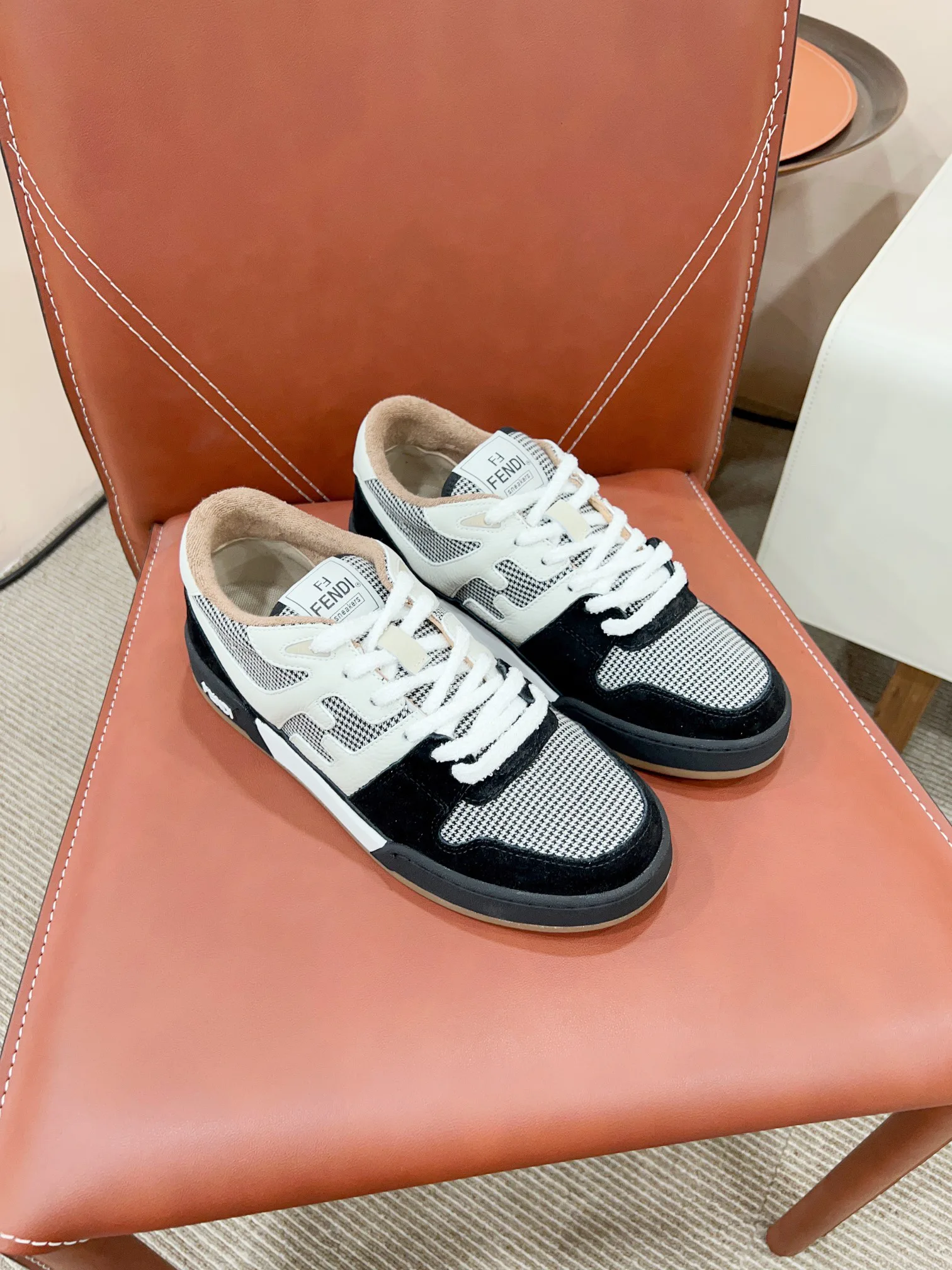 На боковине расположен характерный логотип в виде двух букв F, подчёркивающий принадлежность к бренду Fendi. Внутренняя отделка из мягкого махрового материала обеспечивает комфорт при носке. Вес обуви минимален, что делает их легкими и удобными для активного образа жизни, и они хорошо сочетаются с худи и другими элементами повседневного гардероба.