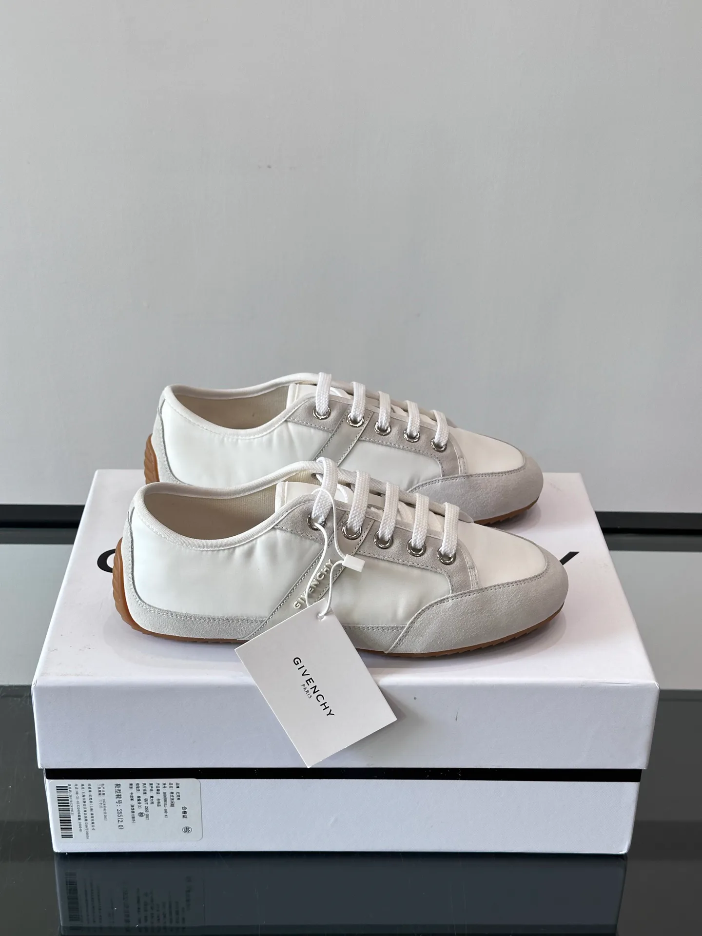 Обувь имеет классический спортивно-походный силуэт и резиновую подошву с элементами GIVENCHY, обеспечивающую устойчивость и хорошее сцепление. Внутренняя отделка из телячьей кожи гарантирует комфорт и дышащесть при носке. Модель подходит для повседневного использования.