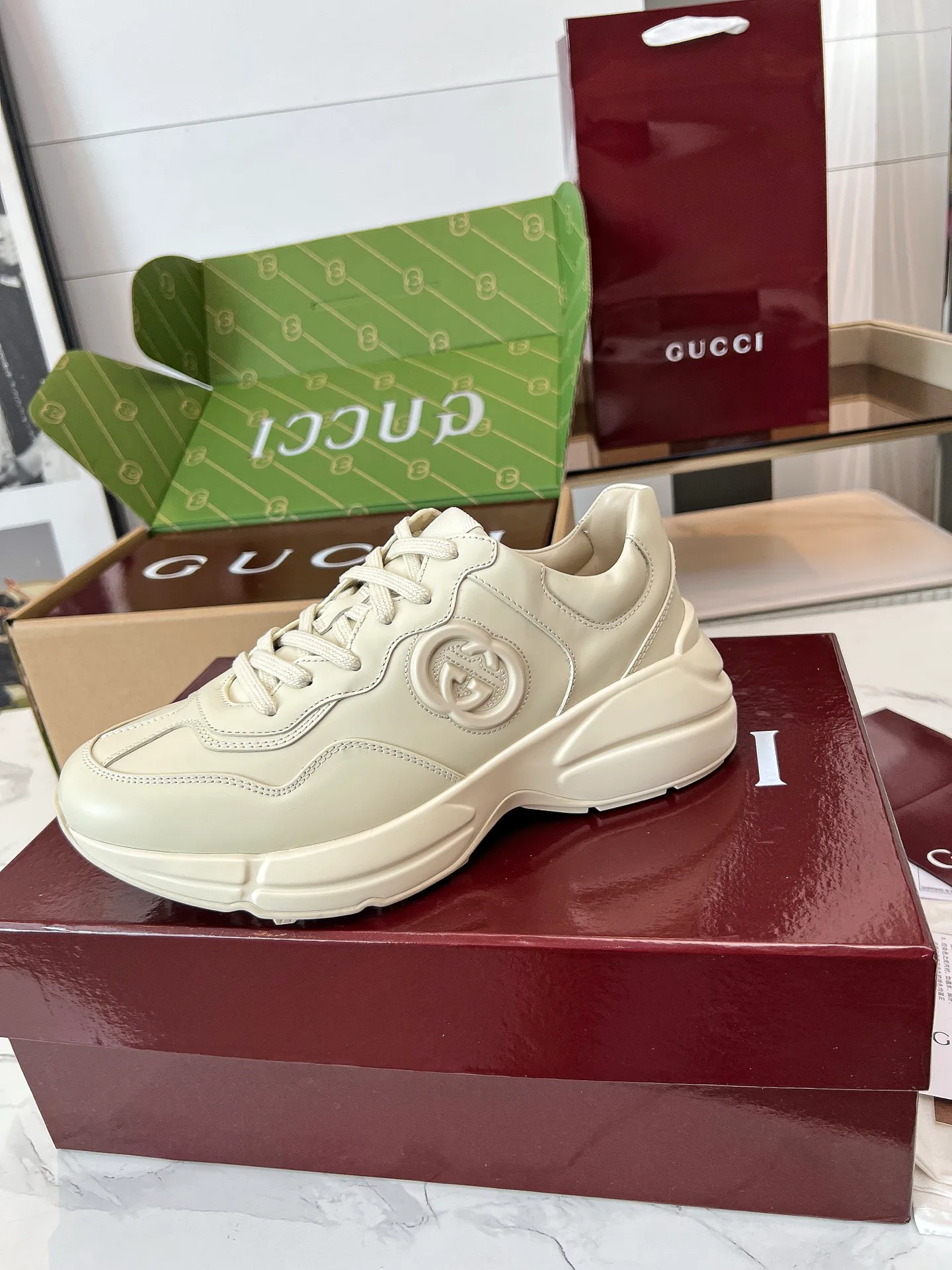 В кроссовках использованы премиальная кожа и качественный текстиль. Массивная форма и чёткие линии оживляют повседневный гардероб. Фирменный двойной G подчеркивает безупречный вкус. Модель подходит для создания стильных образов и доступна в размерах 35–40 и 39–45, обеспечивая комфортную посадку.