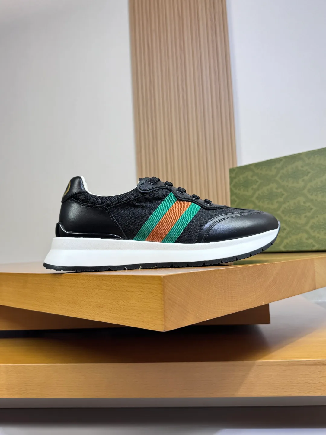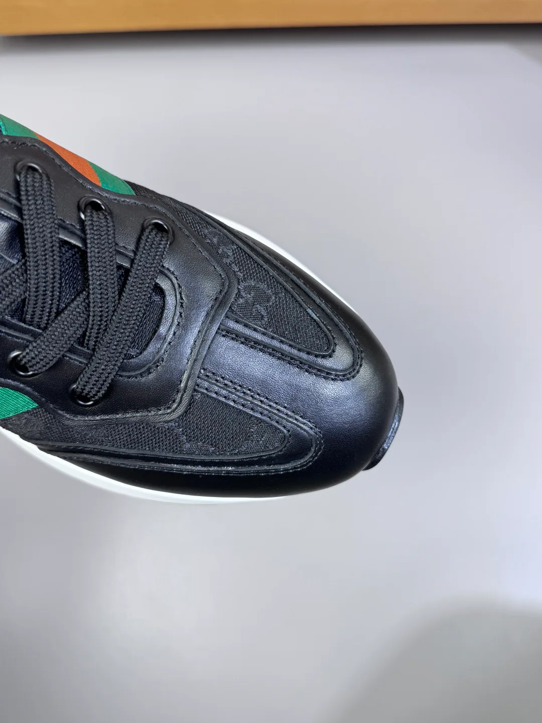 Внутренняя отделка выполнена из крашеной кожи. Подошва состоит из сверхлегкого TPU и резины, обладая двухцветной формой. Размеры доступны от 38 до 44, дополнительный 45 по заказу.