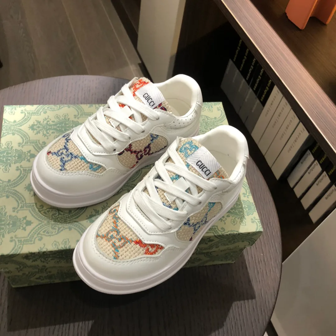 На заднике расположены логотипы GUCCI, а элементы обуви украшены GG-логотипом и классической тесьмой. Кроссовки подходят для повседневной носки и стильных образов. Доступны размеры 26–35.