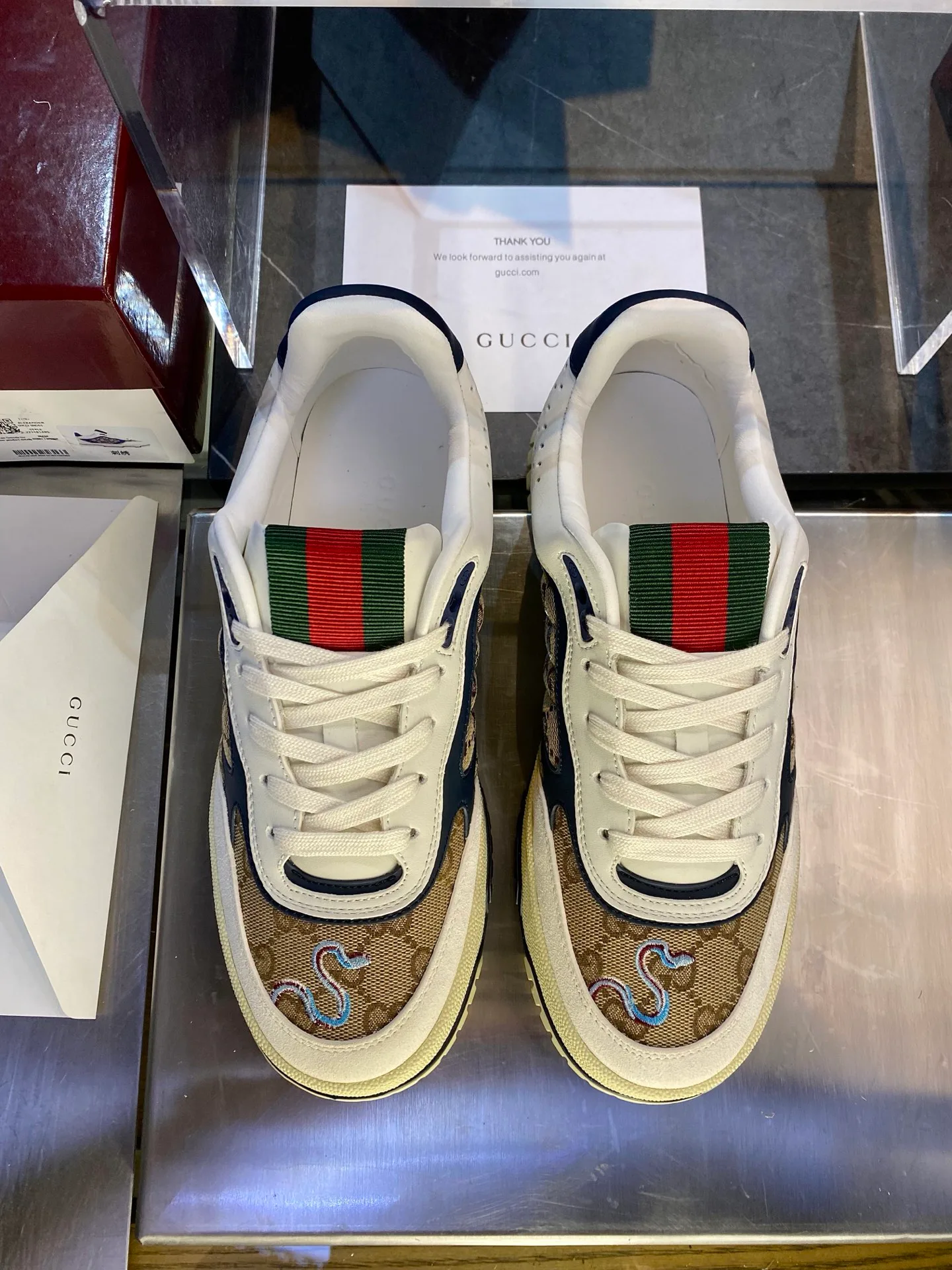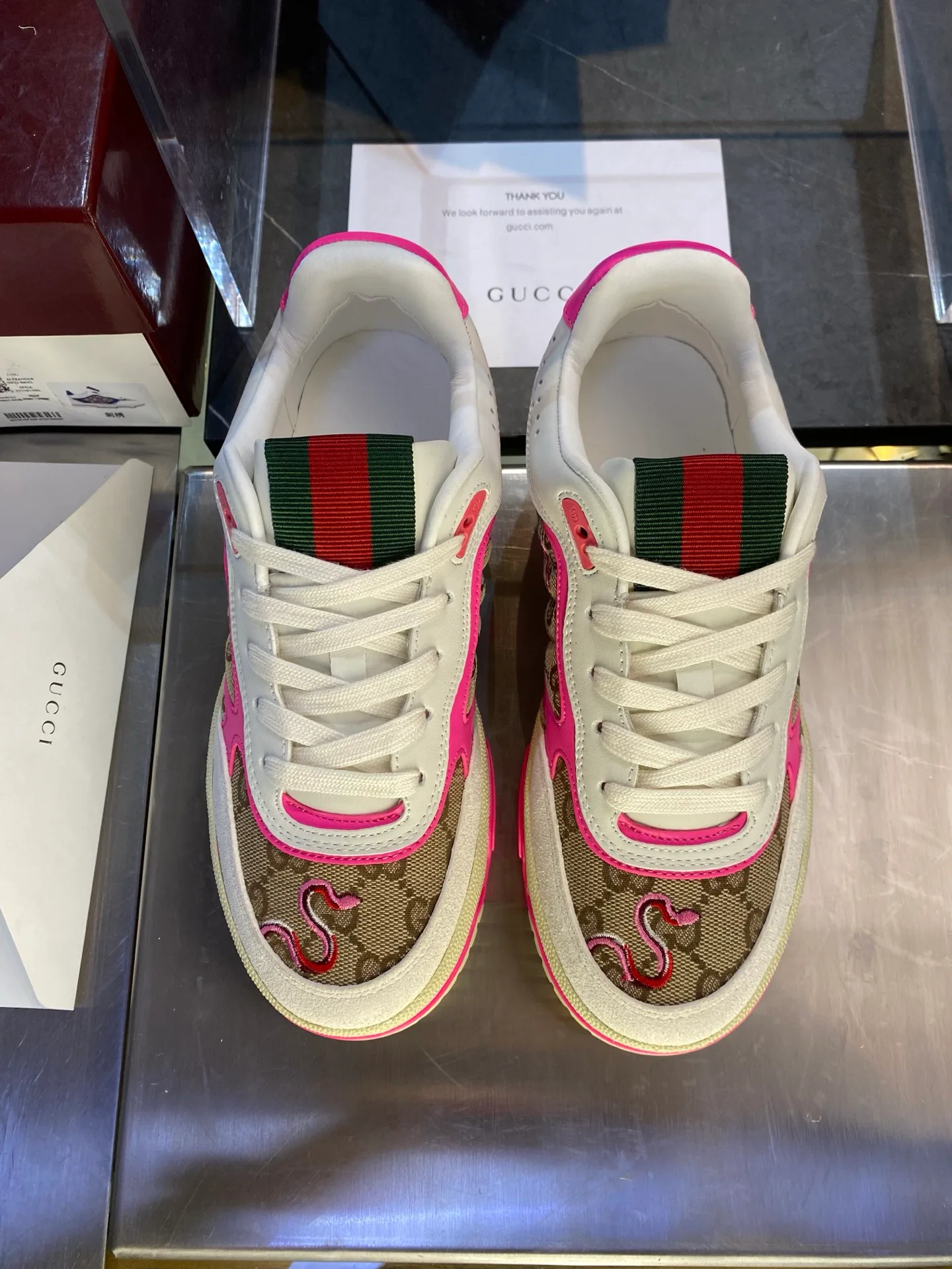 Размеры кроссовок варьируются от 35 до 40 и 39 до 45. Розовый цвет доступен только в женской размерной линейке. Эта модель представляет собой первую спортивную обувь Gucci, отражающую новый виток развития бренда с акцентом на сочетание легендарных мотивов и современных деталей.
