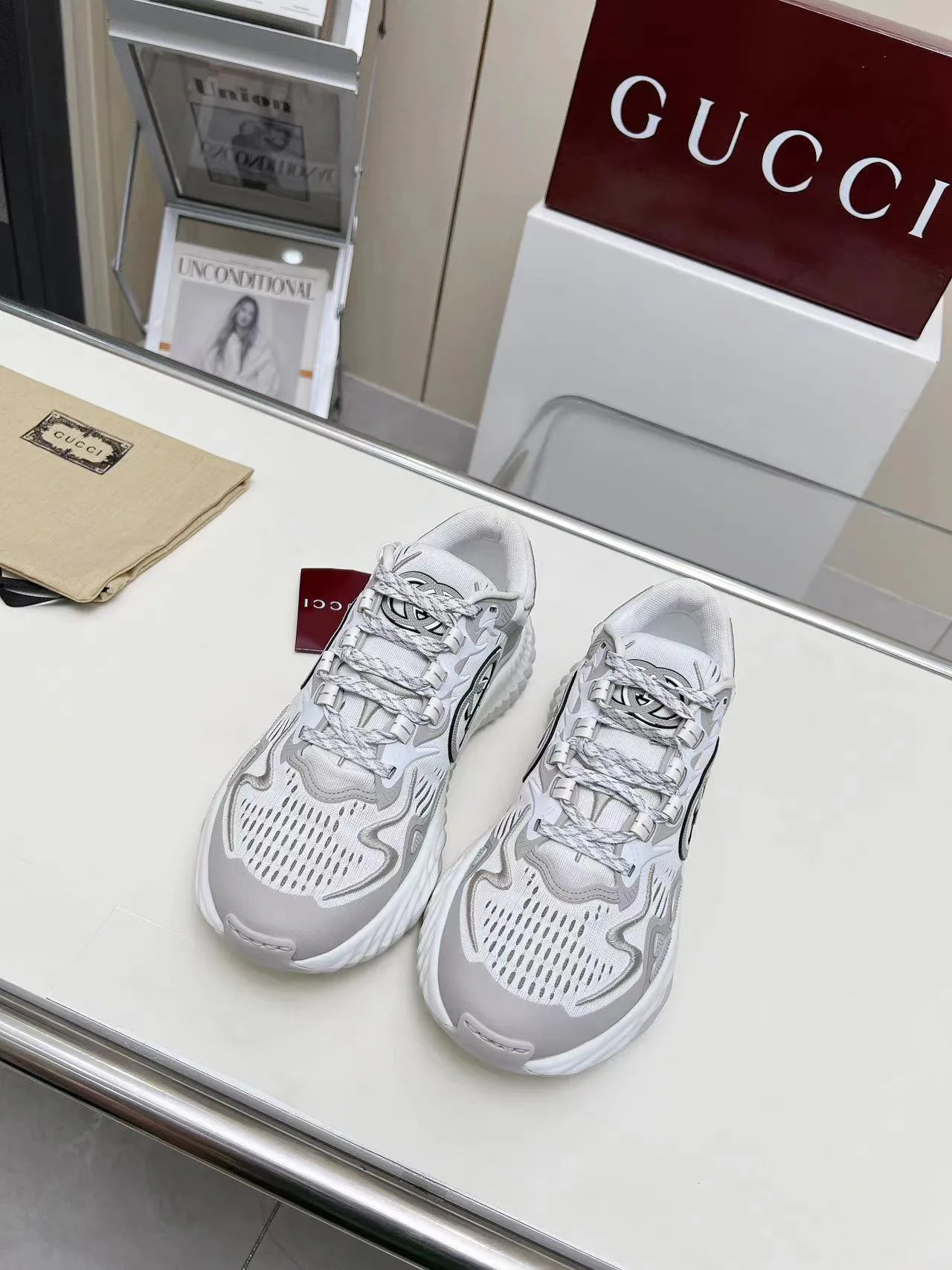 Особенность модели — 3D-логотип в виде двойной буквы G, выполненный из кожи, который придает яркий акцент и выделяет обувь. Объемная вышивка добавляет стильности, подчеркивая модные тенденции.