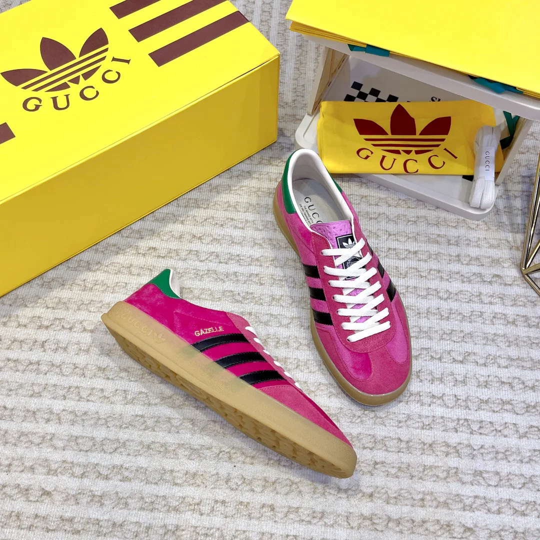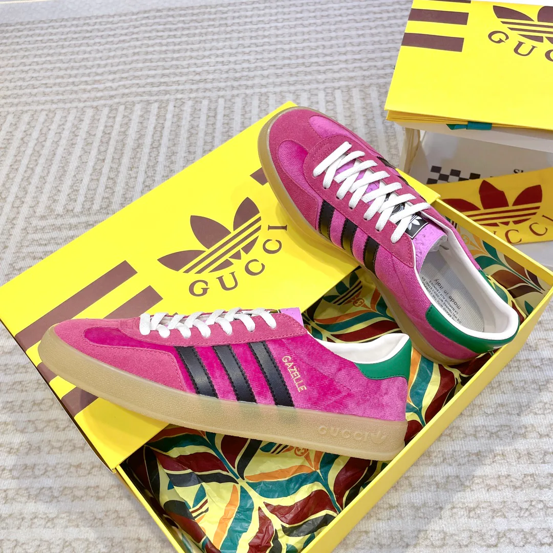 Уникальные кроссовки в рамках сотрудничества Gucci и Adidas. Лимитированная модель выделяется стильной и яркой эстетикой, освежая мир спортивной обуви.