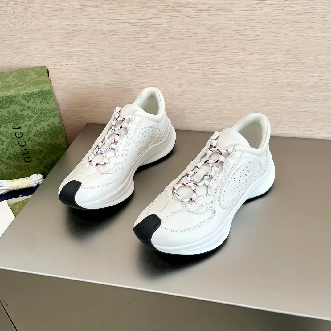 Задник и внешняя подошва украшены фирменным знаком, а контрастная резиновая подошва с двойной G привлекает внимание.