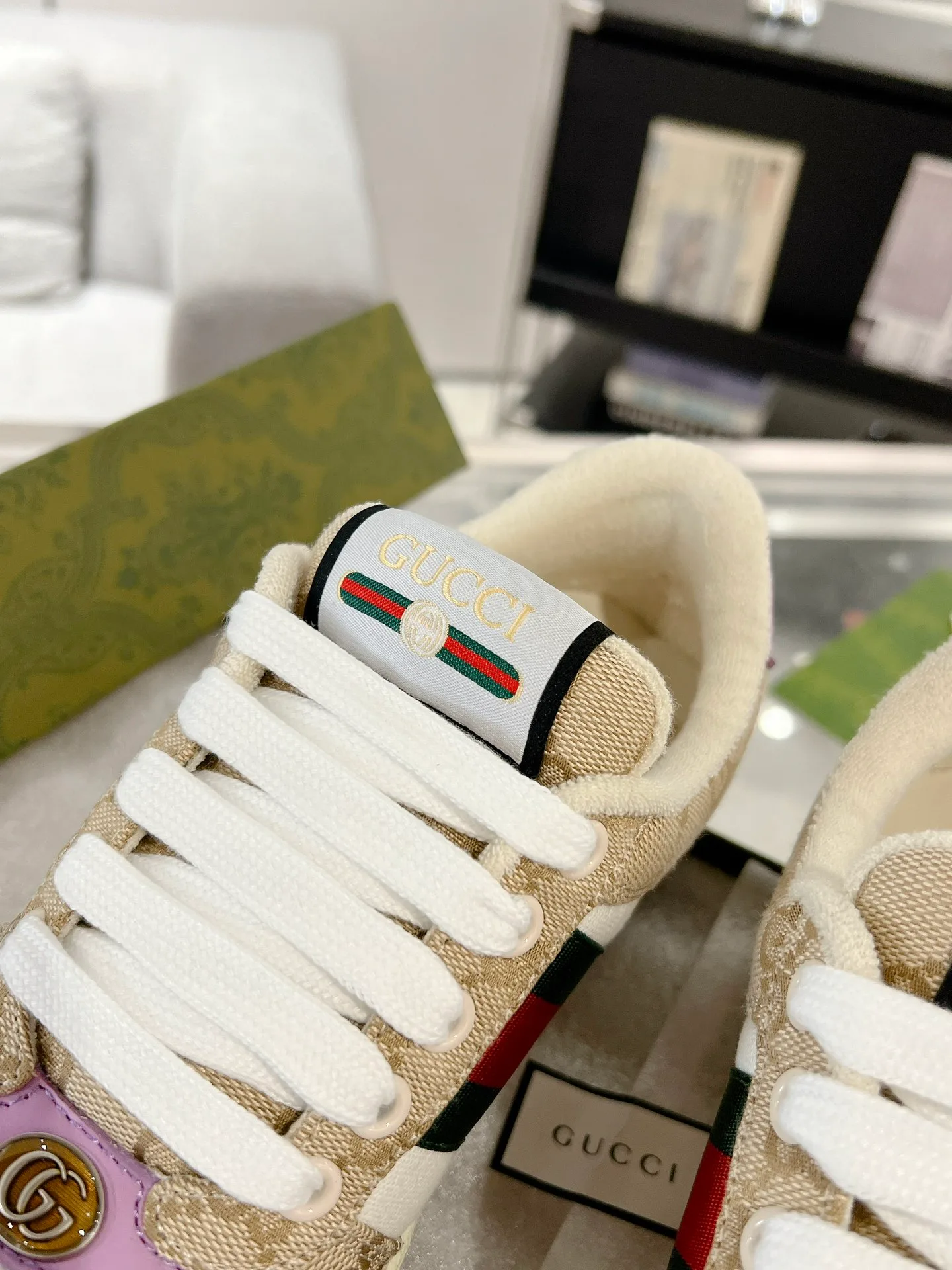 Особый акцент — металлические детали с логотипом двойной G, добавляющие эксклюзивности. Элементы выделяются на фоне конструкции и подчеркивают стиль.