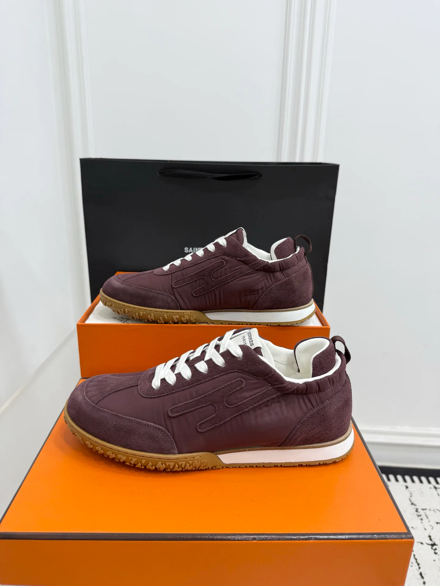 Кроссовки женские HERMES — женская и мужская версии популярной спортивной обуви, лёгкие в носке и очень комфортные для длительной носки. Каждый сезон выпускается множество цветов. Женская версия доступна в размерах 35–41, при этом 40 и 41 пошив по заказу не подлежат возврату. Мужская версия доступна в размерах 35–46, 45 и 46 пошив по заказу не подлежат возврату. Сзади есть маленькое кольцо, помогающее надевать обувь, что повышает удобство. Назначение — повседневная спортивная обувь для прогулок и активного образа жизни. Это популярная пара в ассортименте, выпускаемая в разнообразных цветах.