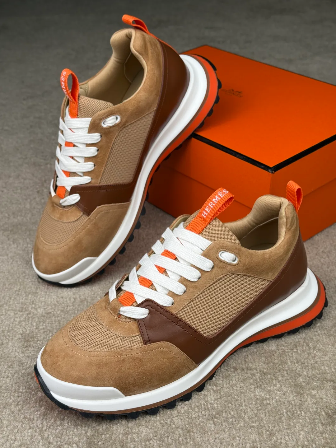 Кроссовки HERMES 2025FW подходят как для сдержанных вечерних образов, так и для спортивных стилей. Они легко сочетаются с джинсами, костюмными элементами и верхней одеждой, придавая акцент на статус и утончённость в образе.