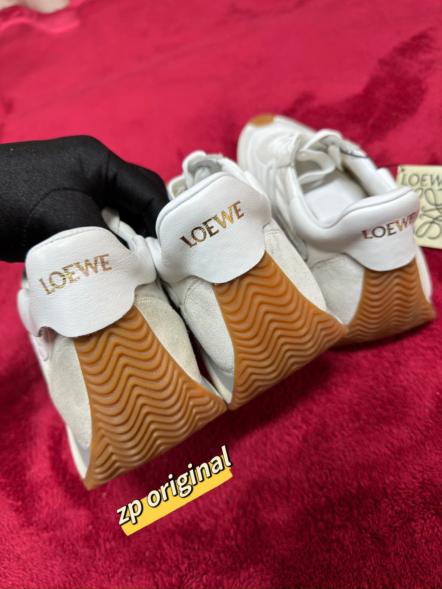 Верх выполнен из кожи и замши. Логотип золотого цвета расположен на пятке. Эти кроссовки LOEWE сочетаются с любым гардеробом и обеспечивают комфорт и стиль.