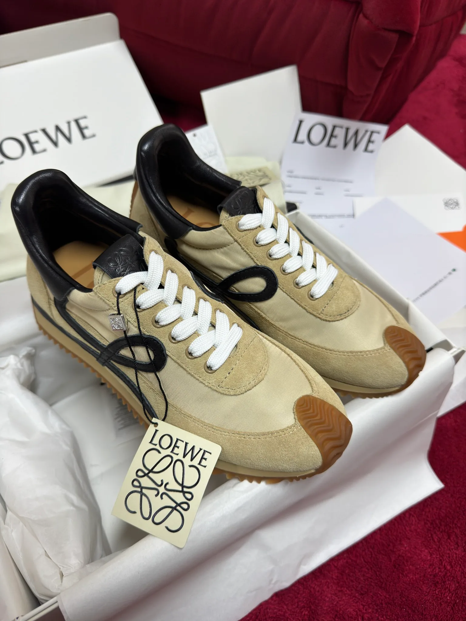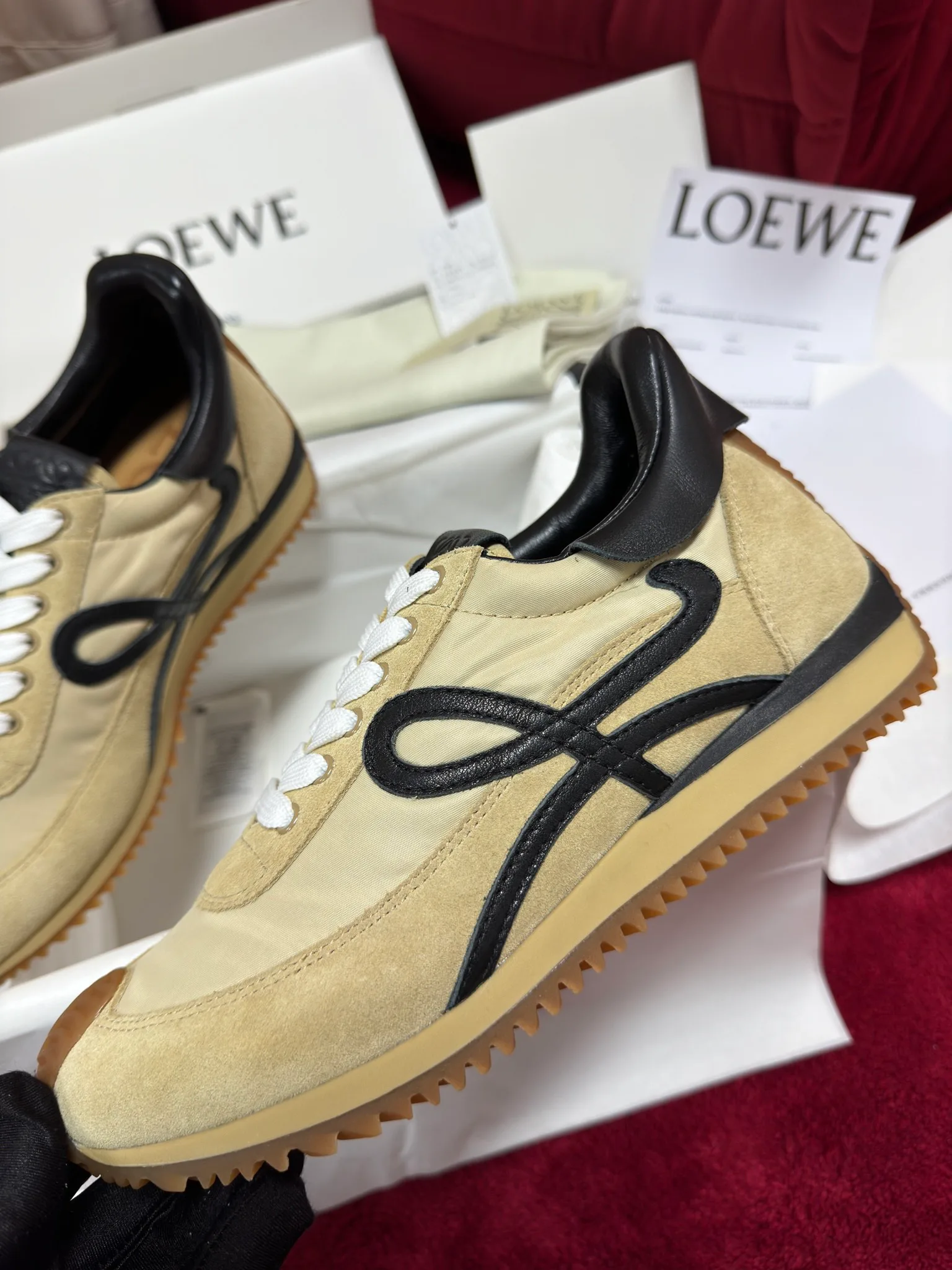 Кроссовки изготовлены из материалов: импортного бычьего ворса, телячьей кожи и водонепроницаемой ткани, что подтверждает качество пошива. Обувь отличается комфортом и легкостью и имеет небольшой внутренний подъем, поэтому ноги не устают после долгих прогулок.