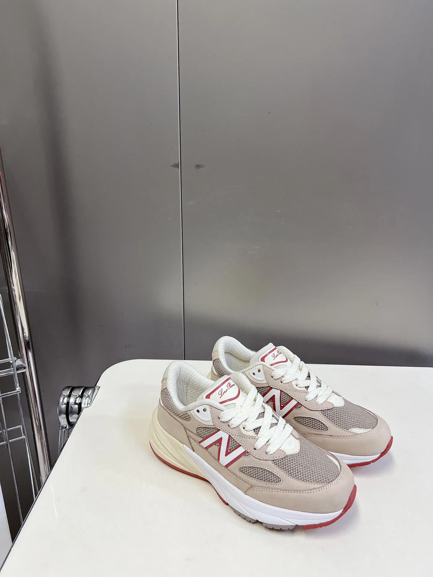 990v6 создана с акцентом на детали и качество. Кроссовки выполнены из натуральной кожи и сетчатого материала, обеспечивая вентиляцию и долговечность. Уникальная шерсть Pecora Nera, поставляемая Loro Piana, придаёт обуви роскошь и тепло.
