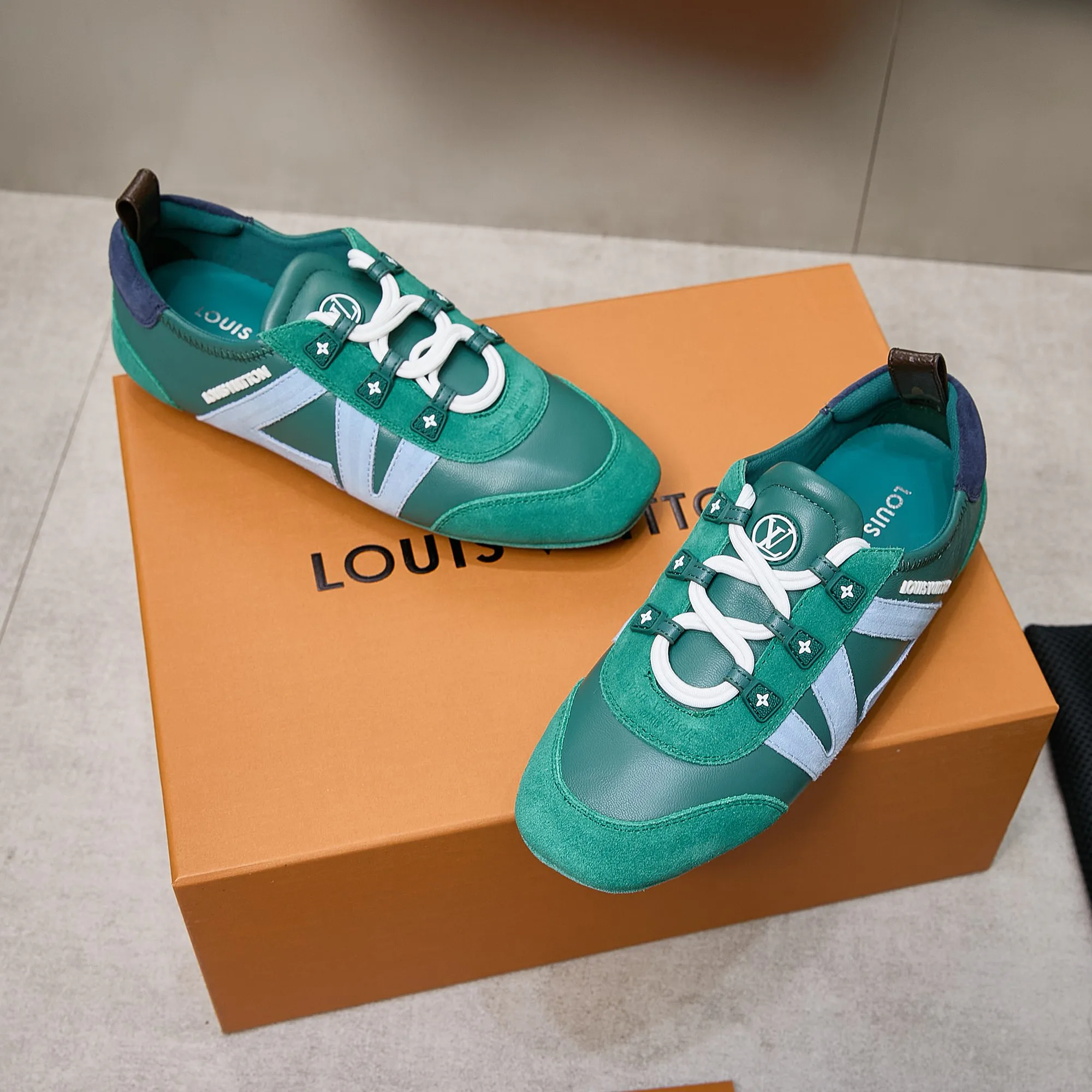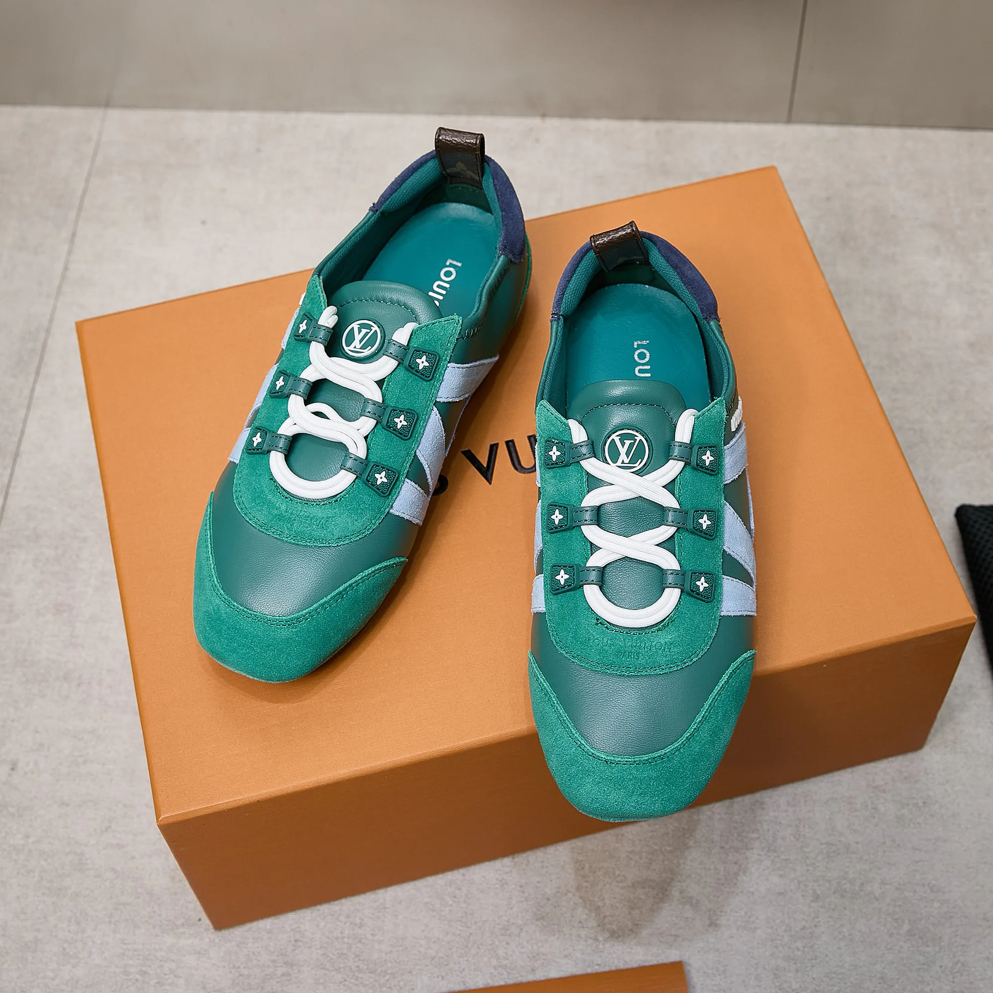 Кроссовки оснащены системой Sacchetto, которая обеспечивает улучшенную посадку и легкость на ноге. Дизайн дополнен боковым логотипом LV и классической монограммной задней петлёй, подчеркивающими стиль модели. Обувь поставляется в стильной бутиковой упаковке.