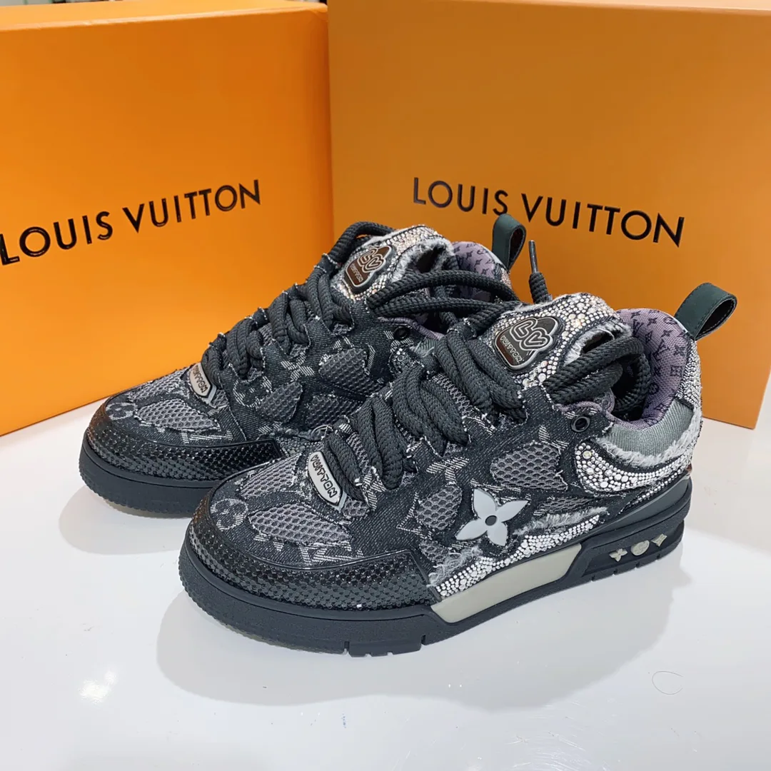 Обувь выполнена в стиле Louis Vuitton и отличается пухлым силуэтом, который визуально удлиняет стопу и придаёт ногам утончённость. Мягкие, качественные материалы обеспечивают комфорт и долговечность.