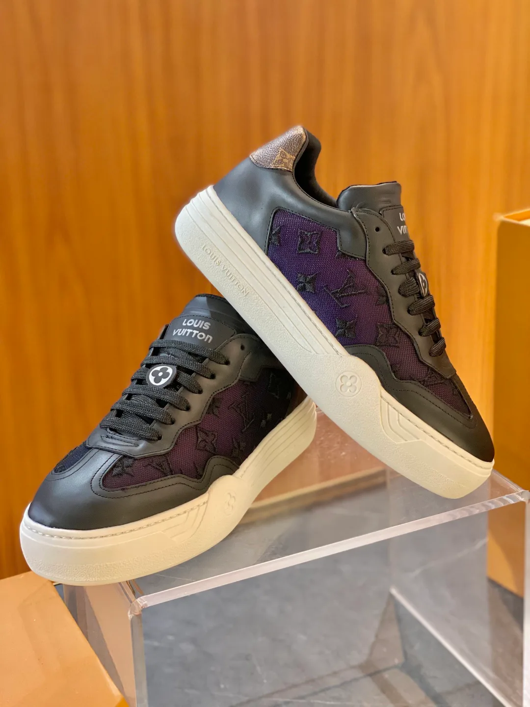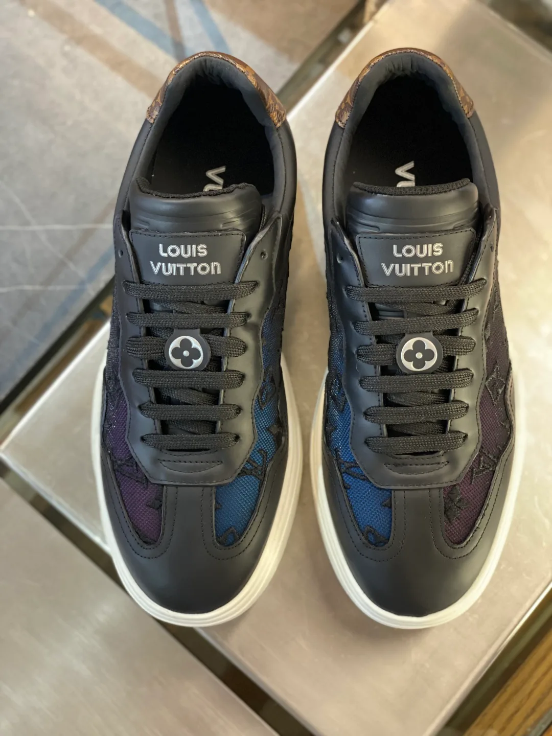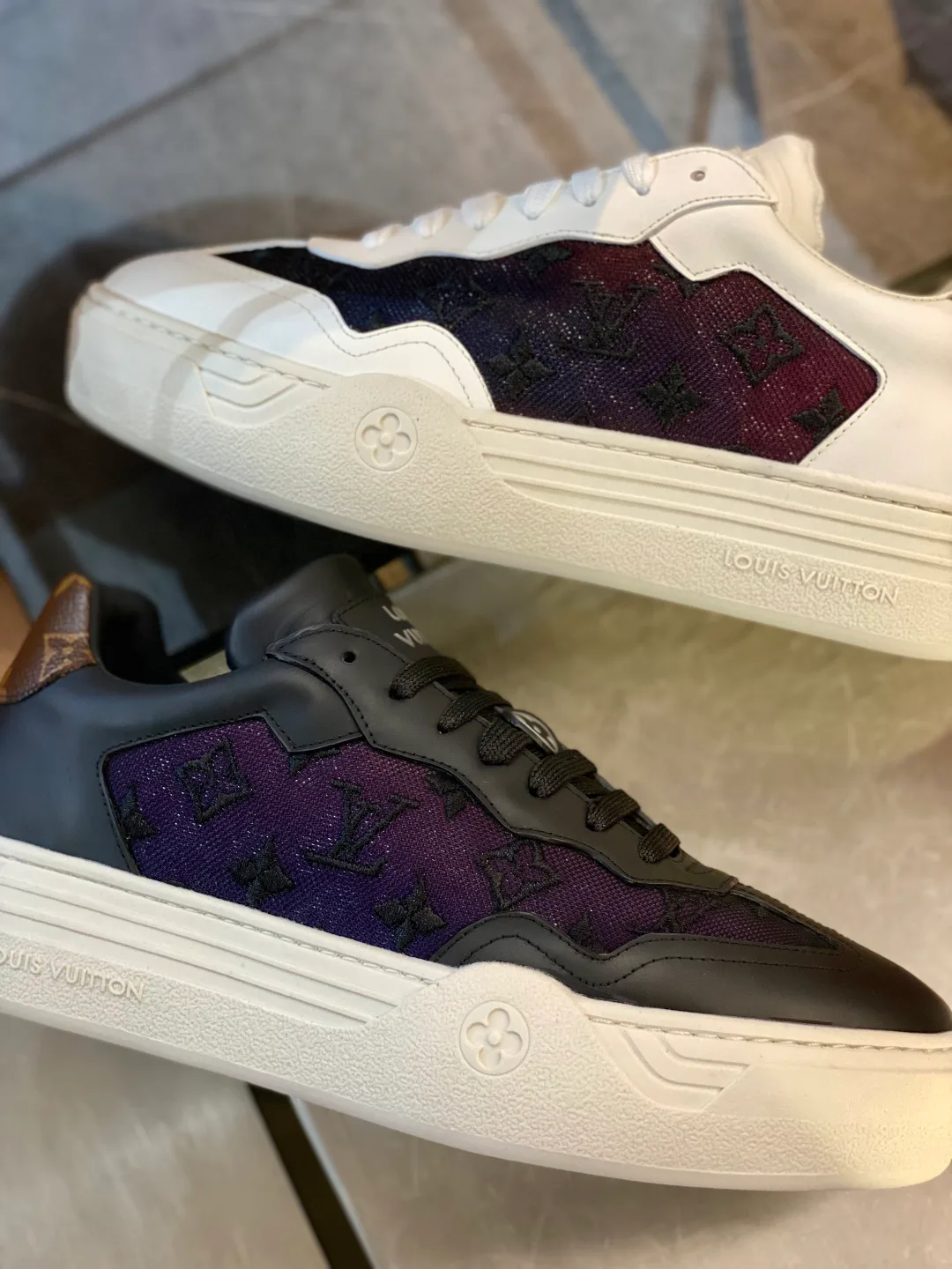 Подошва: утолщенная резиновая наружная подошва обеспечивает устойчивость и амортизацию. На ней размещены логотип Louis Vuitton и цветы Monogram — узнаваемость и декоративность.