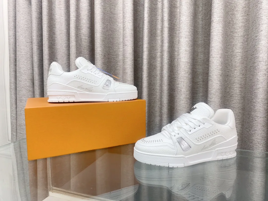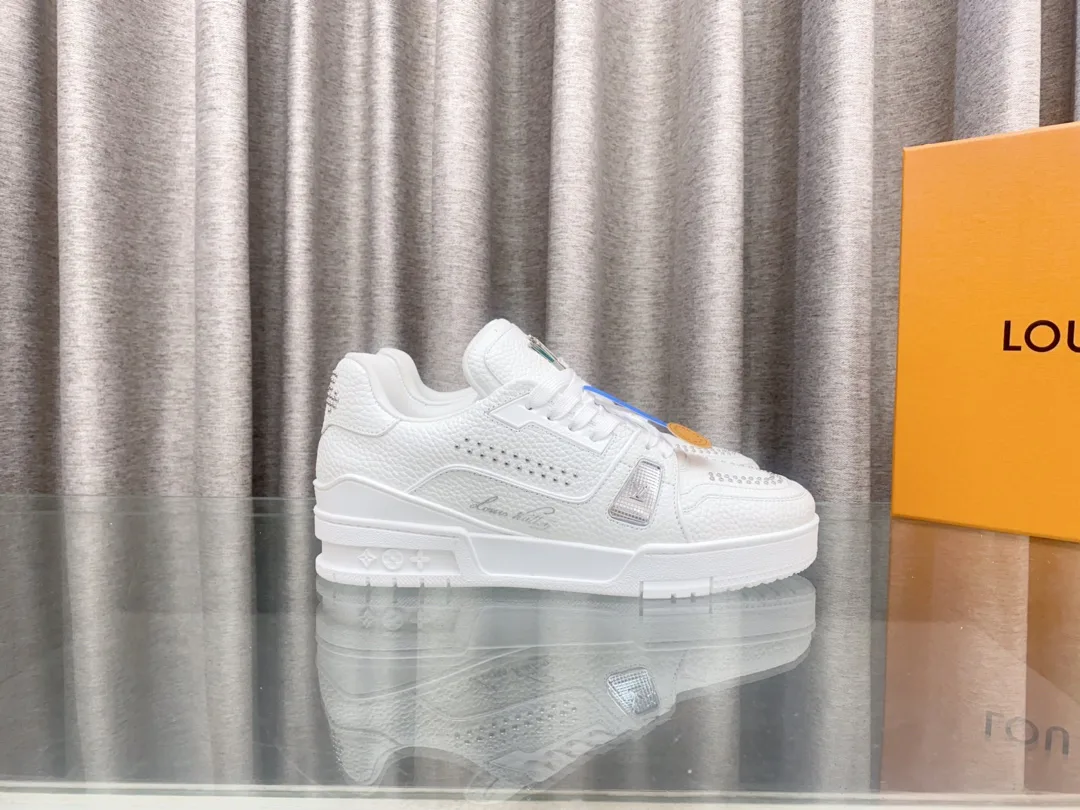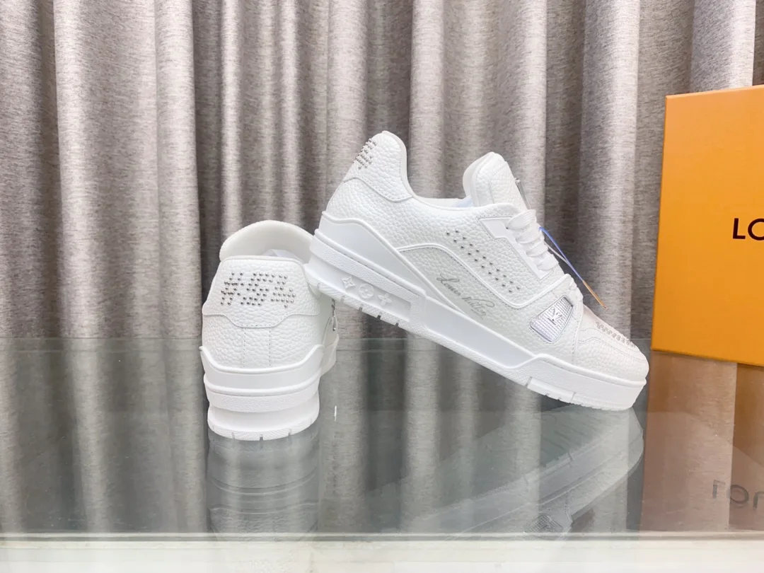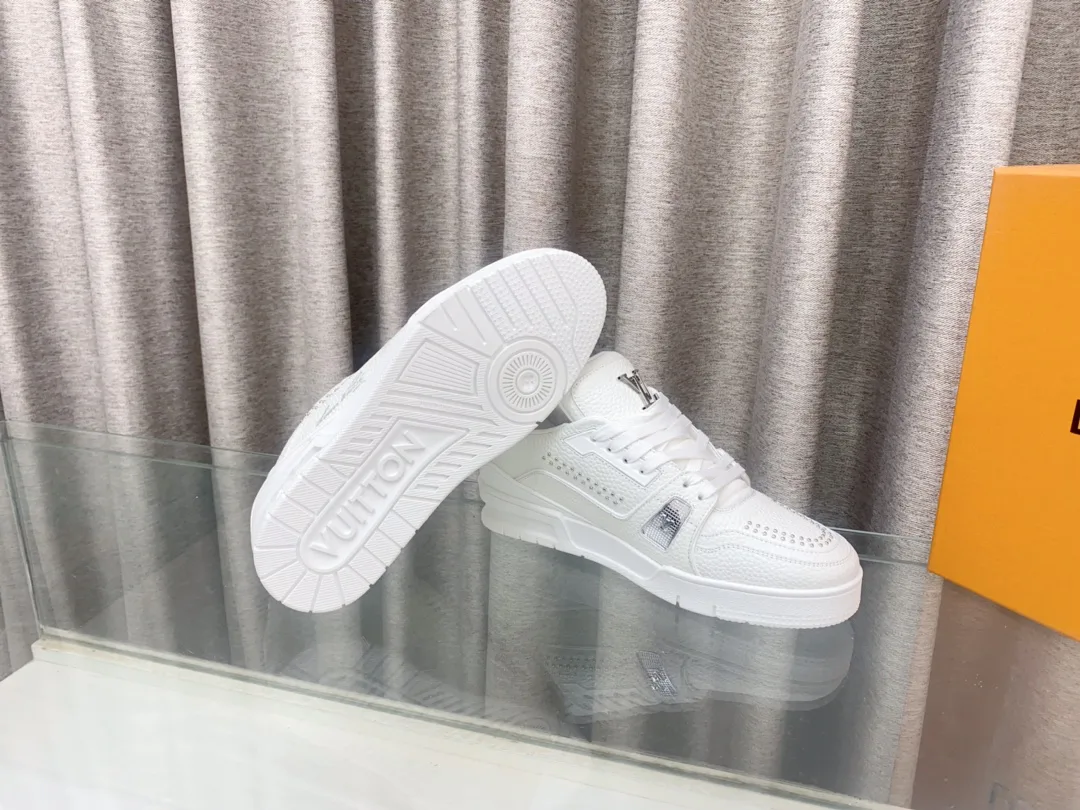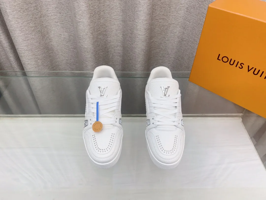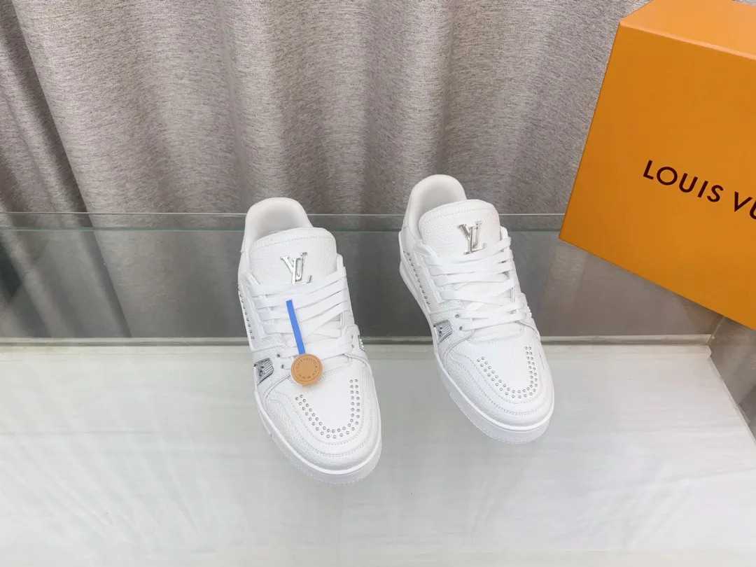 Верх из натуральной кожи обеспечивает долговечность и износостойкость. Обувь украшена текстильными шнурками и бусинами, подчёркивающими фирменный стиль. На язычке расположен логотип LV.