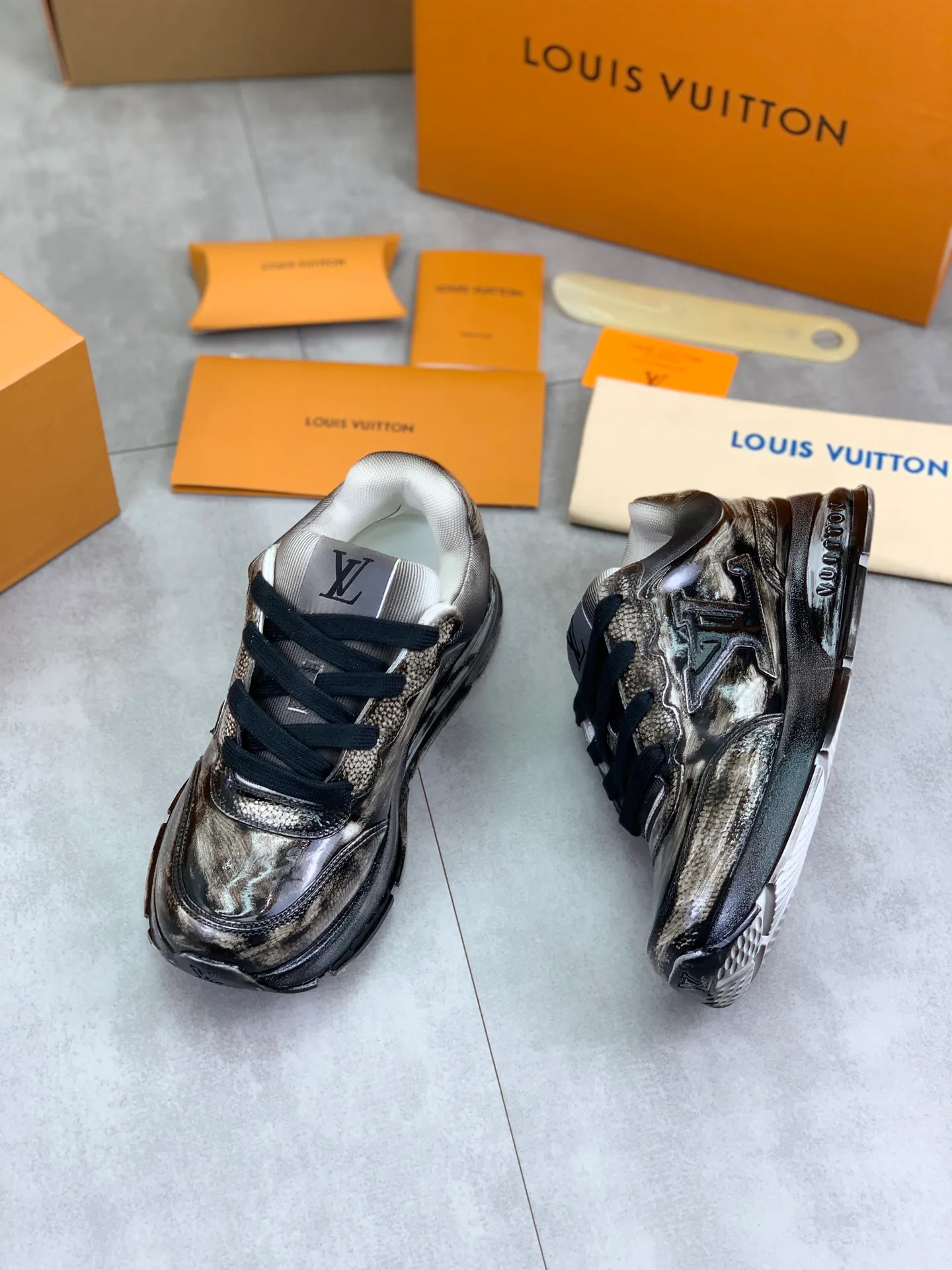 Эти кроссовки обладали аккуратной отделкой и фирменными акцентами LV. Доступно несколько цветовых вариантов, а размеры варьируются от женских 35 до 39 и мужских 39 до 45. Дизайн универсален: кроссовки подходят для повседневной носки и комбинирования с различными стилями. Уход за обувью требует аккуратности из-за материала верха.