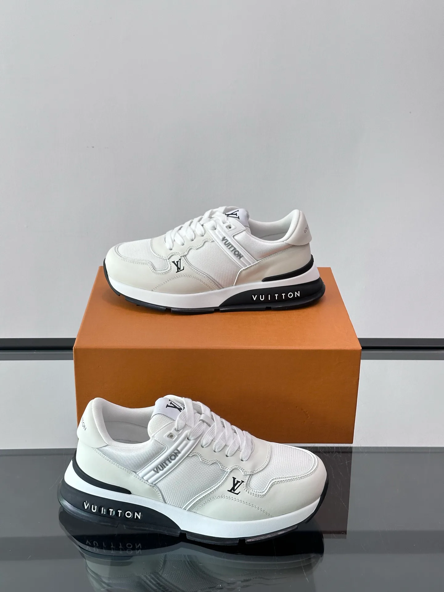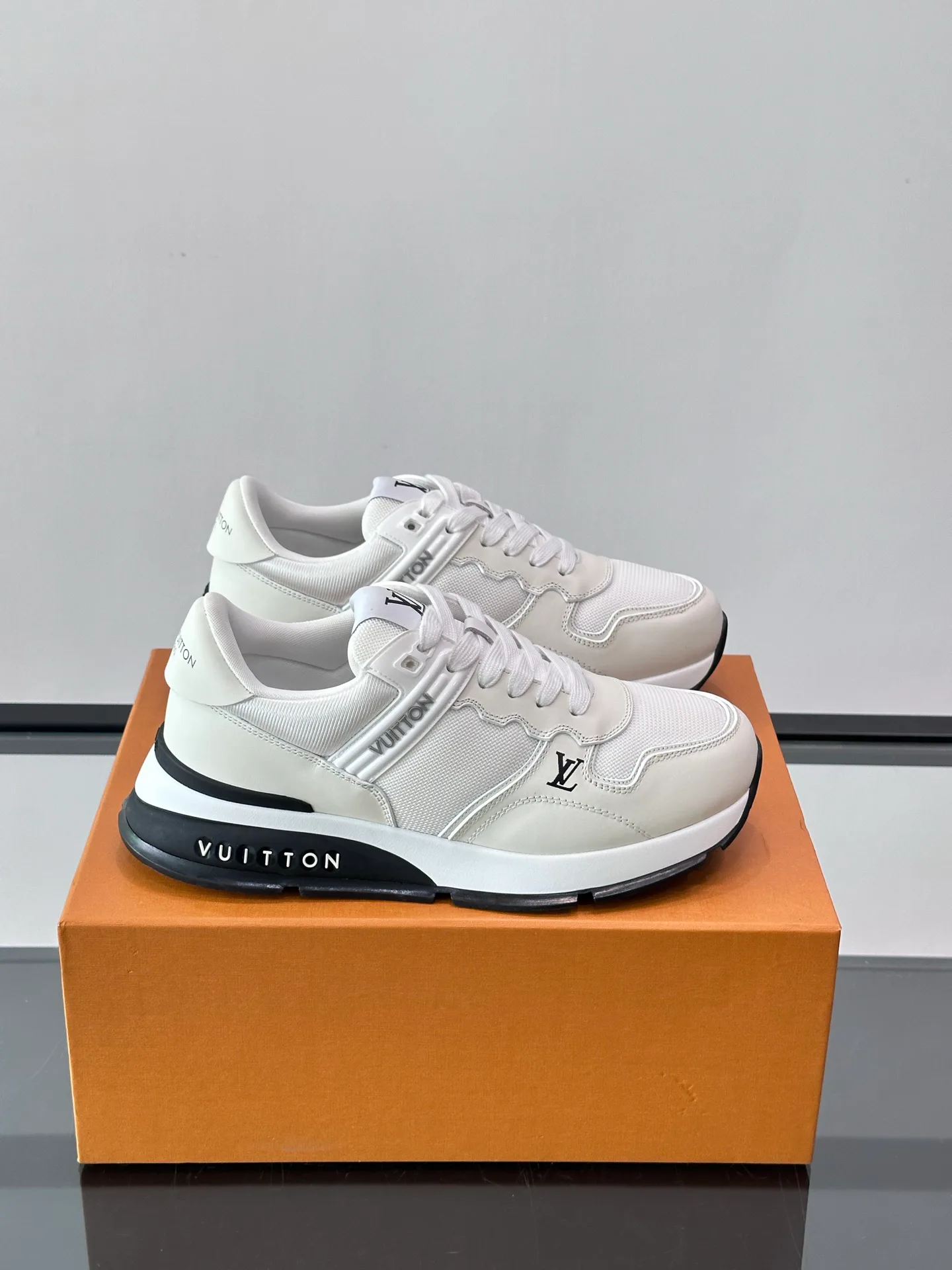- Нижняя часть: резиновая внешняя подошва с фирменными элементами Louis Vuitton, узнаваемость бренда и логотиповый акцент.