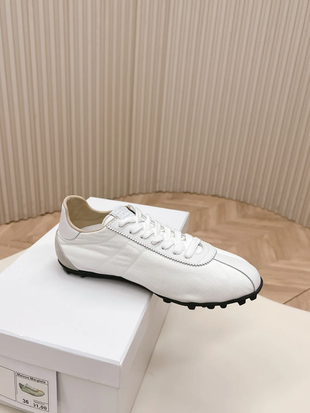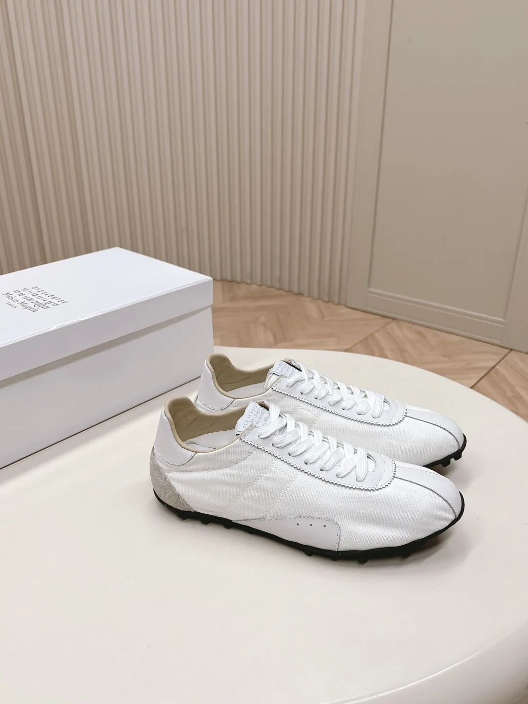 Дизайн кроссовок включает элементы состаривания, аккуратную строчку и различные виды соединений, которые подчеркивают мастерство и креативный подход бренда. Язык обуви украшен классическим цифровым логотипом, что добавляет изюминку в общий образ.