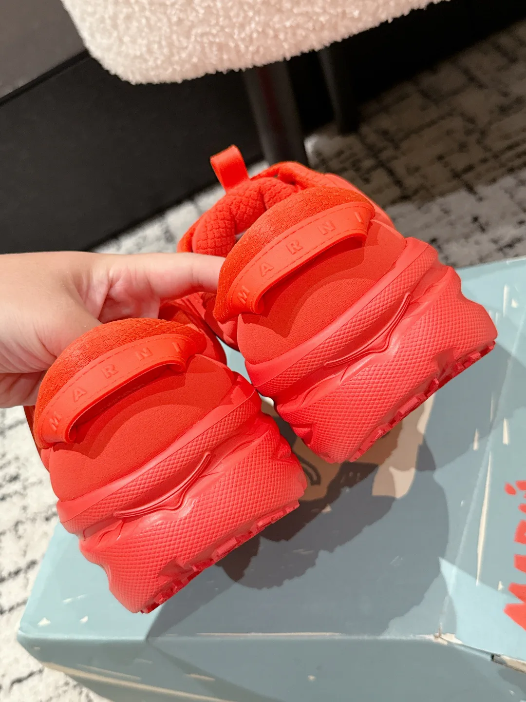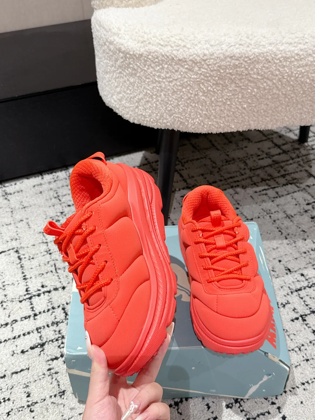 Особенность — верх из полиэфирной ткани с резиновым покрытием, обеспечивающий прочность и оригинальный пухлый вид.