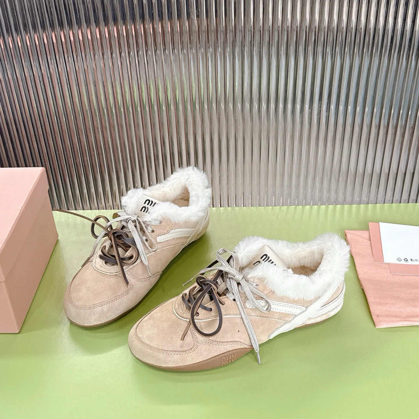 Кроссовки женские MIU MIU — модель с верхом из импортной замши и пушистой подкладкой молочно-чайного цвета.