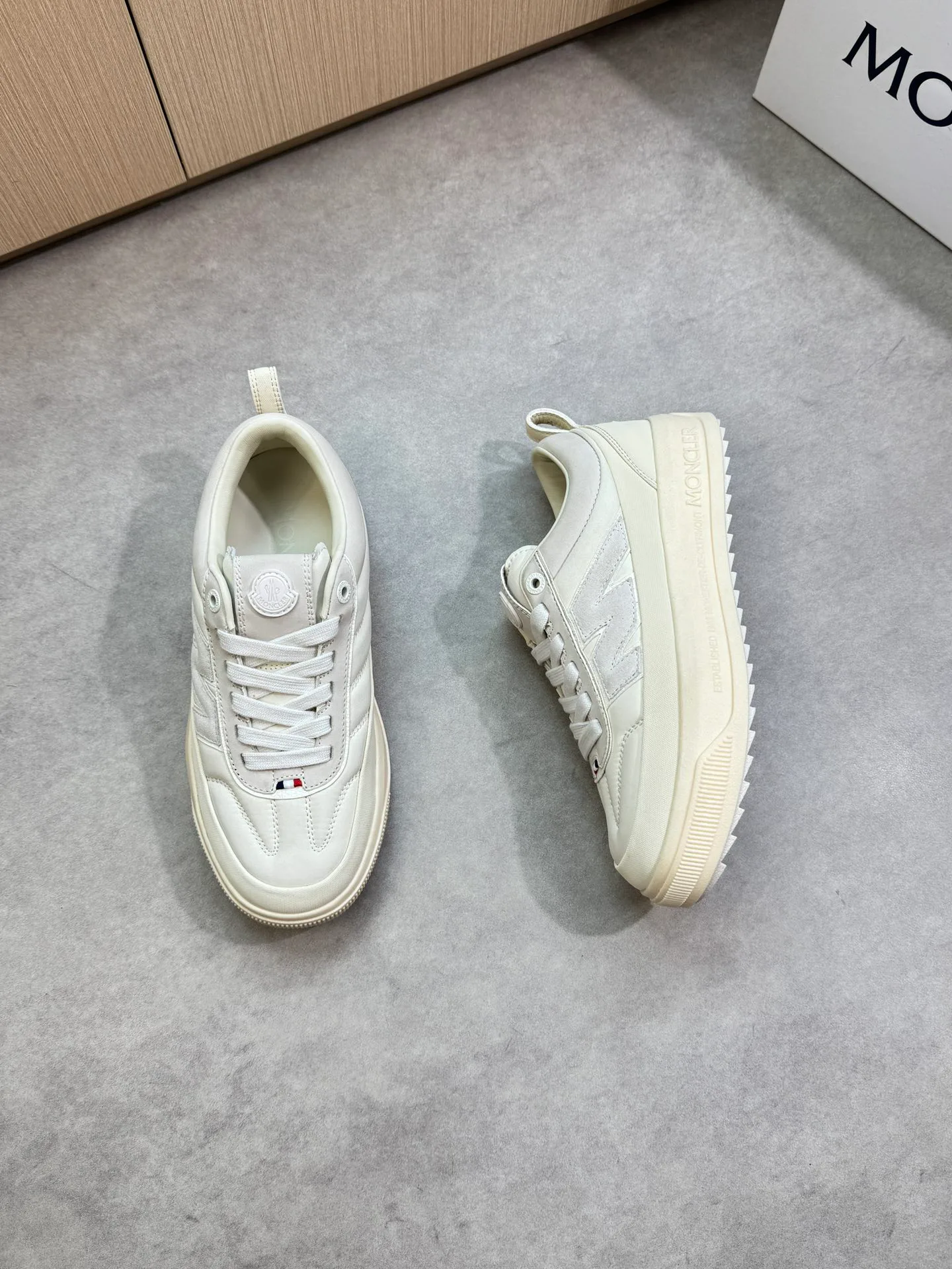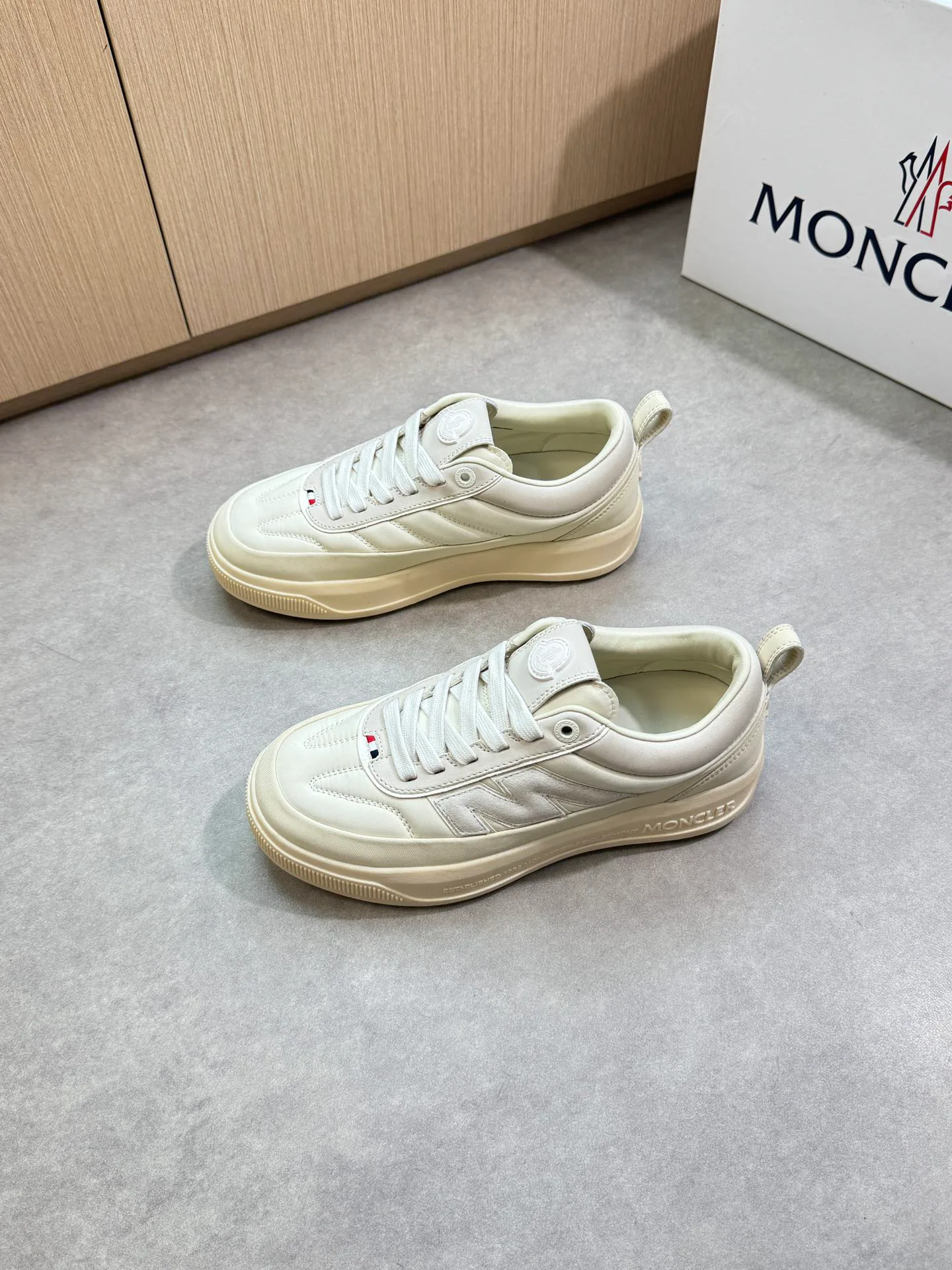 Внутренний отдел выполнен из крашеной кожи, что способствует приятной посадке и долговечности. Подошва состоит из ультралегкой вспененной TPU и резины, имеет двухцветное исполнение, обеспечивая амортизацию и хорошее сцепление. Кроссовки MONCLER готовы к длительной эксплуатации и комфортной носке. Размеры доступны от 39 до 44, по индивидуальному заказу предусмотрены 38 и 45.