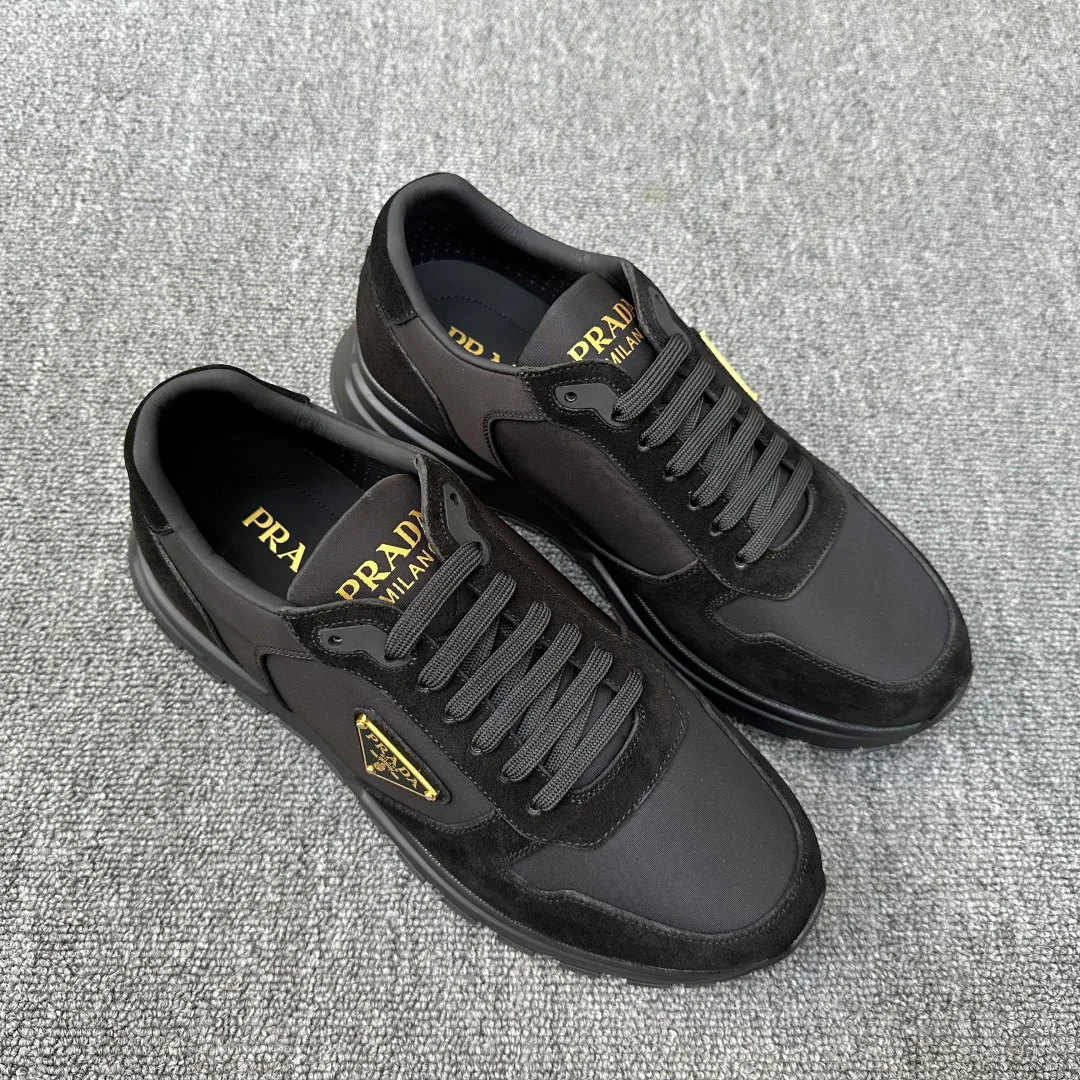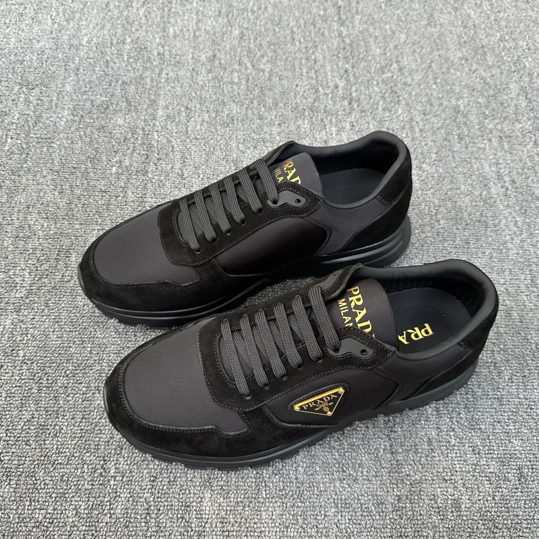 Ключевые особенности: верх — переработанный нейлон и глянцевый нубук для стойкого и эффектного образа; на верхней части заметно треугольное эмалированное лого, которое привлекает взгляд и подчёркивает спортивно-люксовый характер модели; язычок — принт Prada Milano, выполненный шелкографической печати; подошва — легкая амортизирующая платформа высотой около 45 мм; край подошвы рифленый и углубленный для акцента на динамичности и устойчивости; шнуровка — стандартная; подкладка — съемная стелька; размеры — 39–44, а по запросу 38,5; артикул 33553843.