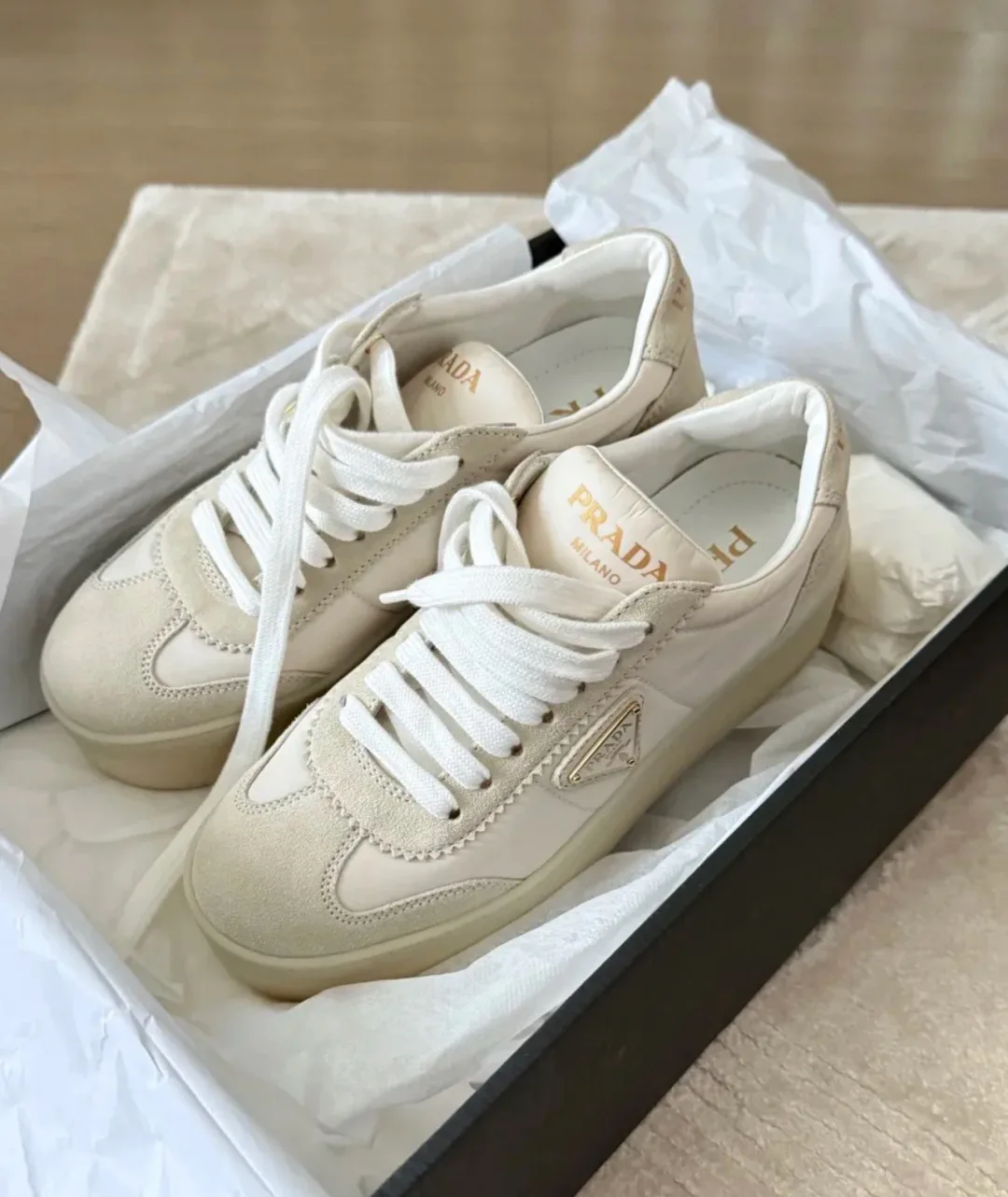 Лёгкость на ноге достигается за счёт продуманной конструкции. Стильный минимализм подчёркивается чистыми линиями и сдержанным дизайном, что позволяет сочетать их с джинсами, костюмом или платьем. Премиальная эстетика PRADA и внимание к деталям заметны в каждом элементе обуви.