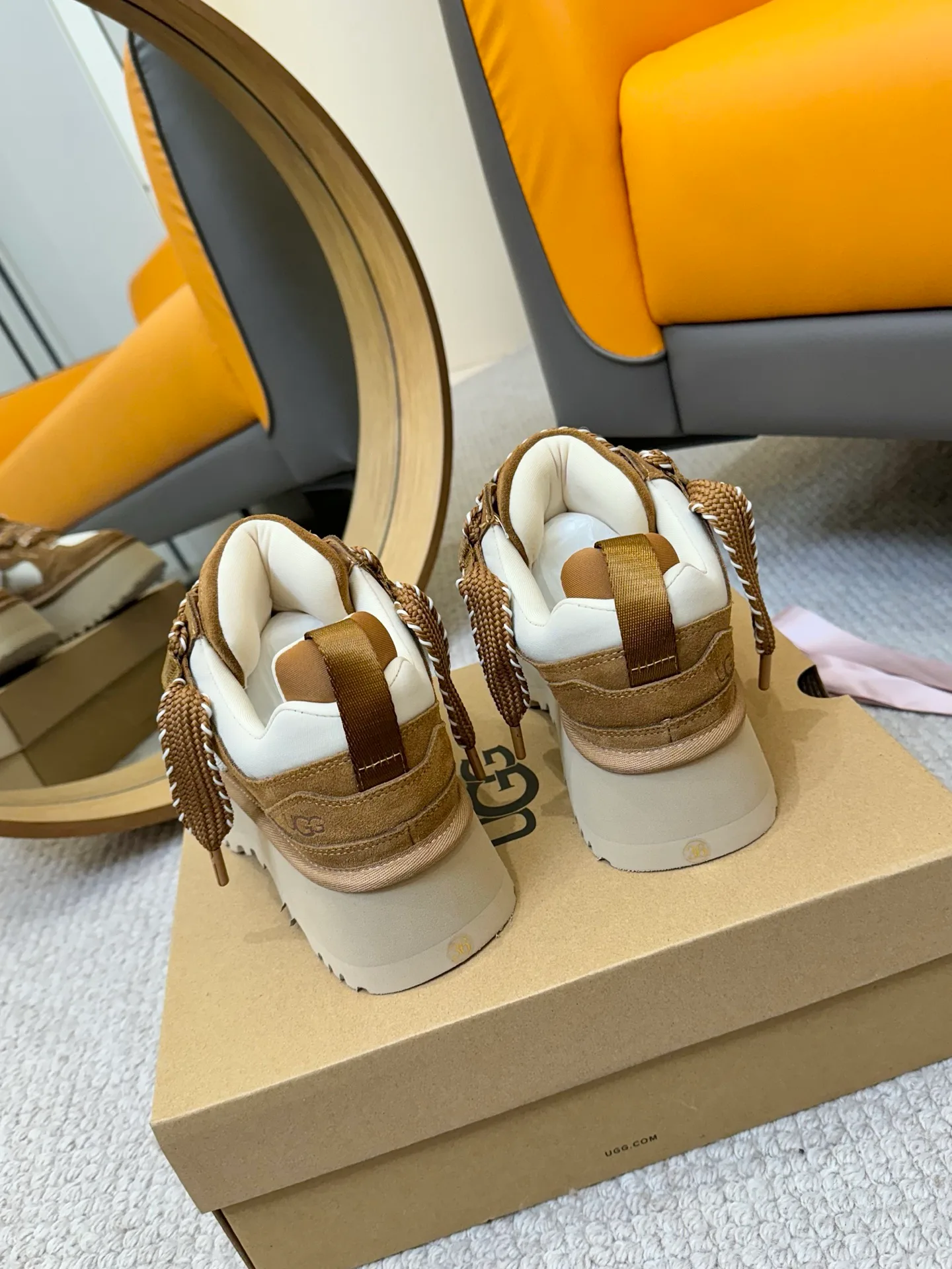 Кроссовки оснащены двумя шнурками для регулировки посадки. Толстая подошва подчеркивает силуэт и добавляет уверенности в движениях. Удобные для прогулок и активного времяпрепровождения, они также отлично сочетаются с джинсами, спортивными костюмами и легкими платьями.