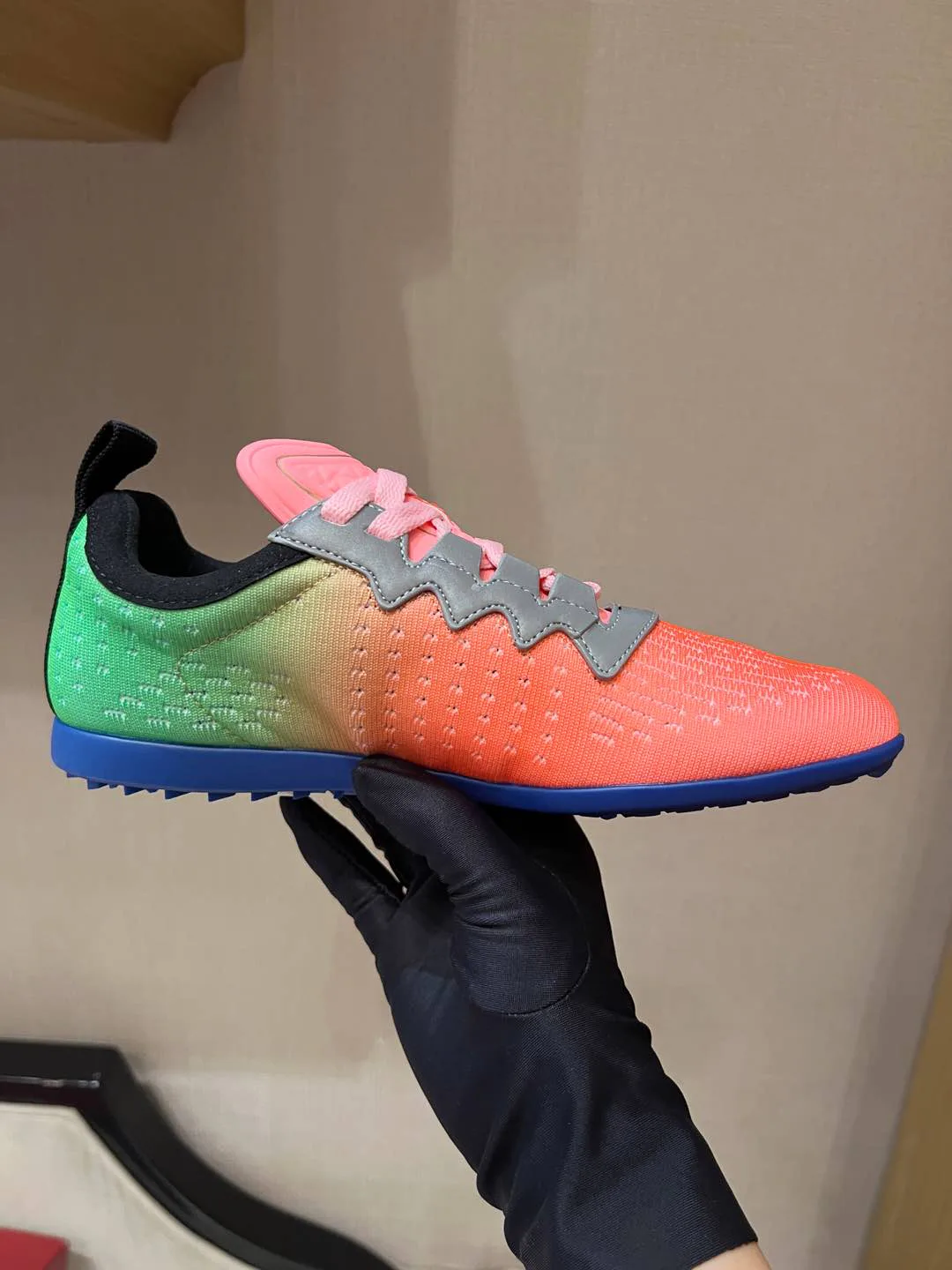 Кроссовки представлены в нескольких расцветках: классические черные и белые подходят для любого повода и легко сочетаются с нарядами. Для любителей ярких акцентов доступны варианты в флуоресцентном зелёном и барби-розовом — они выполнены из эластичной ткани, что обеспечивает дополнительный комфорт и стиль.